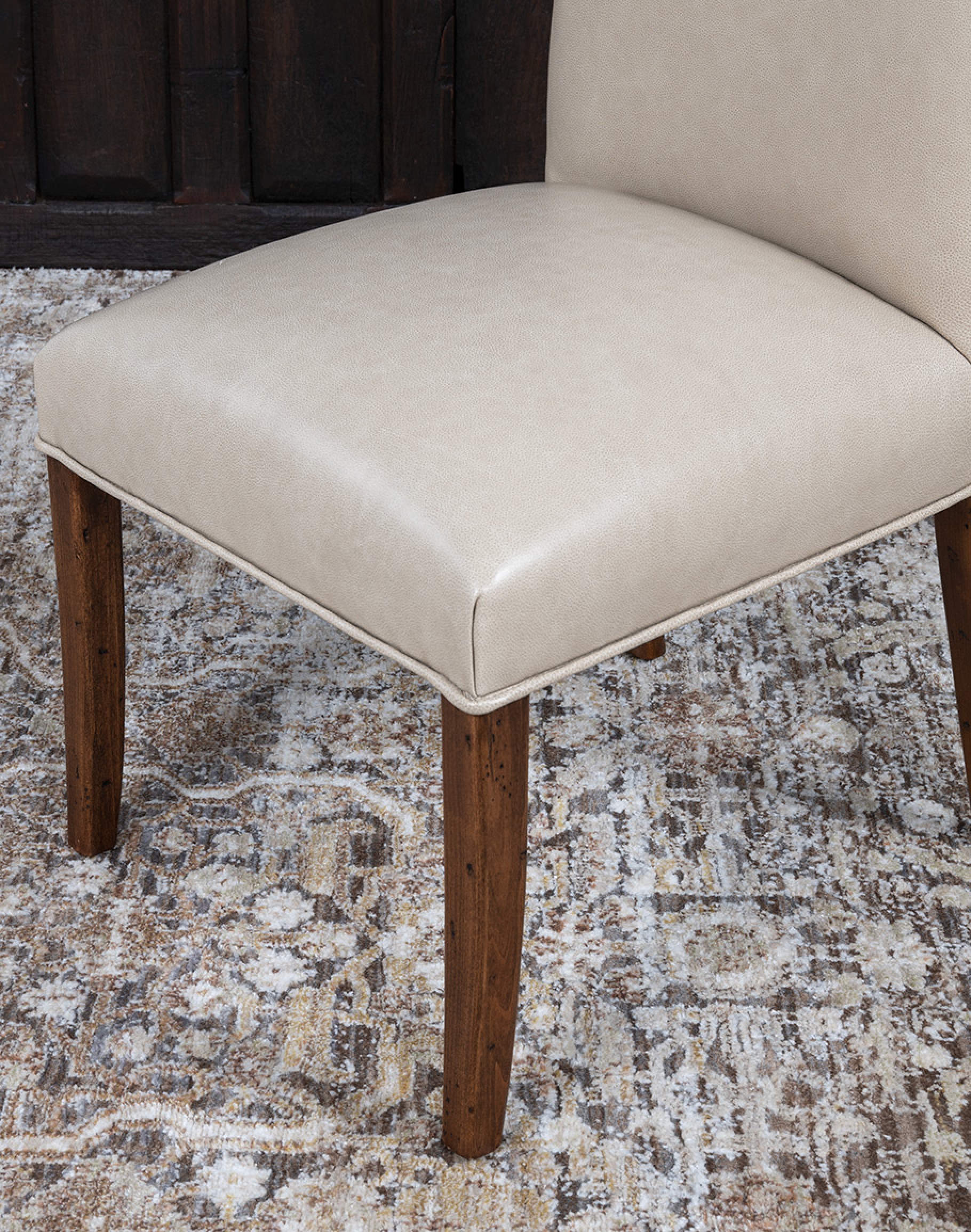 The Idaho Ivory Dining Chair combines refined Western elegance with exceptional craftsmanship. Proudly 100% American made, this designer dining chair features a solid hardwood frame with a light hand-distressed finish, offering both durability and timeless character.
