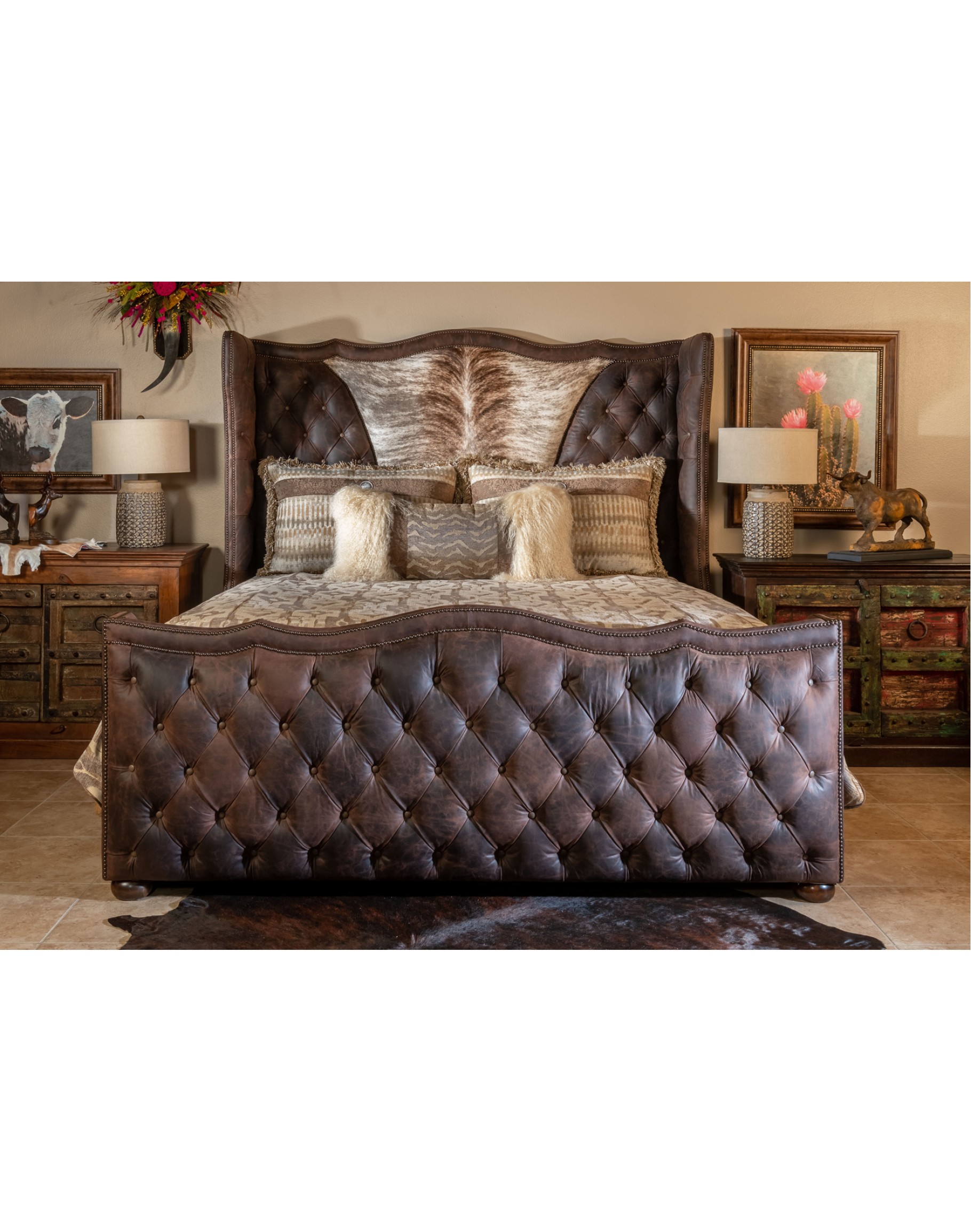 Tags: Beds, Leather, Tufted, Distressed, Cowhide, King, Queen