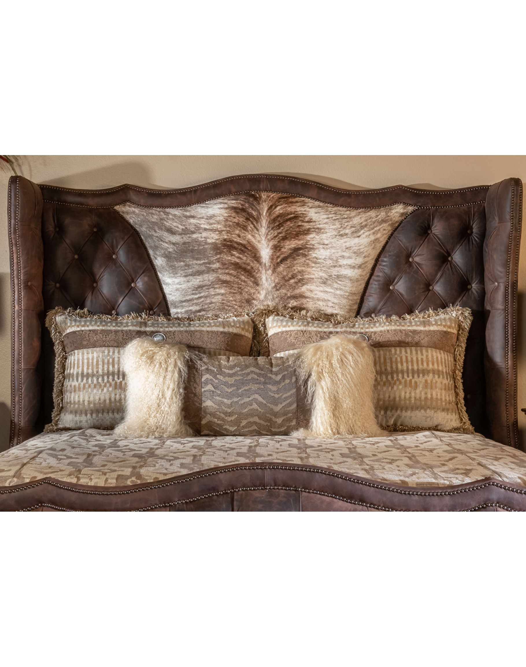 The Adobe Frontier Western bed, a testament to unparalleled craftsmanship, is meticulously hand-crafted in the heart of the American West. Crafted from the finest full-grain Italian leather, it features brindle cowhide, showcasing the finest quality and attention to detail. The bed comes in a variety of leather options, colors, and designs, allowing you to curate a unique design for your bedroom. This Classic Ranch Adobe Frontier Western bed is perfect for those who value a quality Western aesthetic in their bedroom. At Adobe Interiors, we create the furniture, and you create the memories.