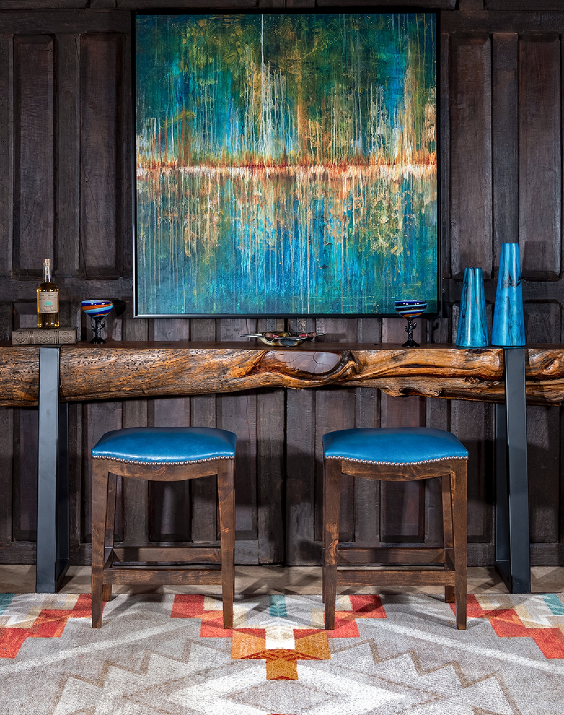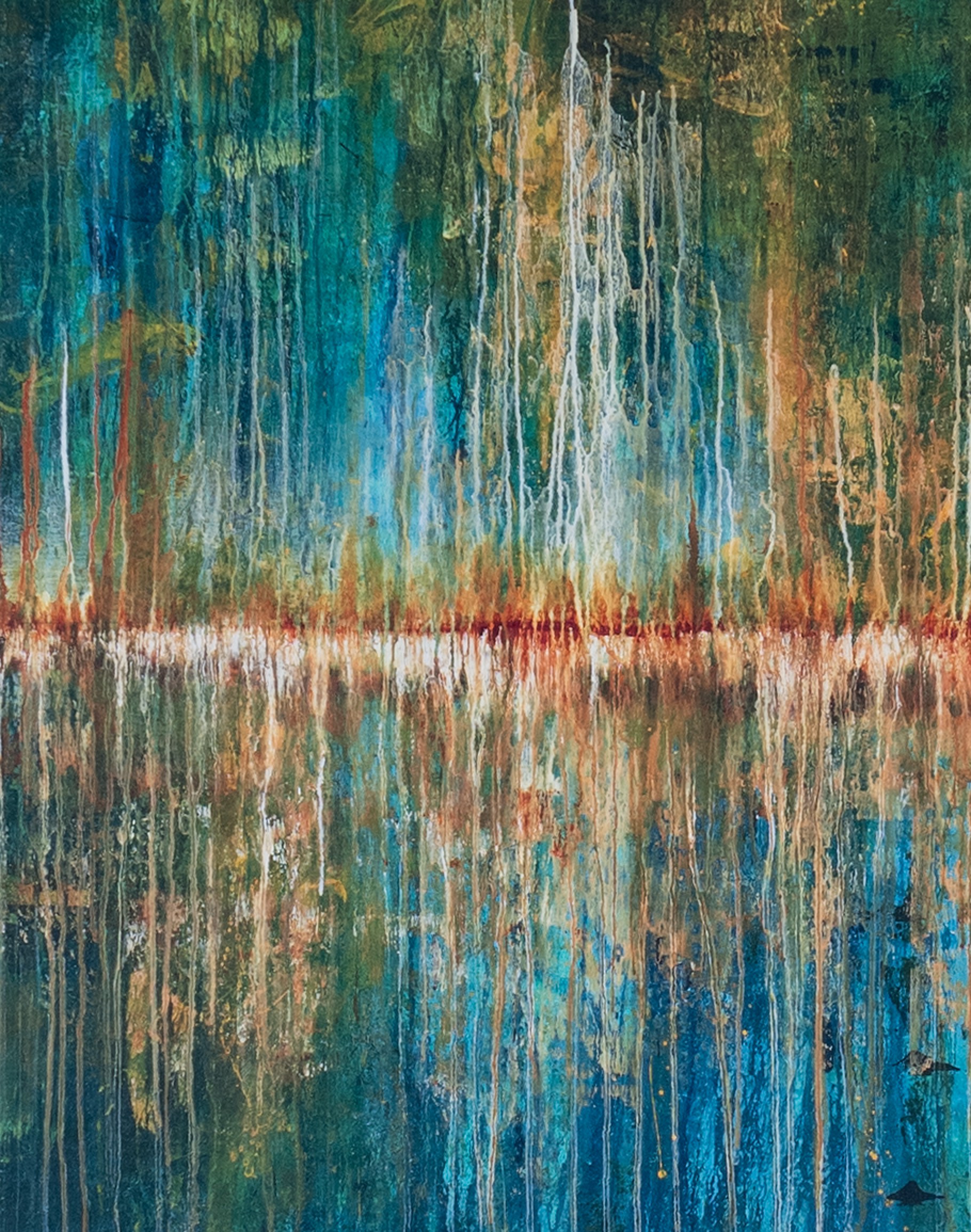 This exquisite piece of art captures the beauty of the afterlight in an abstract, yet deeply expressive pattern. With its rich and vibrant colors in shades of teal, blue, and reds, the artwork breathes life into any room it adorns. Each brushstroke tells a unique story, transforming ordinary walls into extraordinary displays of creative expression.