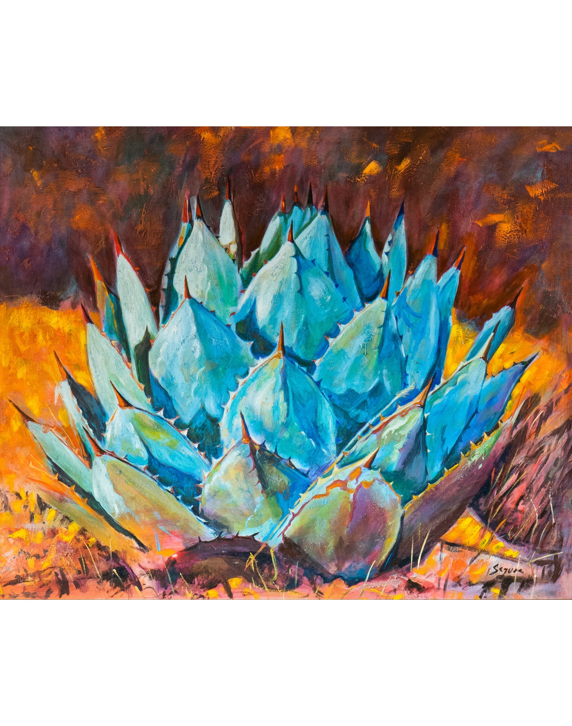 Transport yourself into nature with this stunning and vivid art piece. This unique and inspired artwork features a bright, beautiful agave plant catching the desert sun. This colorful, nature-inspired piece will add popping color to any area!