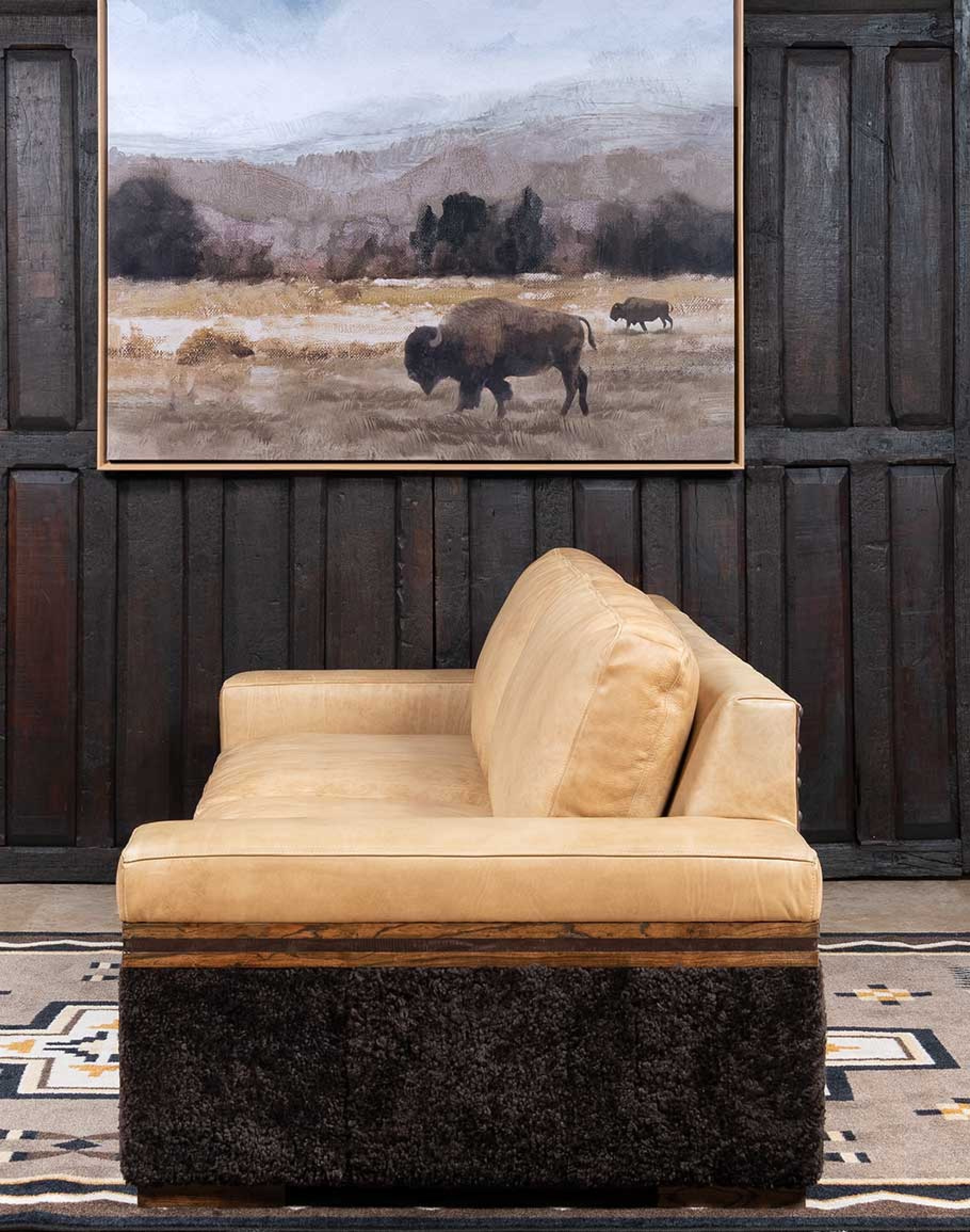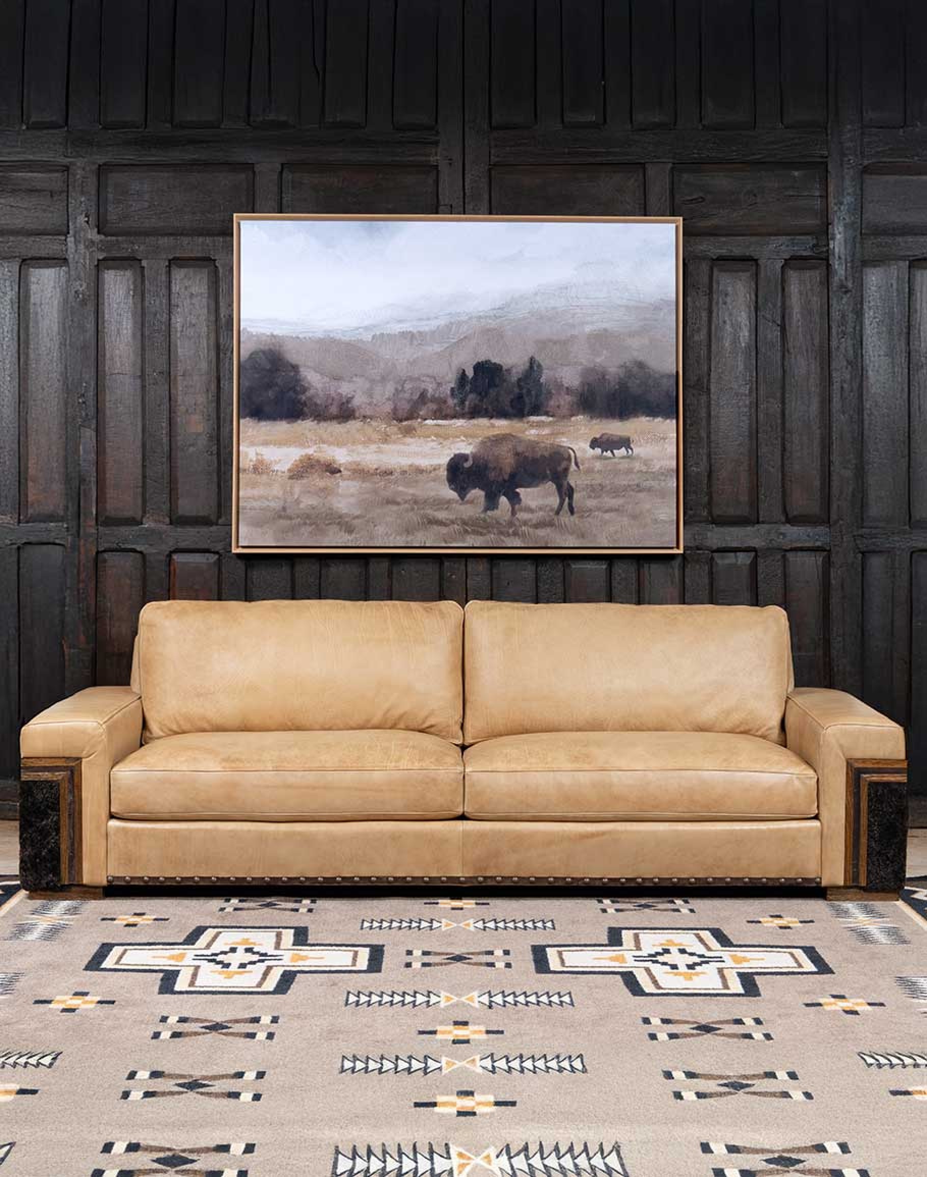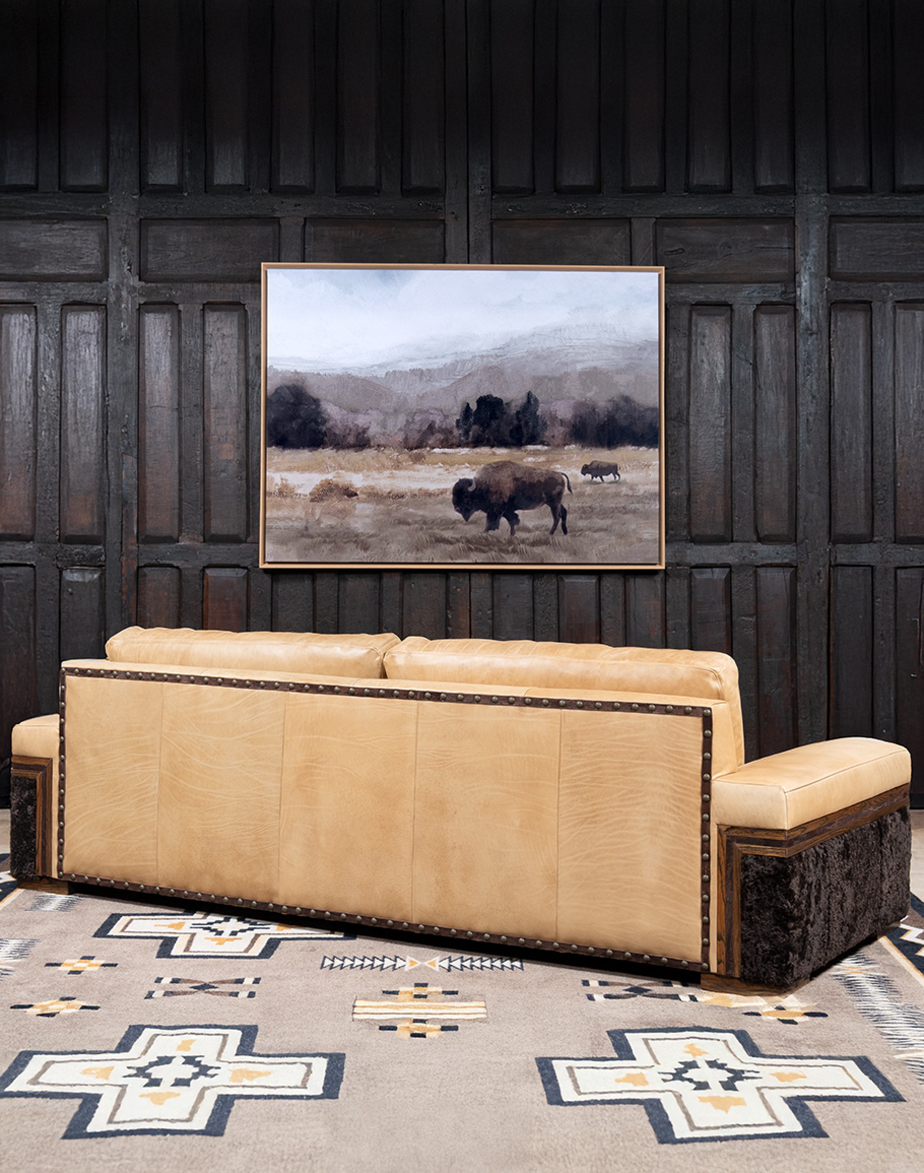 The Alpine Ivory Leather Sofa is a striking piece of furniture that adds a touch of sophistication and refinement to any interior and exemplifies the beauty of mountain ranch furniture. Expertly crafted from the finest materials, this hand-burnished leather sofa boasts a sleek and elegant design reminiscent of natural patterns that inspire awe and admiration.
