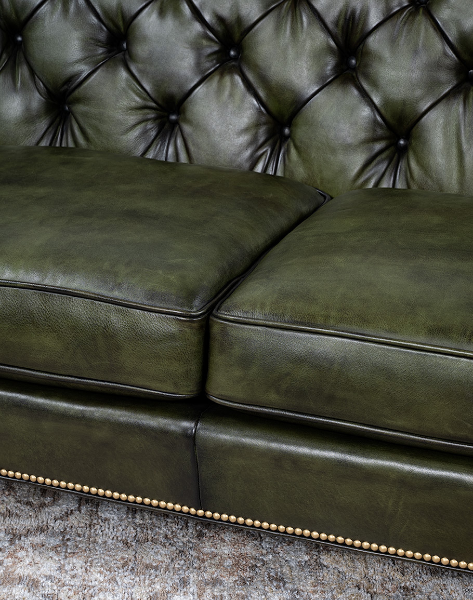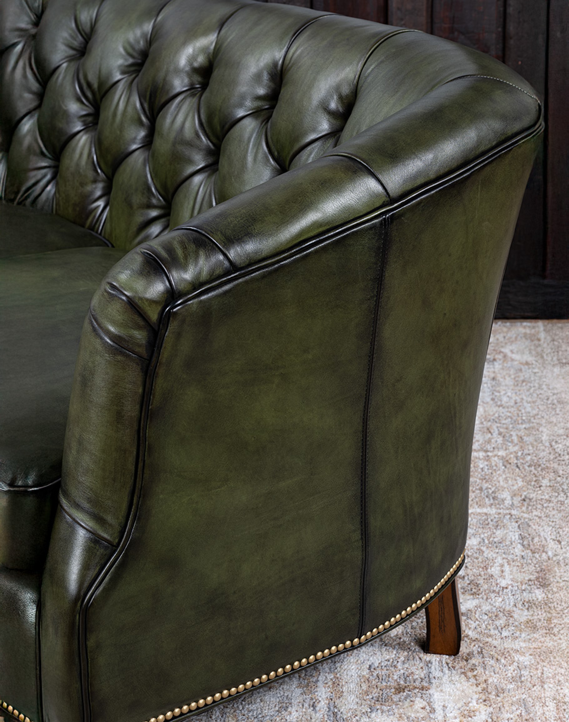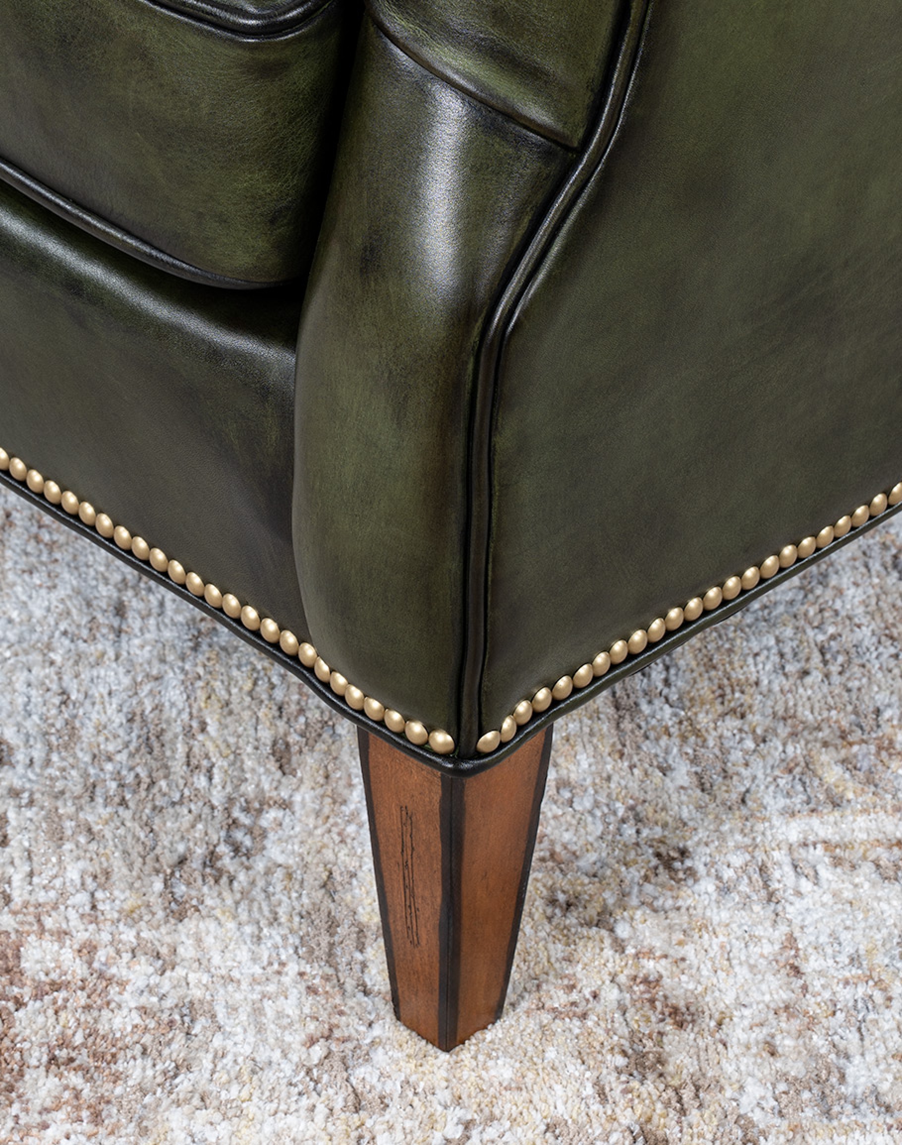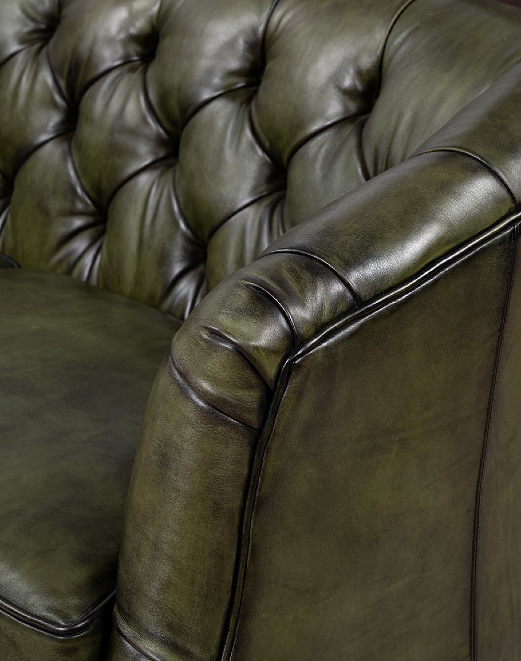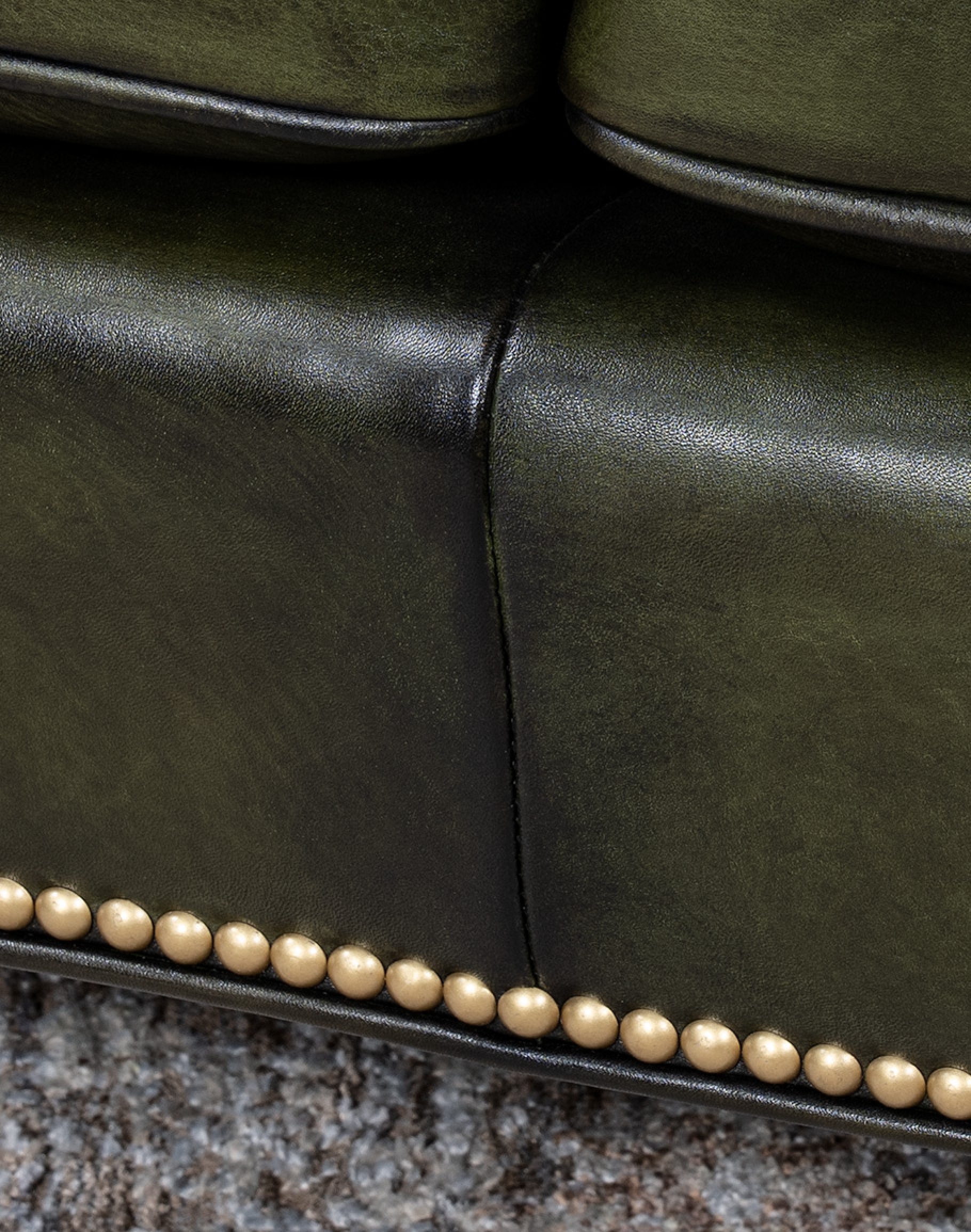 - Full-grain leather upholstered in olive green leather with hand-burnished details