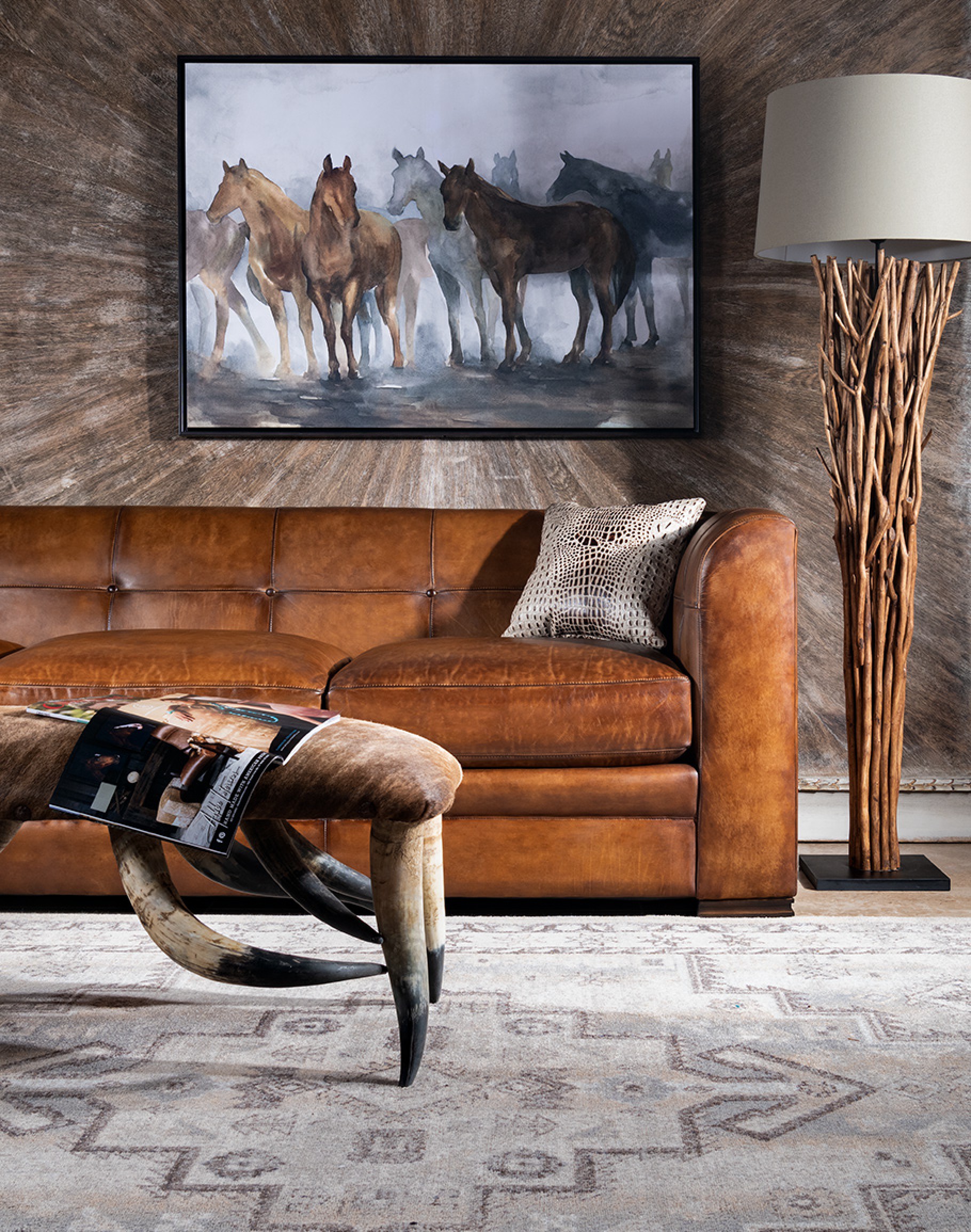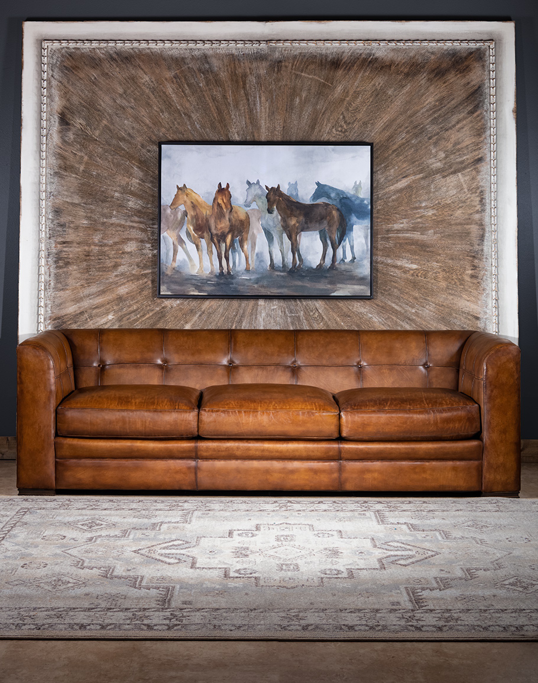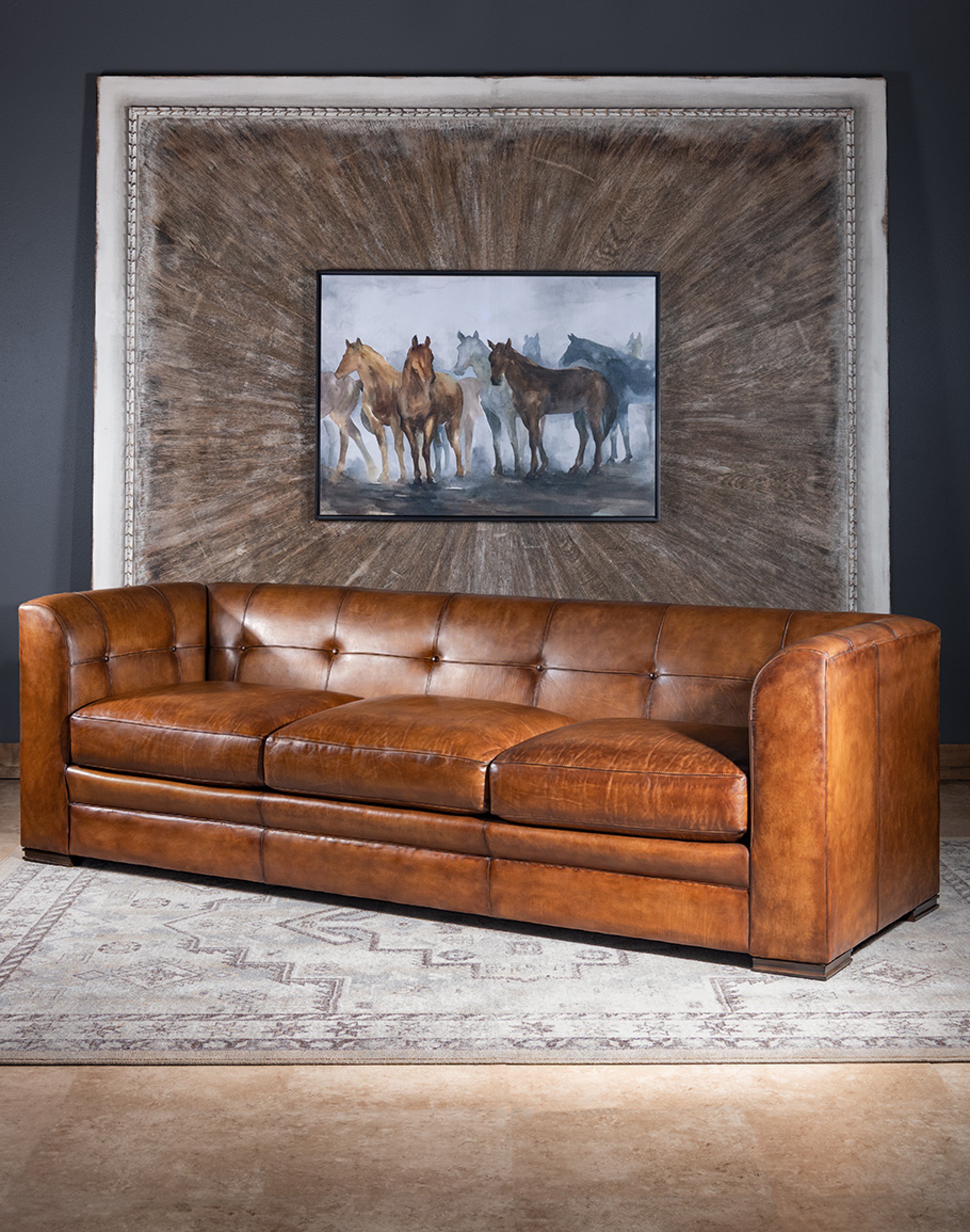 Leather Description: Artisan Leathers beautifully evoke this time worn quality, unique to every individual piece, like the originals. To pure aniline leather crusts, already fully and carefully upholstered to the piece, a base color is created with multiple applications of waxes and oils, hand-worked by the leather Artisan. After drying, this craftsman then carefully builds-up the finish with an expert's eye, and touch, to achieve an aged patina in just the right places to reflect the aged qualities only time, wear, and frequent care could have accomplished naturally. Every individual piece upholstered with Artisan Leather finishing methods is first beautifully built to the highest standards of quality. The leather is then hand-colored and aged to bespeak the loving touch of time, providing a quality antique appearance to a beautiful new piece of quality leather furniture. Every chair, sofa, or bench has its very own unique identity only these hand-crafted methods can provide, reflecting the presence of a time honored past.
