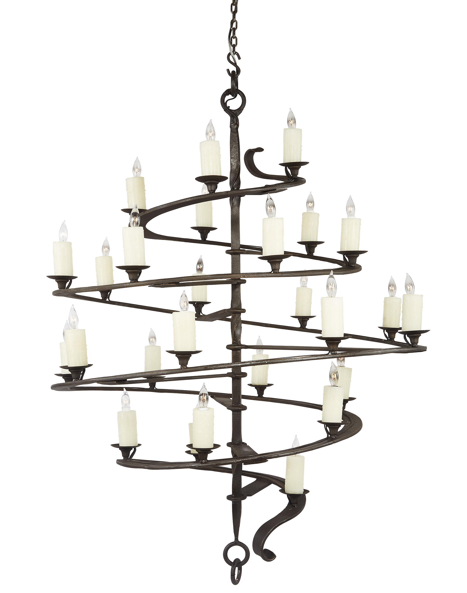 Belvedere Spiral Hammered Wrought Iron Chandelier