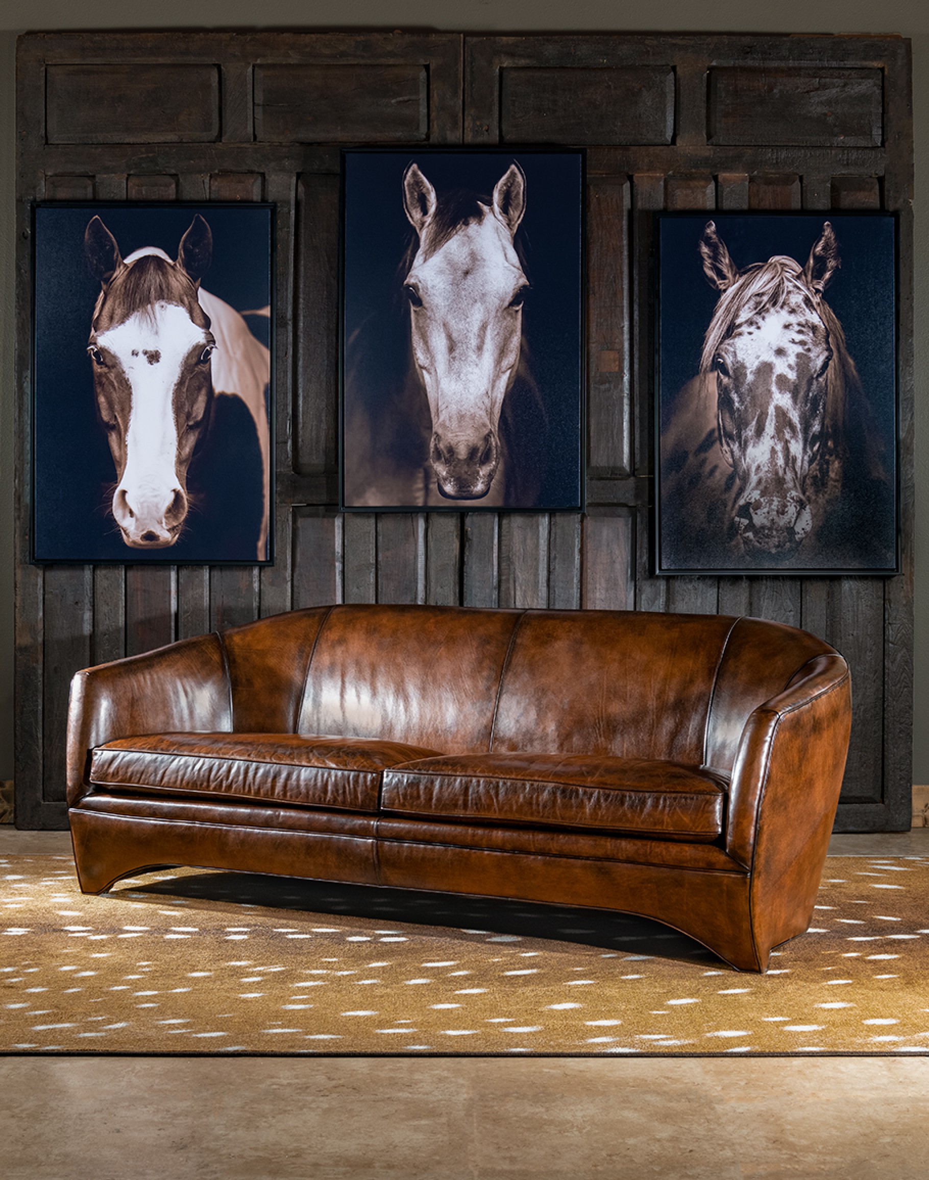 Shop Our Benson Curved Back Leather Sofa in Brown colors. Crafted with Full Grain Leather and featuring a Solid Wood Frame for Top Quality construction. A perfect addition to any Modern Rustic space, brought to you by Adobe Interiors.