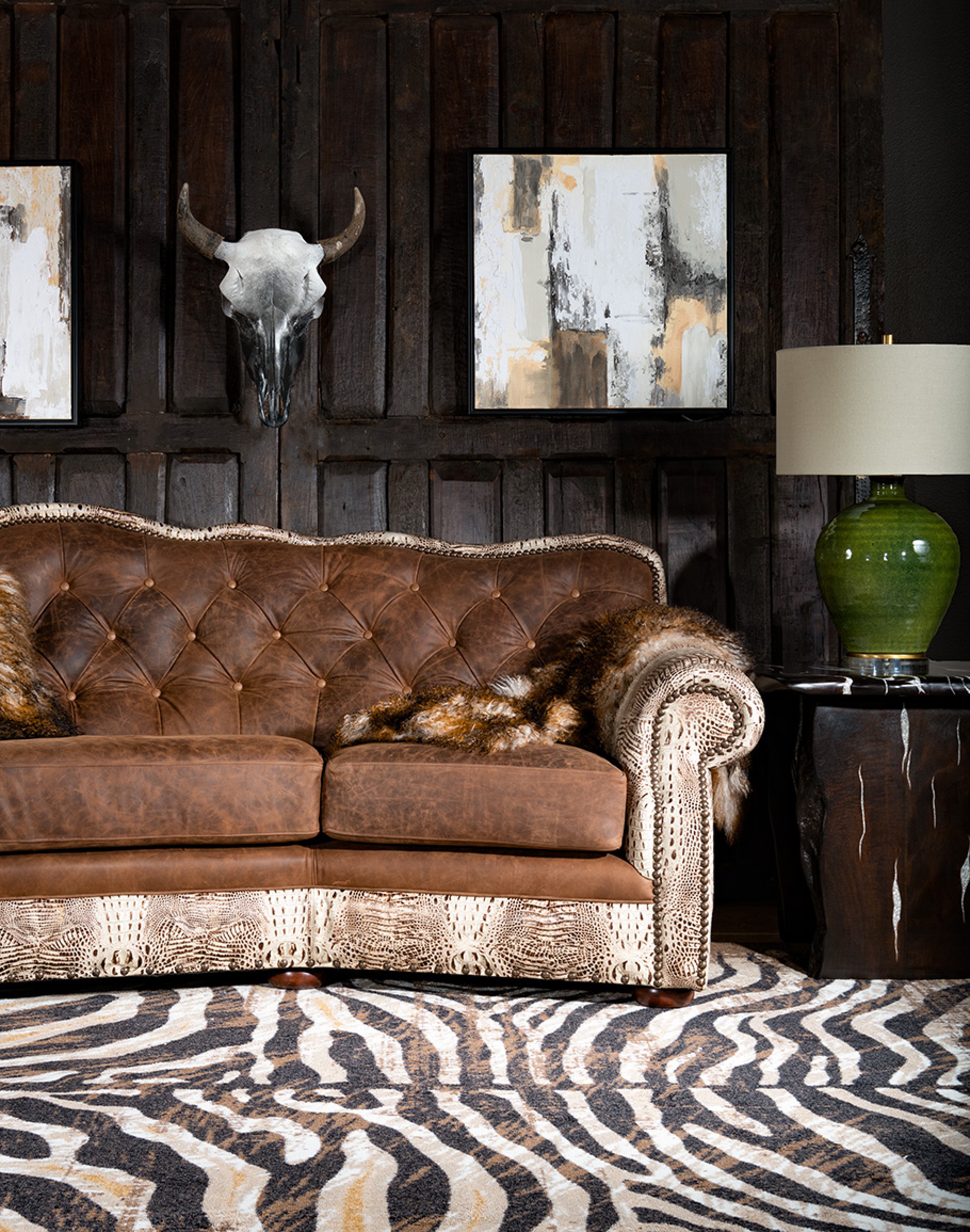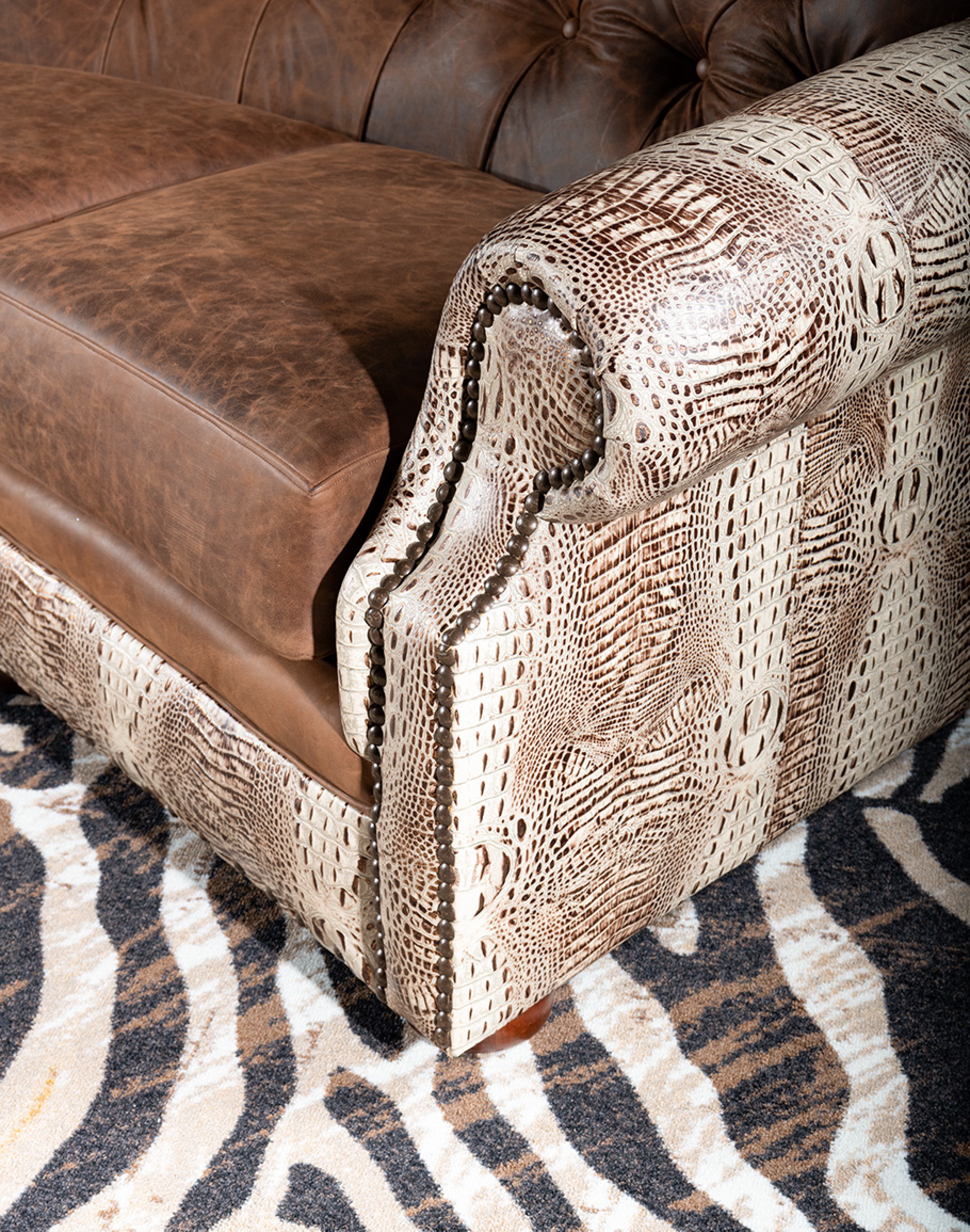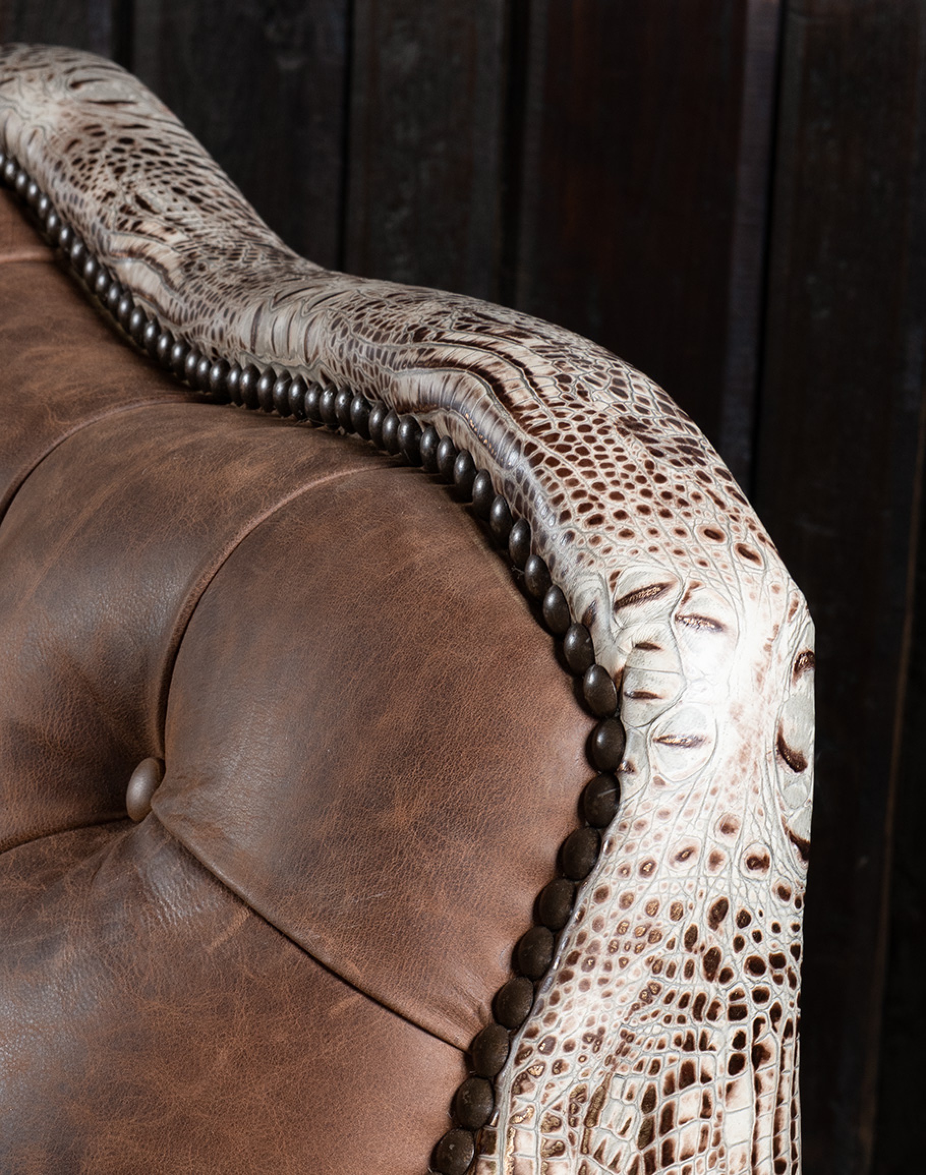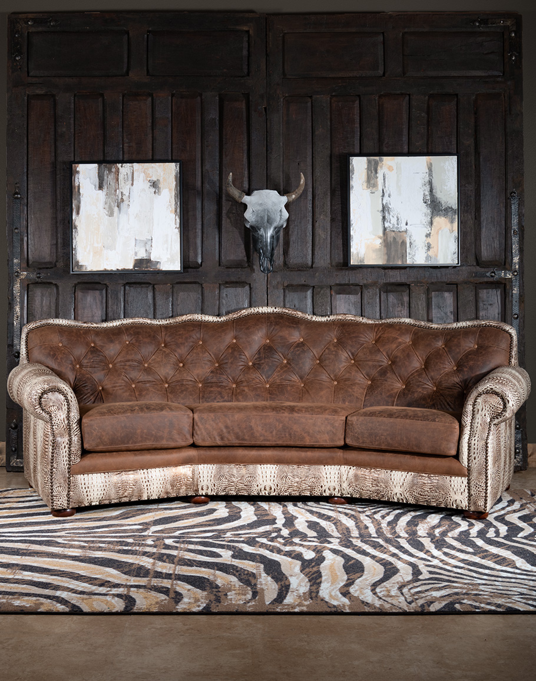 Tags: Curved, Sofa, Croc, Embossed, Leather, Brown, Distressed, Sofas, Tufted