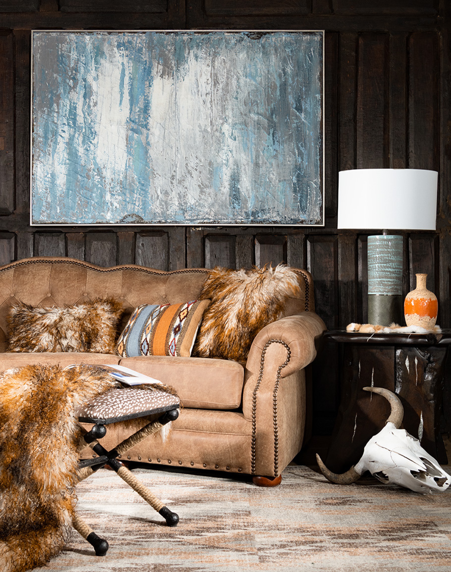 A regal tufted seat back and endlessly plush cushions make our Bonanza Suela Leather Sofa a beautiful and functional addition to any living room. This distinctive couch features high backs and deep seats, offering both extensive comfort and effortless style. This fine leather sofa is both exceedingly elegant and extremely comfortable—a statement piece that accentuates your fine tastes and dedication to the rustic elegant aesthetic. Rest easy knowing that the elegant Bonanza Suela Sofa is perfectly equipped to blend in with any existing décor that you may have. This versatile piece of furniture easily fits in with modern rustic, quality Western and hacienda decor patterns; as well as many other Southwest-inspired themes!