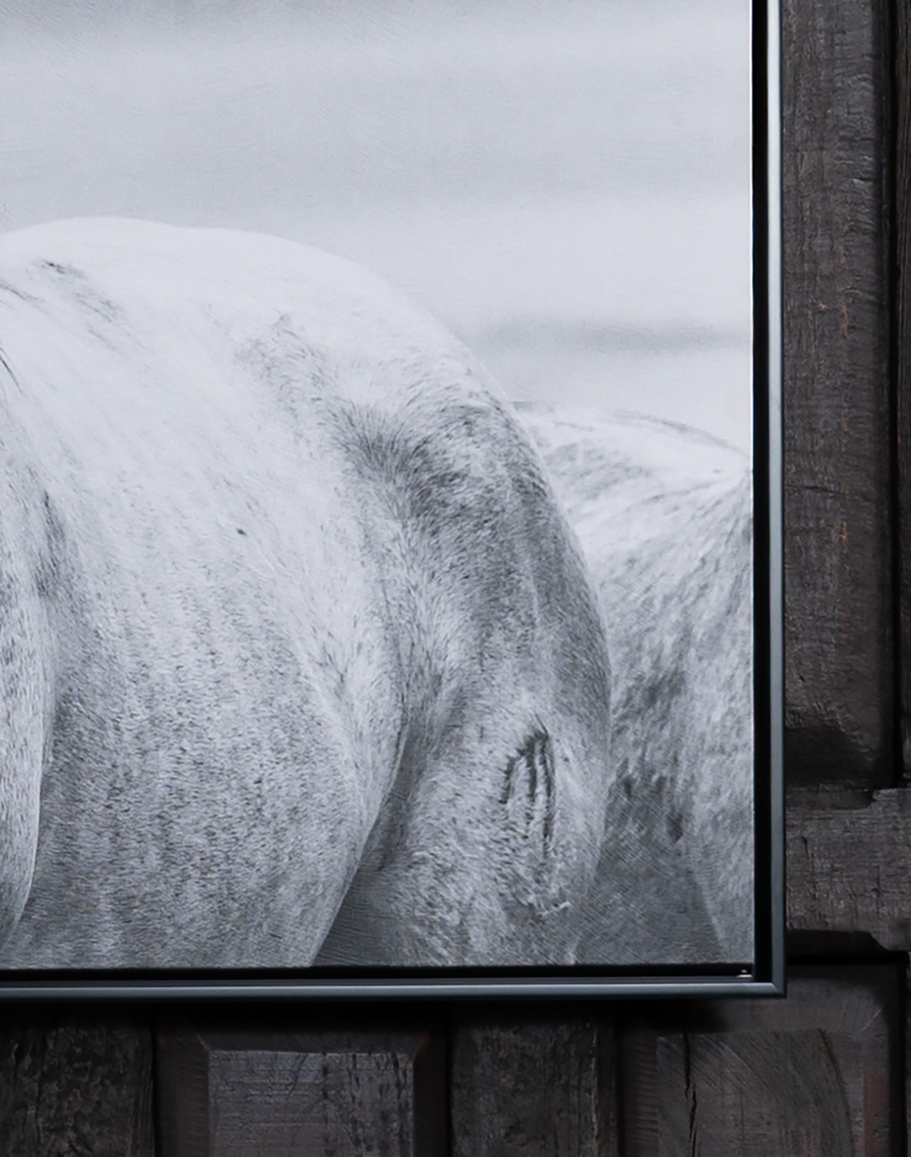Perfect for Western interiors, modern ranch homes, coastal ranch designs, and transitional spaces, Breeze blends rugged authenticity with refined sophistication. The monochromatic treatment ensures timeless appeal, while the subject matter evokes freedom, strength, and quiet resilience.