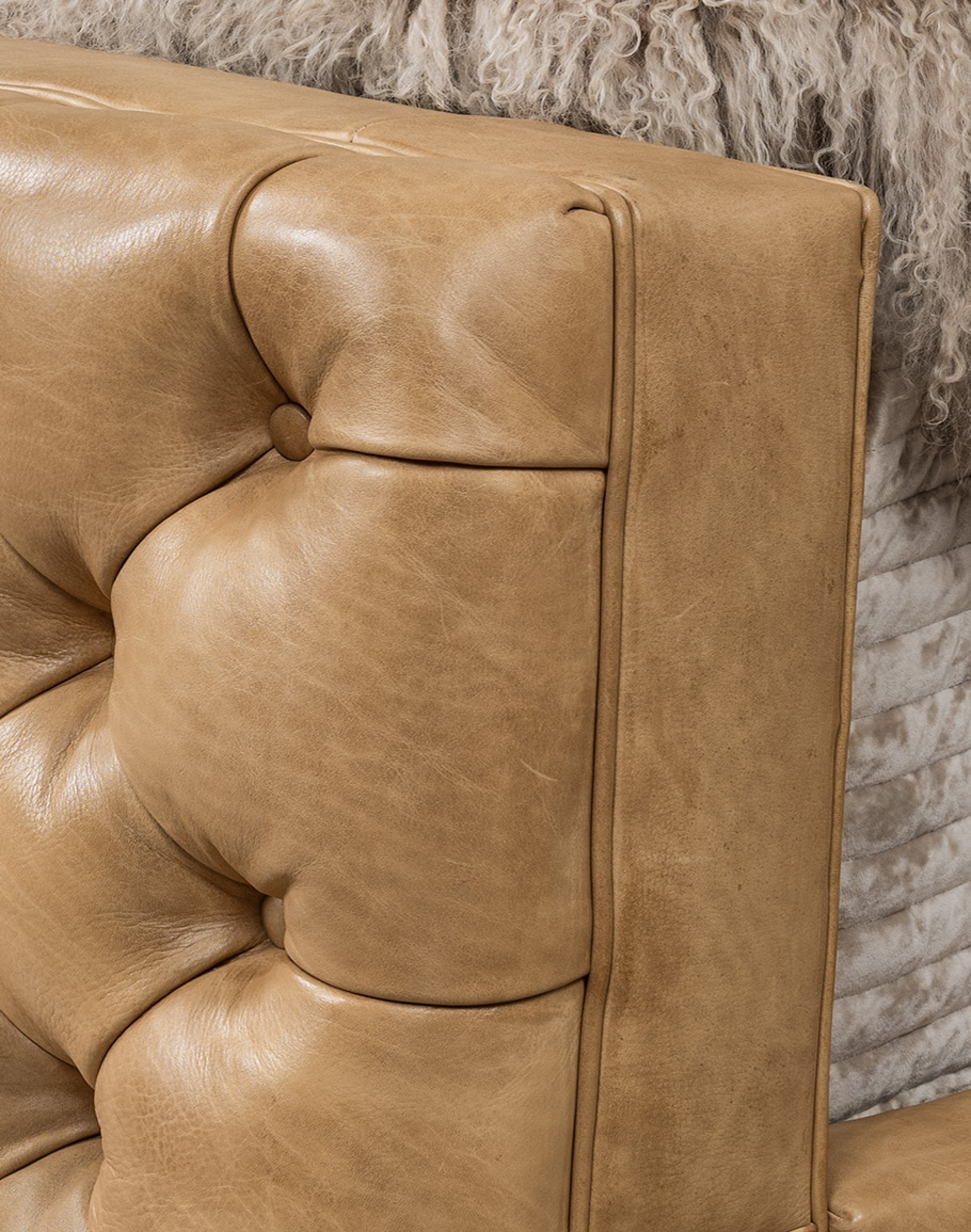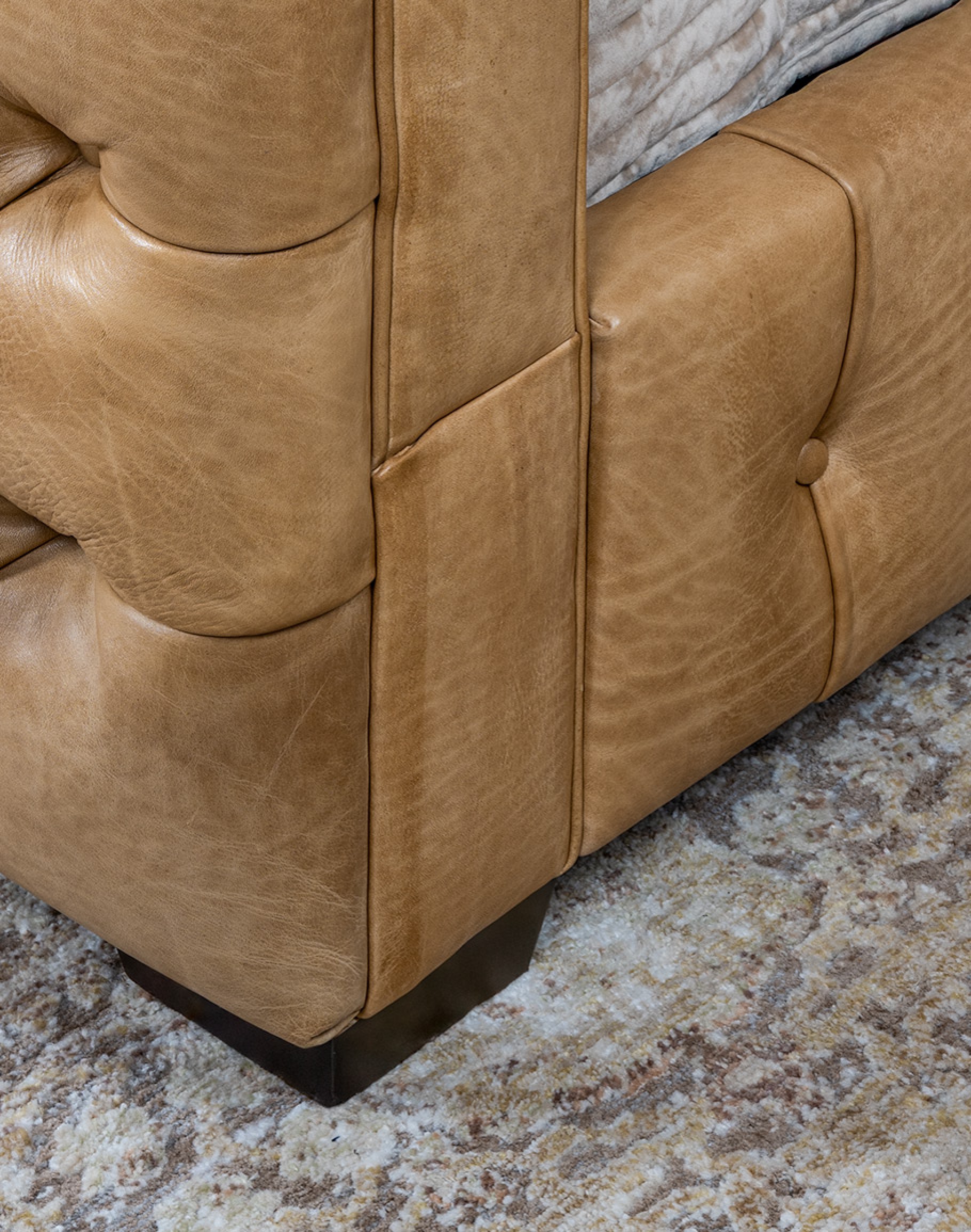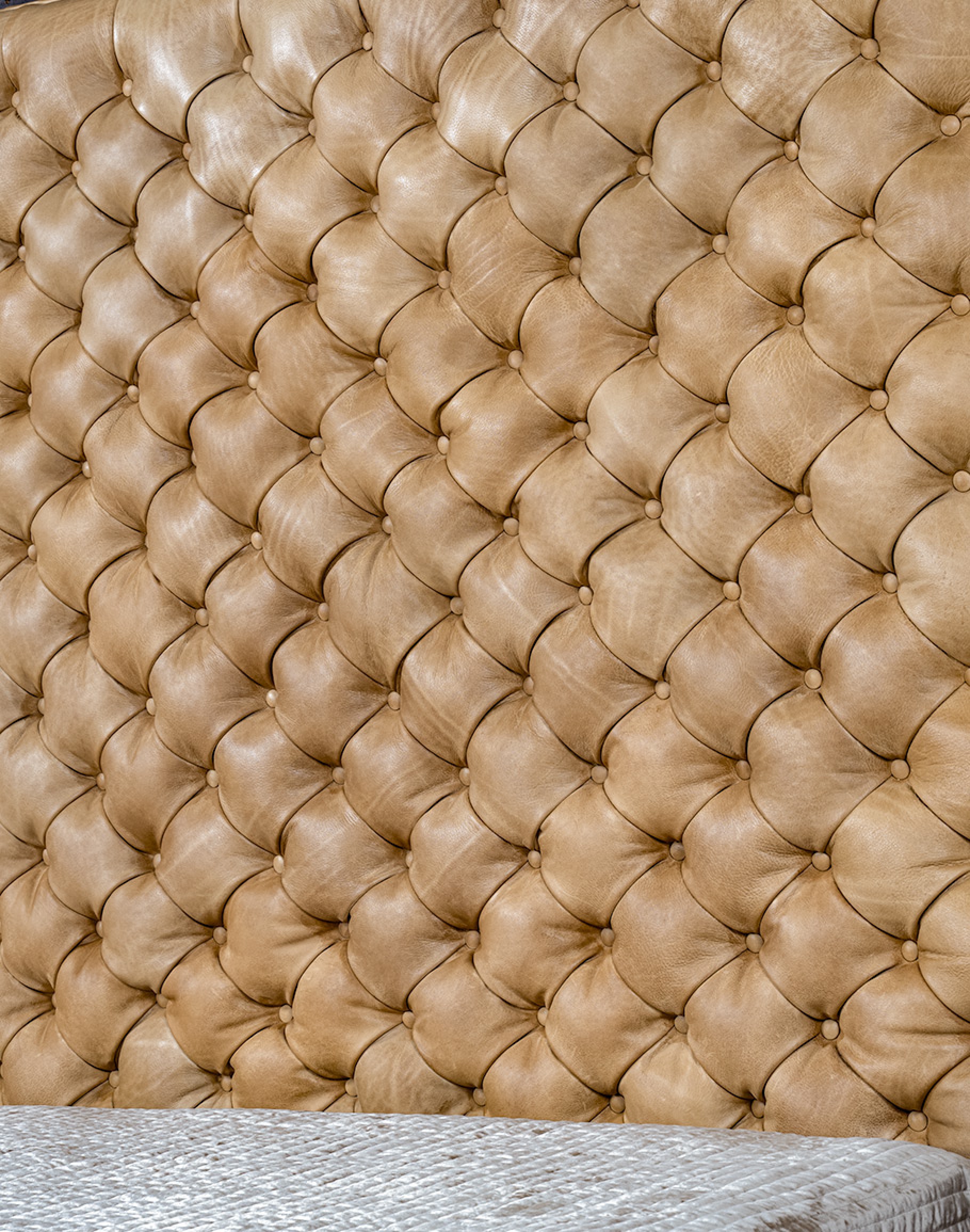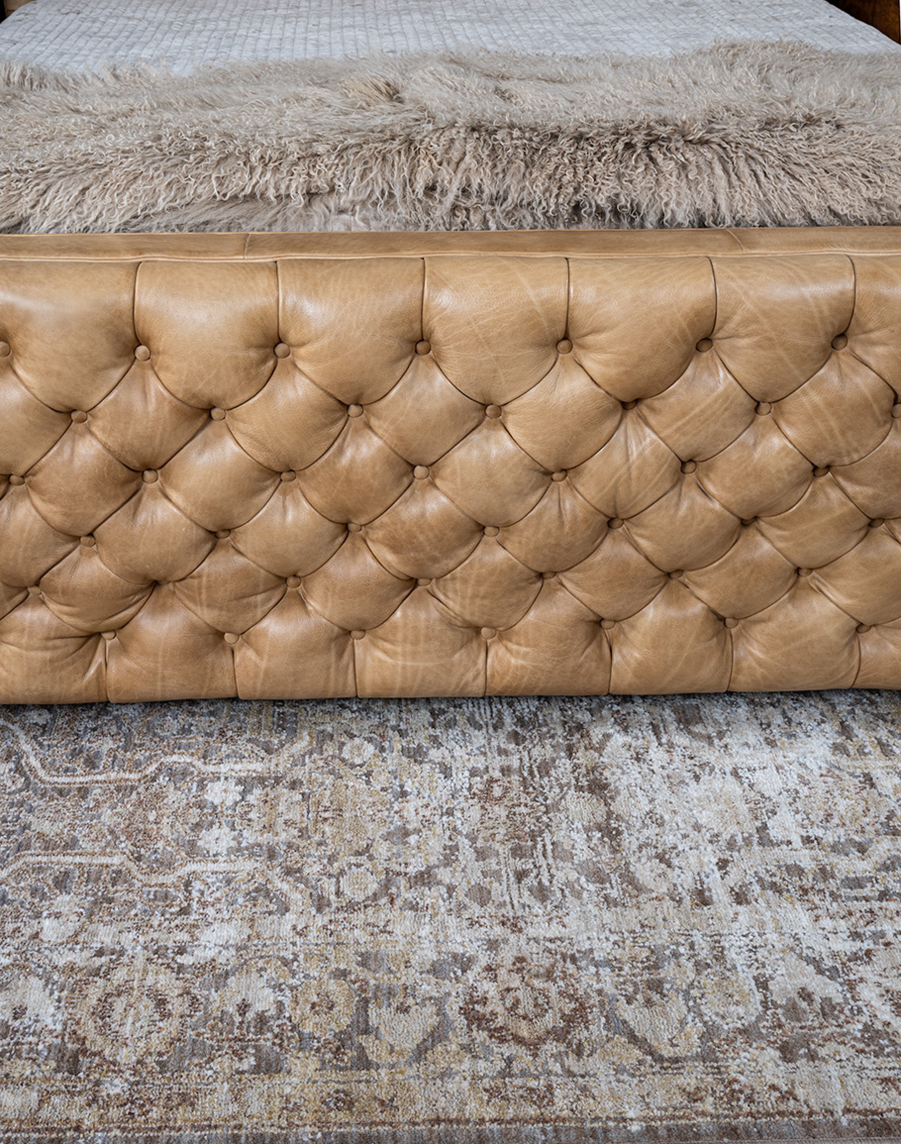 The Brentwood Tufted Leather Bed is the epitome of refined Western luxury, handcrafted in the USA to the highest standards of quality and craftsmanship. Built from a solid hardwood frame for enduring strength, this bed is fully upholstered in full-grain leather with hand-burnished detailing that accentuates the leather’s rich texture and tonal depth.