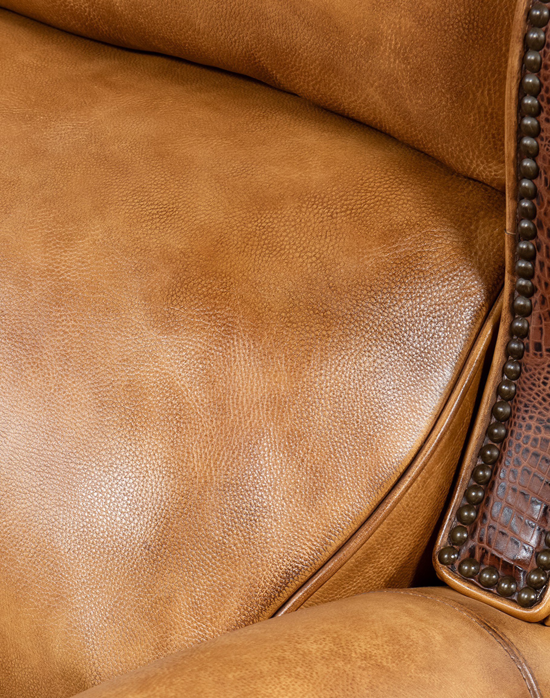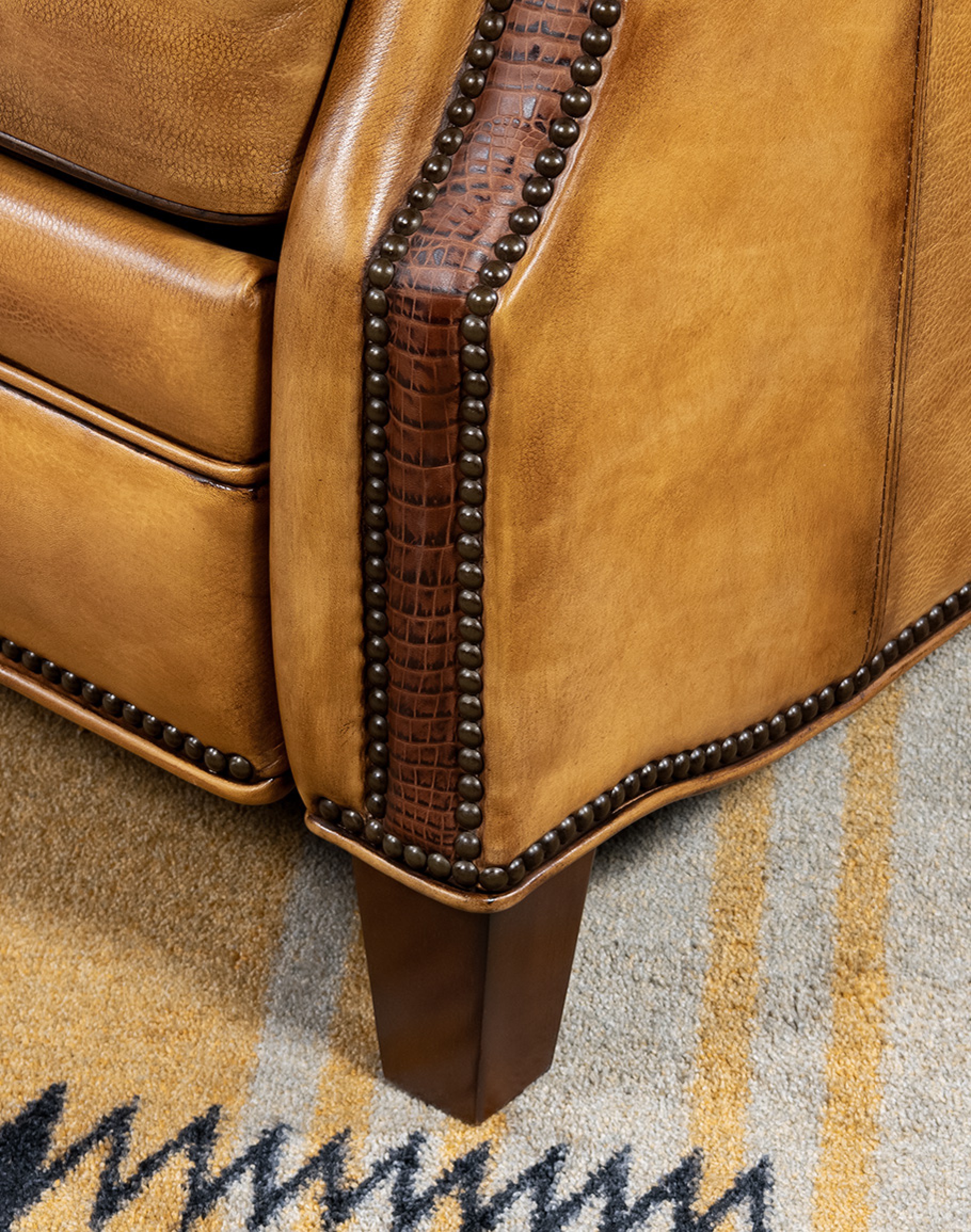 The brass nail tacks and embossed leather croc details on the arm panels and wings add an extra touch of elegance to this 100% American Made Recliner. Experience the ultimate in quality, comfort, and luxury with our Westworth Leather Recliner. Order yours today and add a touch of western and rustic elegance to your home décor! At Adobe Interiors, we create the furniture, and you create the memories.