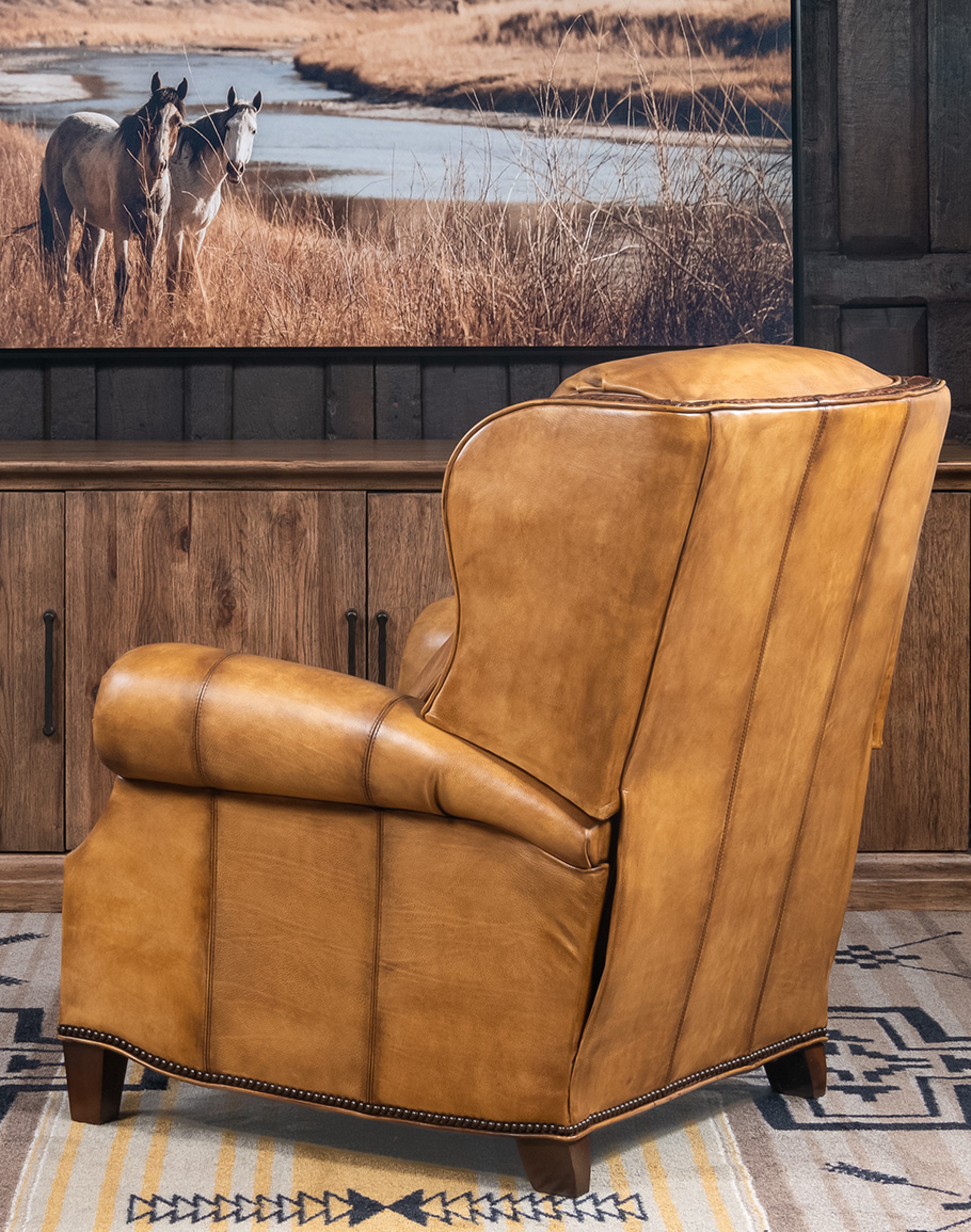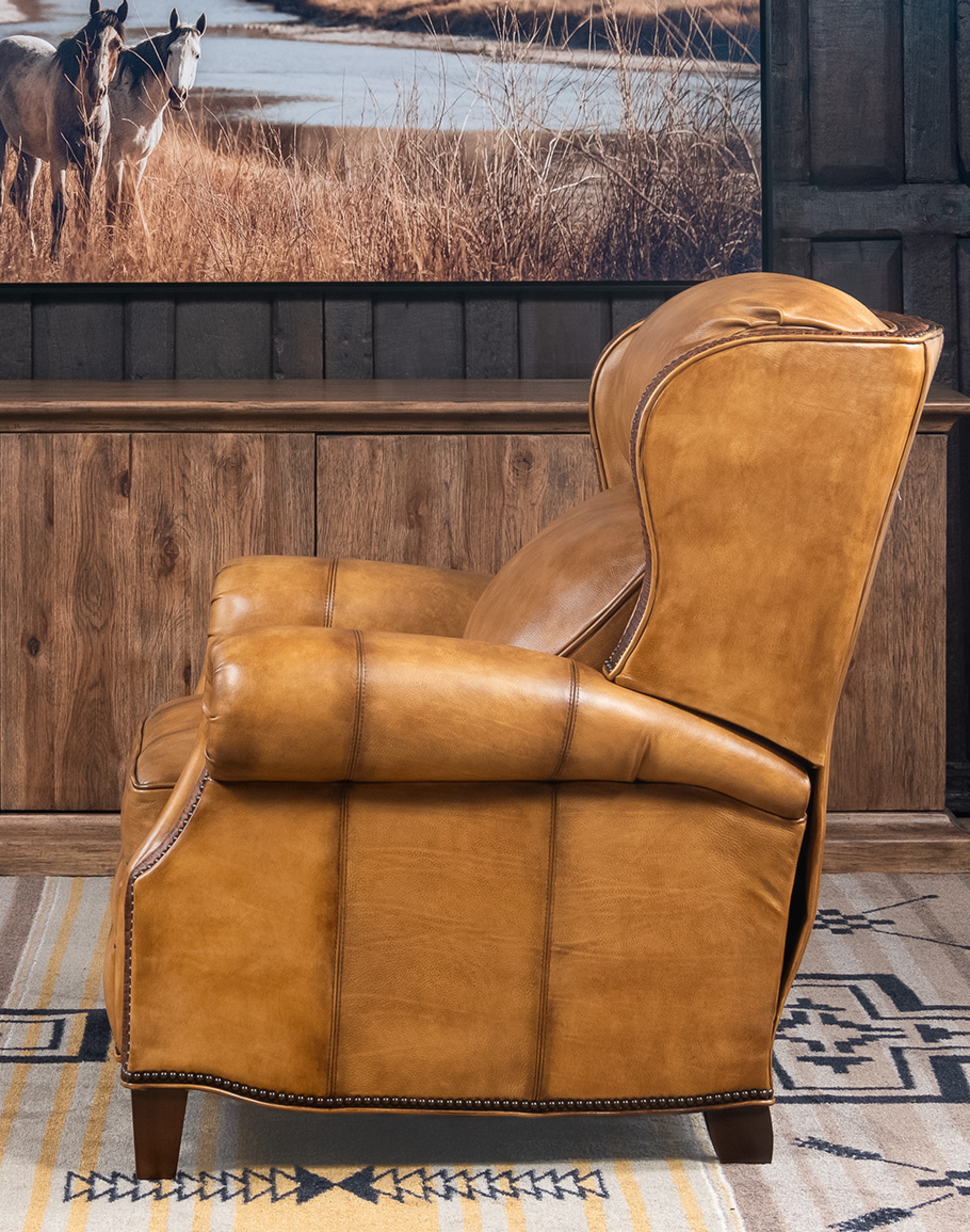 Our artisan craftsmanship ensures that every detail is perfect, making this recliner a timeless masterpiece that fits perfectly with any western or rustic elegant décor. The bustle back provides ample head and neck support, while the full-grain leather is soft and supple to the touch.