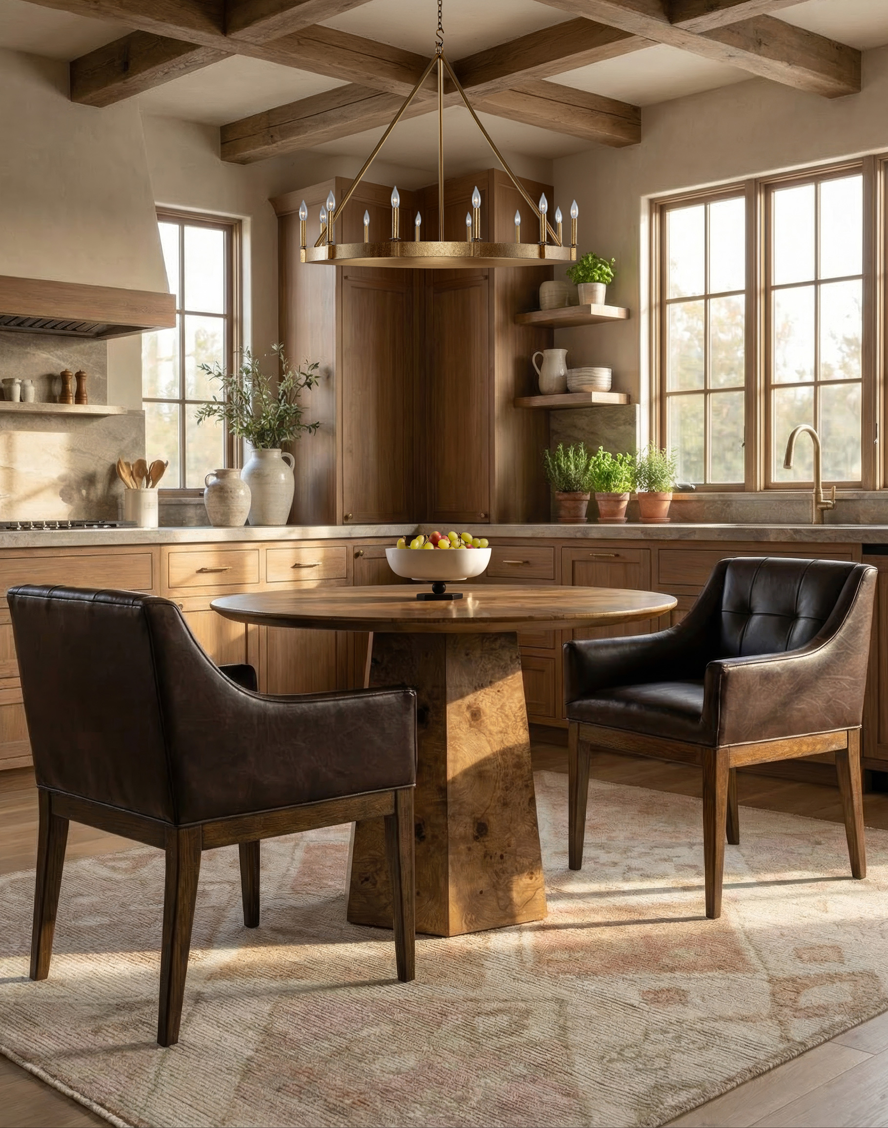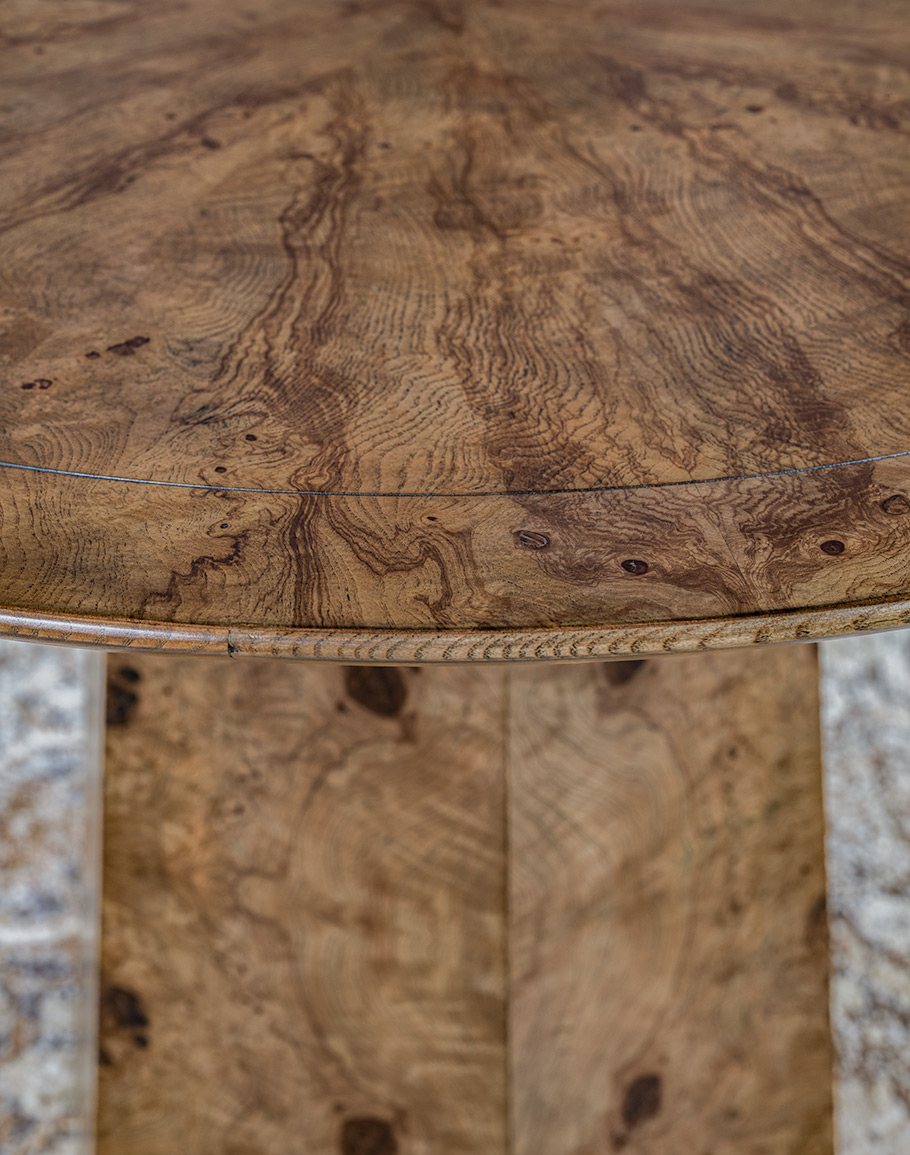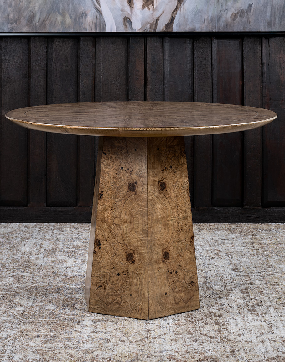 Elevate your dining space with the unmistakable artistry of burl. The Burl Wood Round Dining Table is 100% American made,crafted to the highest standards of quality and fine-furniture craftsmanship. The circular silhouette creates a natural gathering point—inviting conversation, effortless flow, and a beautifully balanced presence in both modern and transitional interiors.
