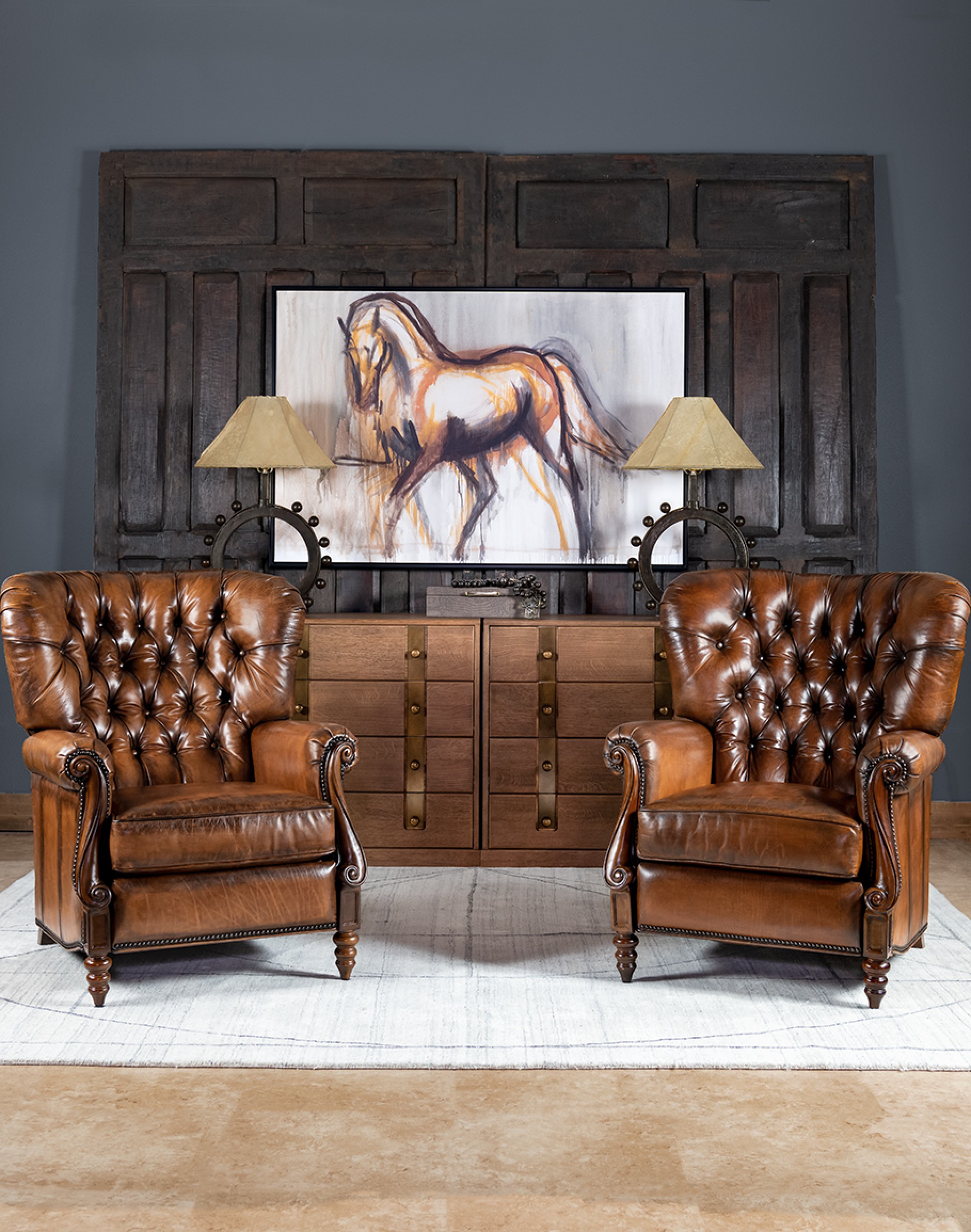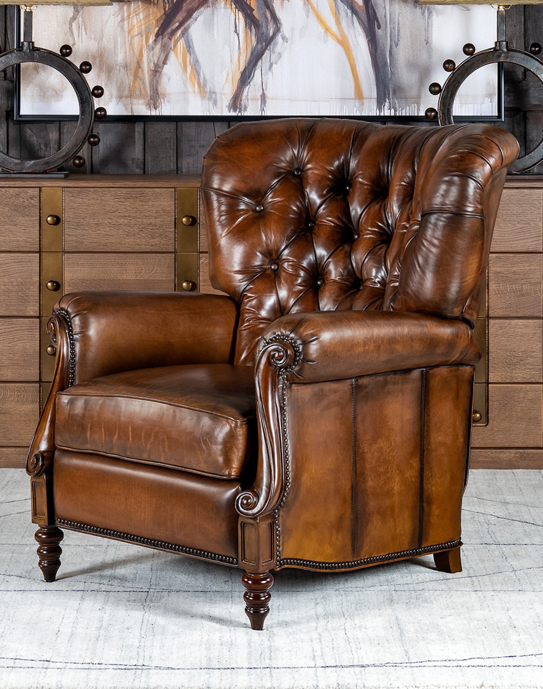 Tags: Recliner, Tufted, Leather, Carved Wood, Recliners
