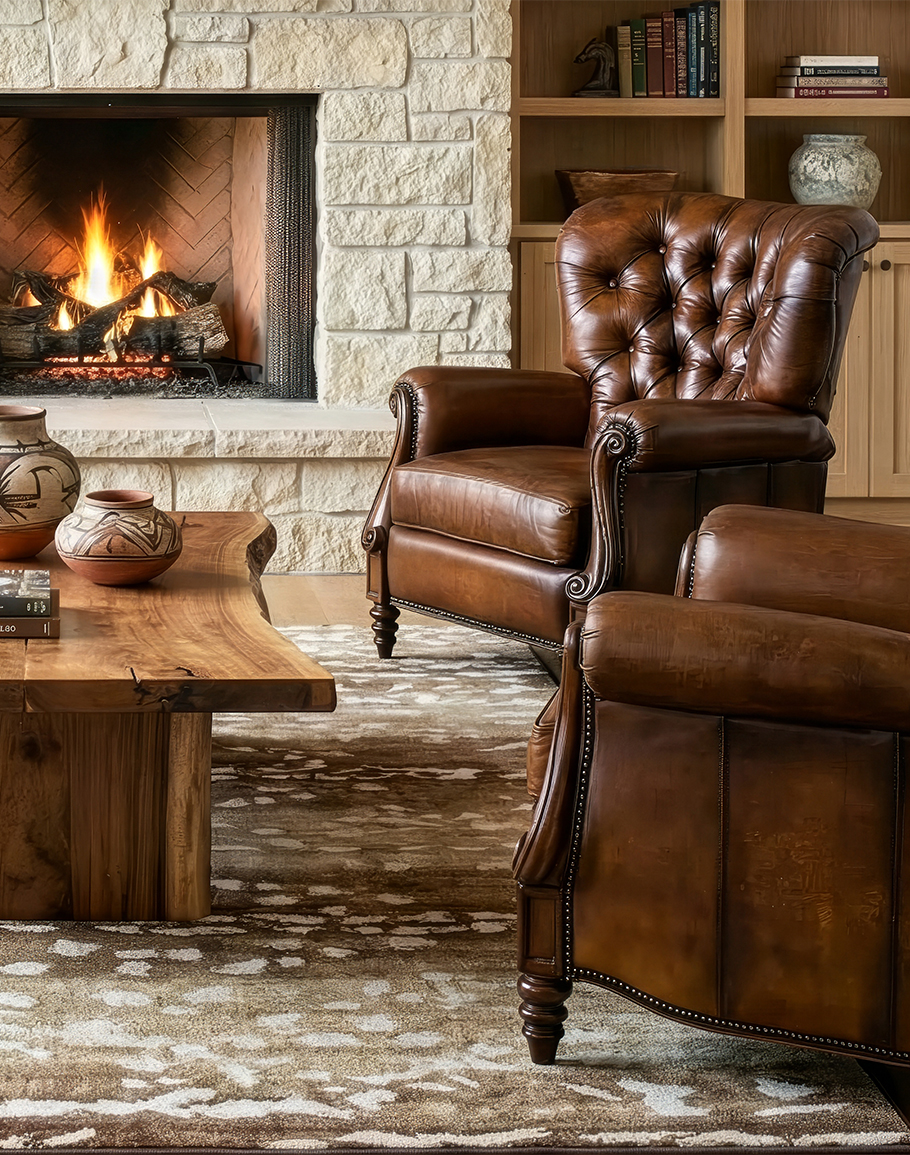 The Camden Recliner is designed to look as good in a stately study as in a vibrantly decorated living room, exemplifying both classic and refined ranch styles. Featuring genuine, hand-burnished leather, rich studding detail, and a sturdy frame, this upscale recliner is an instant classic, and classics always stay in style. And when you sit down in its gloriously soft leather seat, all you can think about is how comfortable you feel. A handcrafted solid hardwood frame supports all of that, so you never have to worry about the dependability of this high-end recliner chair. 100% American made to the highest quality of standards! Invest in this fine-quality recliner today, an heirloom in the making. At Adobe Interiors, we create the furniture, and you create the memories.