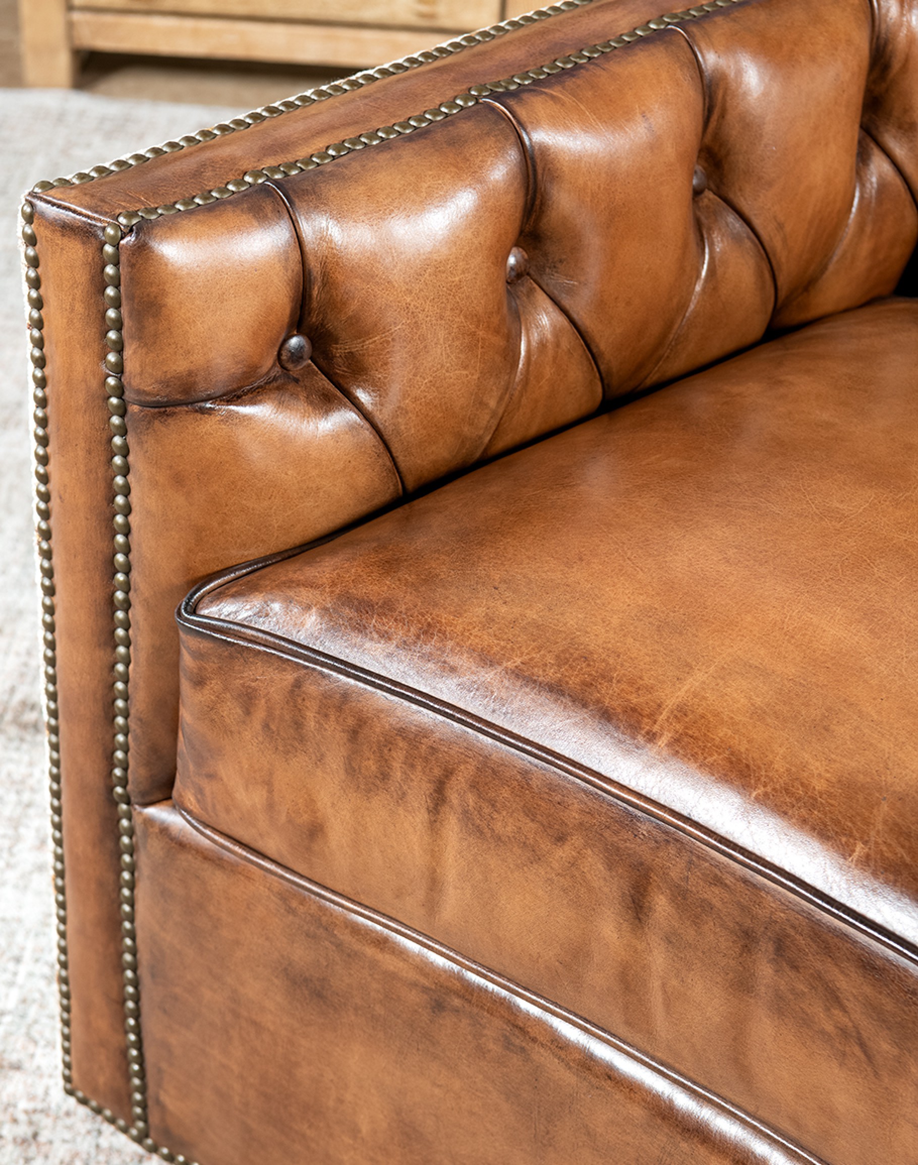 Every individual piece upholstered with Artisan Leather finishing methods is first beautifully built to the highest standards of quality. The leather is then hand-colored and aged to bespeak the loving touch of time, providing a quality antique appearance to a beautiful new piece of quality leather furniture. Every chair, sofa, or bench has its very own unique identity only these hand-crafted methods can provide, reflecting the presence of a time honored past.