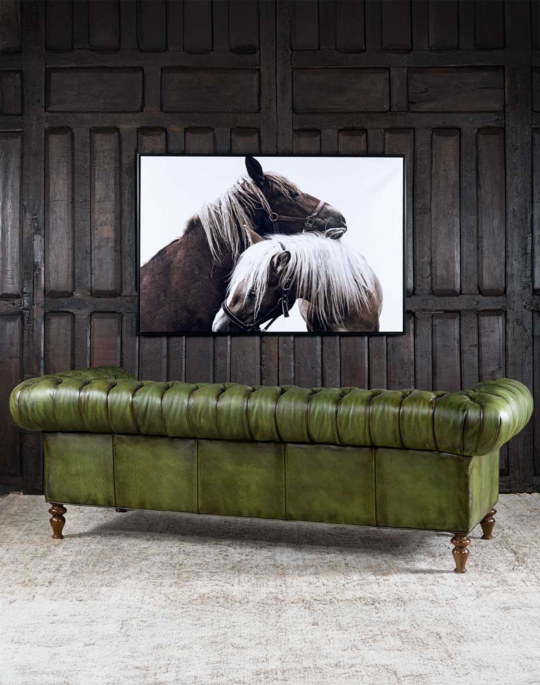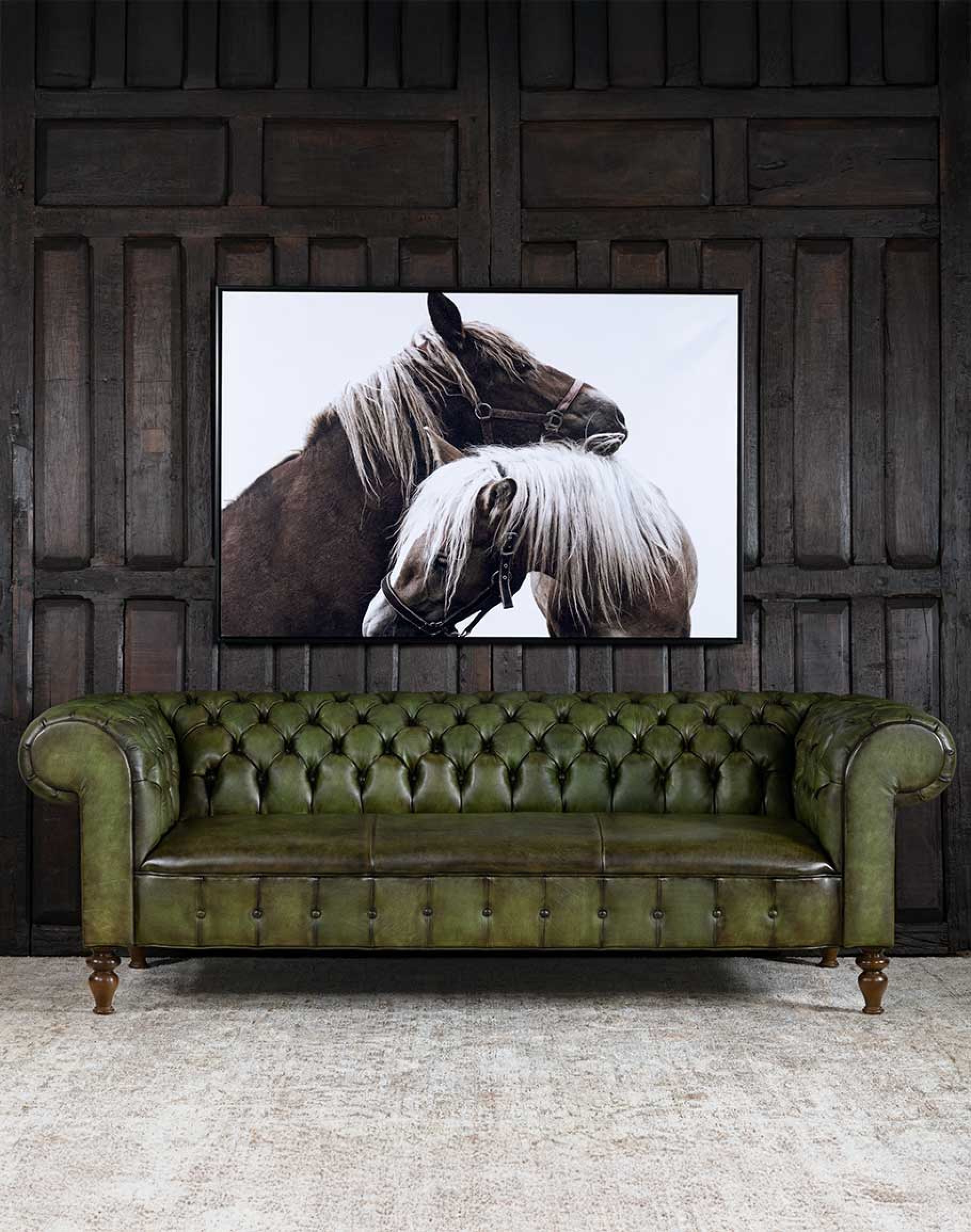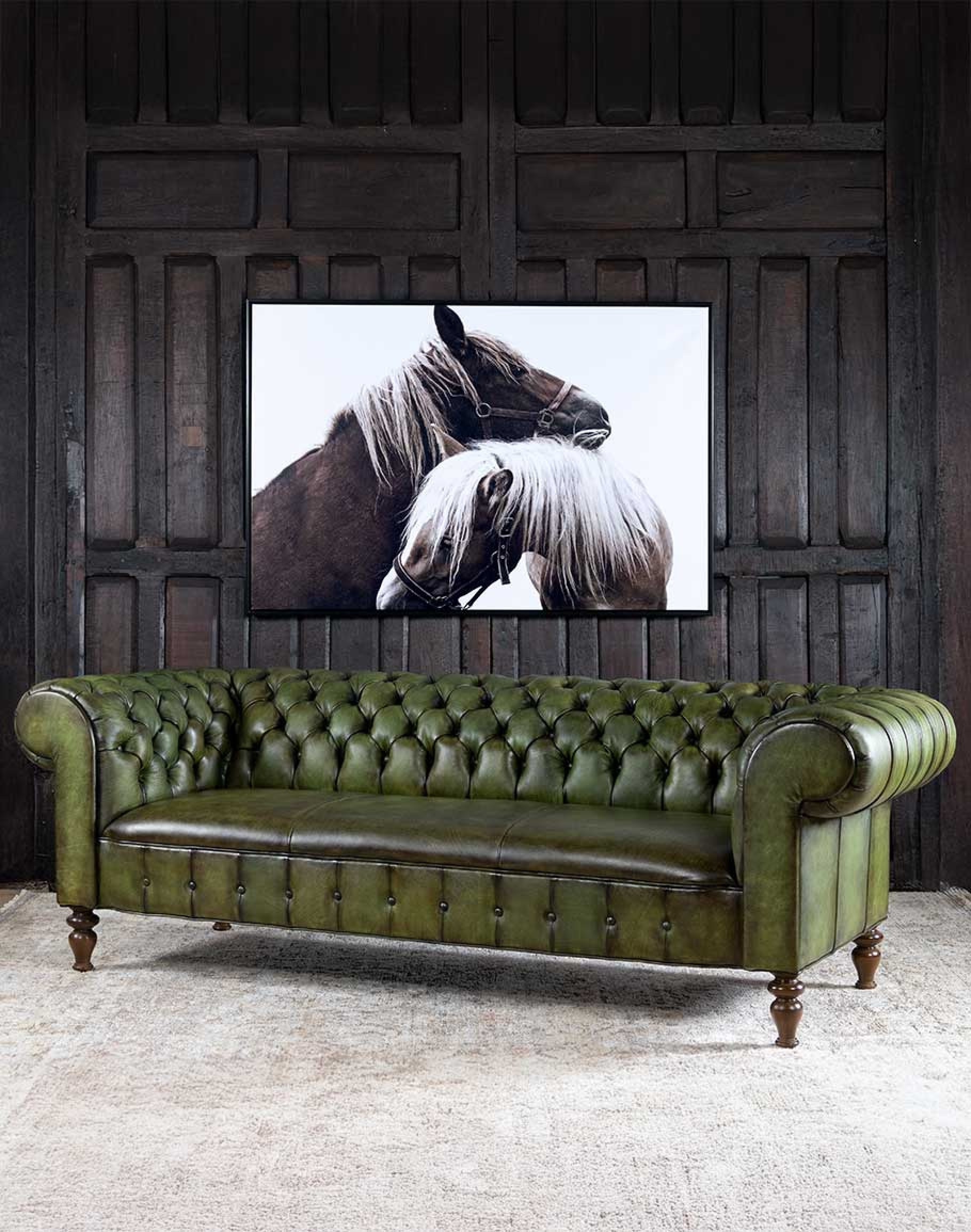 Ideal for those who appreciate superior craftsmanship and a touch of rustic refinement, the Carson Olive Leather Chesterfield Sofa elevates any living room or lounge with its bold character and lasting appeal. Perfect for ranch-inspired homes or anyone seeking a piece that marries tradition with modern luxury. At Adobe Interiors, we create the furniture, and you create the memories.