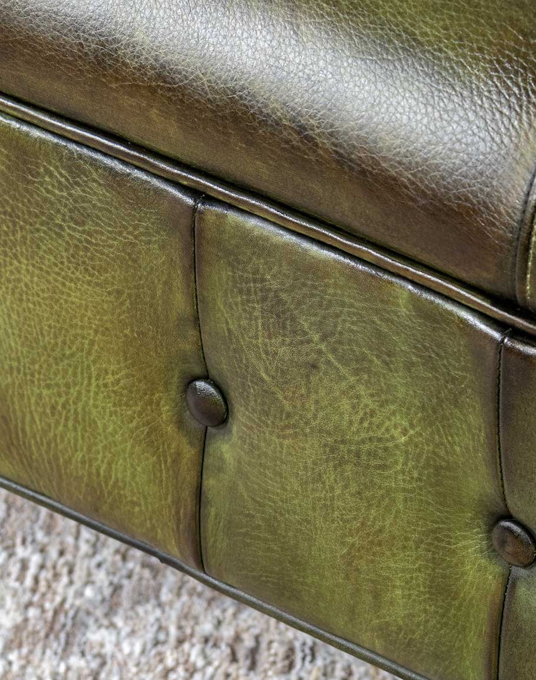 • Upholstered in full-grain green leather, hand-burnished for a refined finish