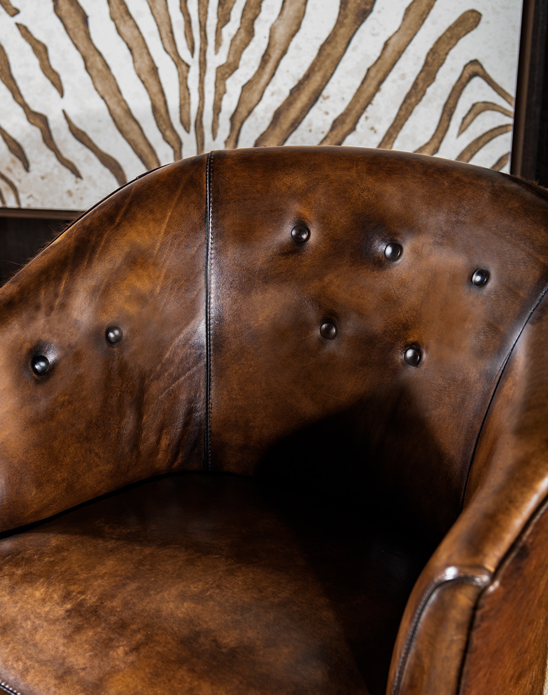 Leather Description: Artisan Leathers beautifully evoke this time worn quality, unique to every individual piece, like the originals. To pure aniline leather crusts, already fully and carefully upholstered to the piece, a base color is created with multiple applications of waxes and oils, hand-worked by the leather Artisan. After drying, this craftsman then carefully builds-up the finish with an expert’s eye, and touch, to achieve an aged patina in just the right places to reflect the aged qualities only time, wear, and frequent care could have accomplished naturally. Every individual piece upholstered with Artisan Leather finishing methods is first beautifully built to the highest standards of quality. The leather is then hand-colored and aged to bespeak the loving touch of time, providing a quality antique appearance to a beautiful new piece of quality leather furniture. Every chair, sofa, or bench has its very own unique identity only these hand-crafted methods can provide, reflecting the presence of a time honored past.