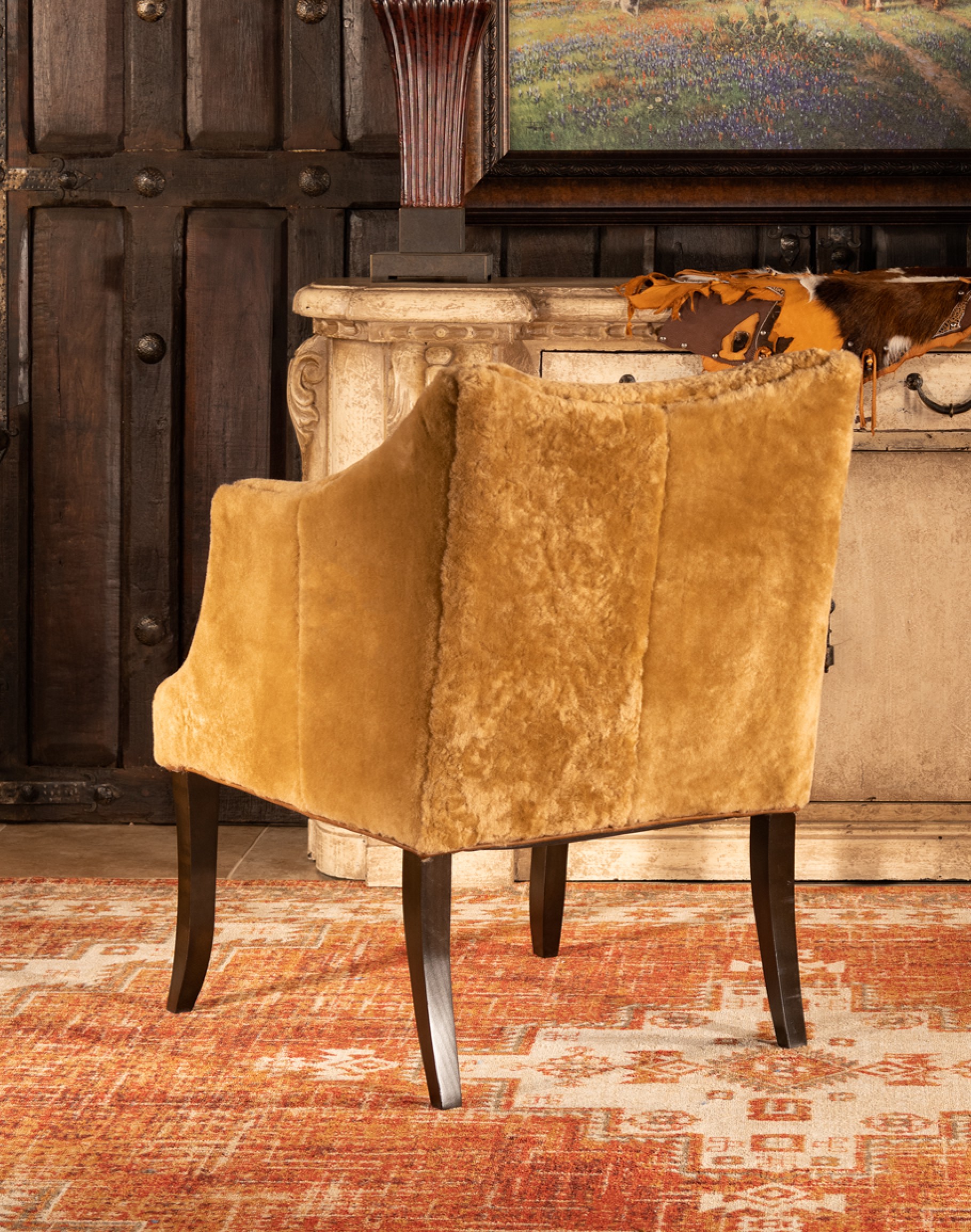 The Champagne Shearling Chair sits as good as it looks! Upholstered in grade A Shearling hides gives this chair a luxuriously soft and cozy feel. Solid Hardwood frame with 8 way hand tied construction. American Made! These chairs are built to last for many years to come!