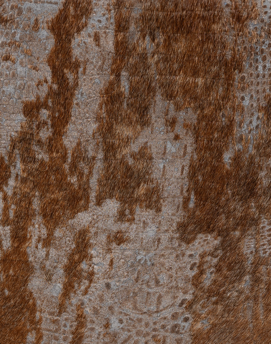 Unique brindle cowhide back with stamped croc pattern.