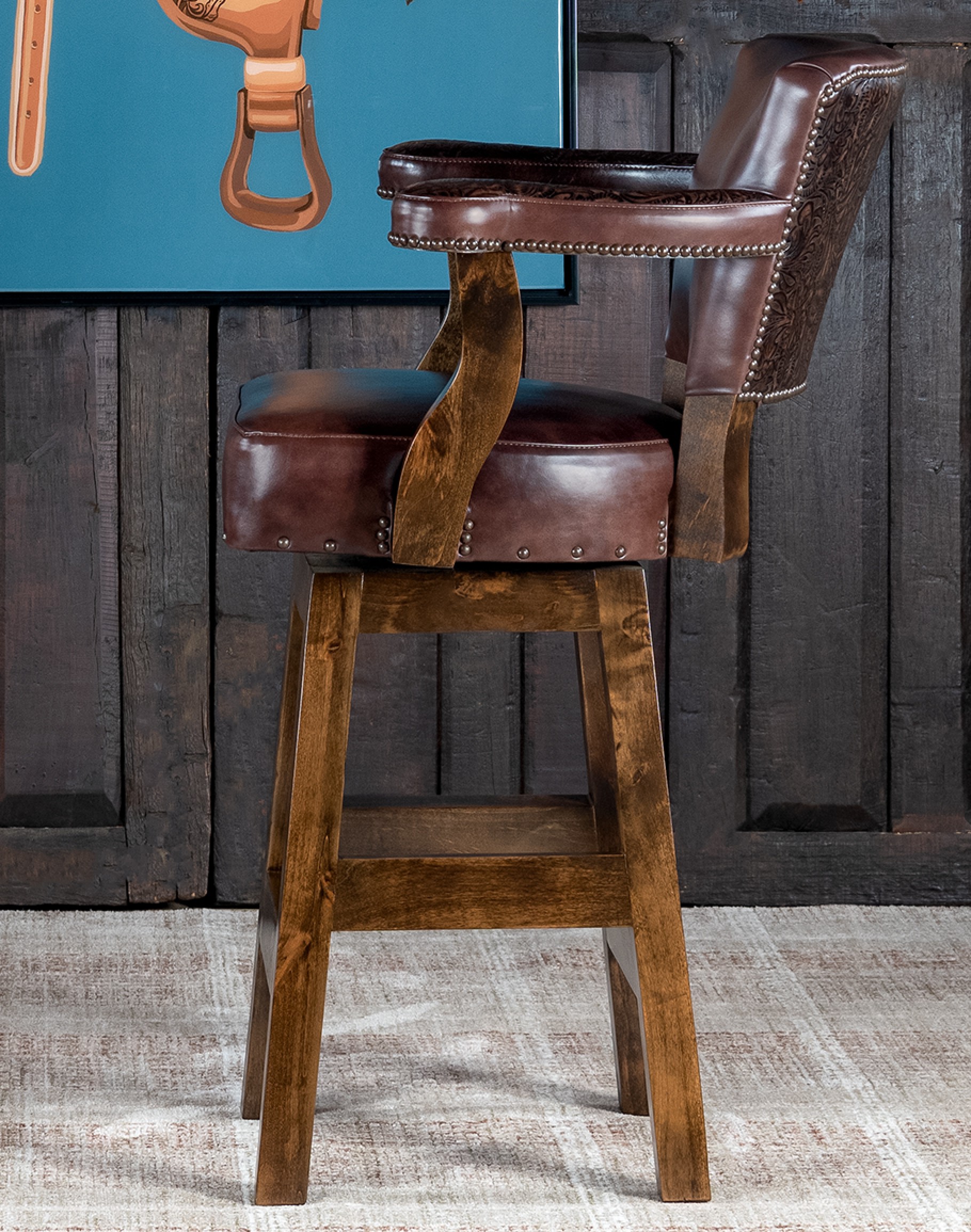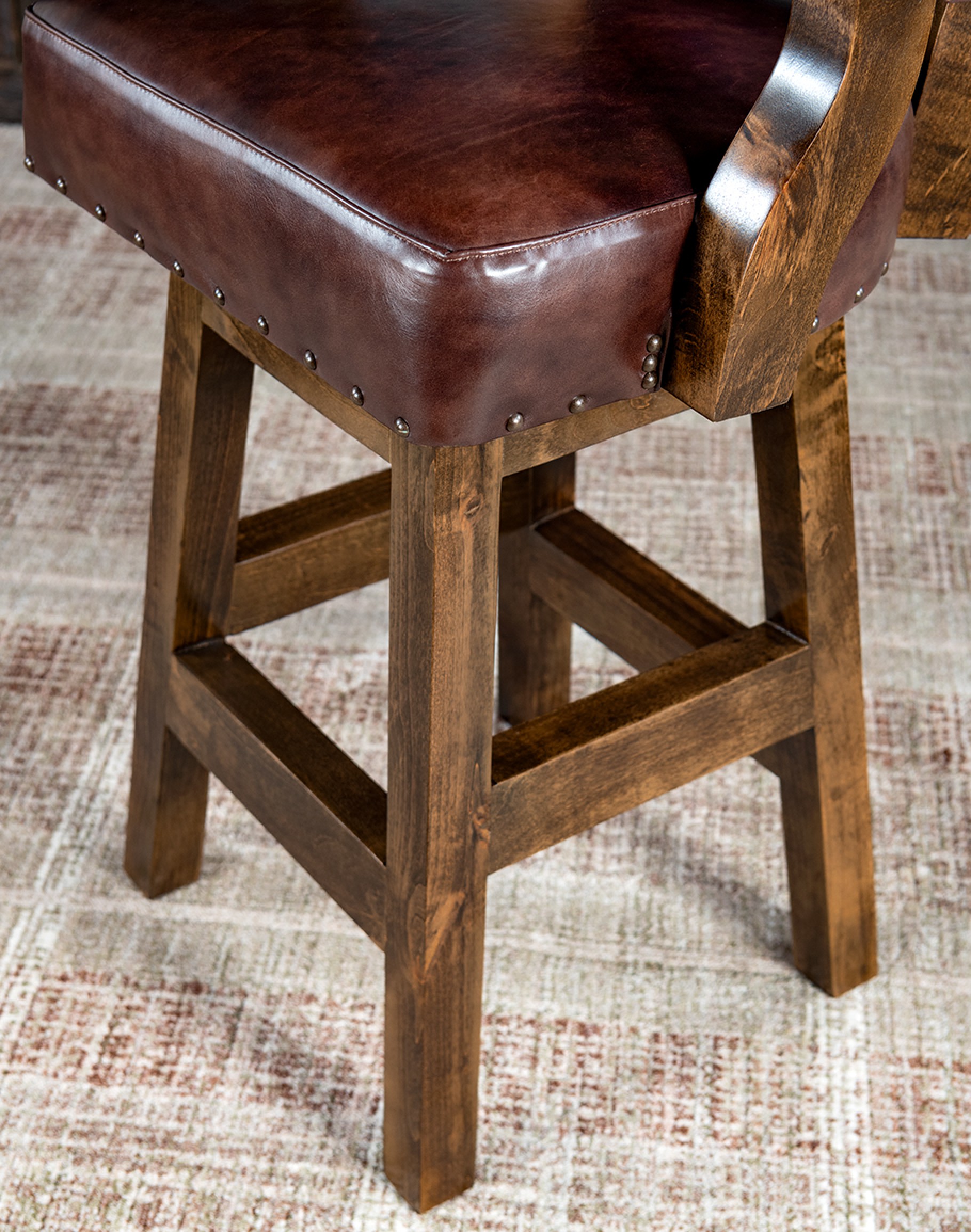 Handcrafted with meticulous attention to detail, the Chisum Chicory Barstool brings an authentic rustic charm to any dining room or living area. The luxurious top grain cowhide leather upholstery, characterized by its unique variations in shade, texture, and grain, adds a touch of sophistication. Expect natural healed marks and scars that enhance the leather's inherent beauty, making each piece one-of-a-kind.