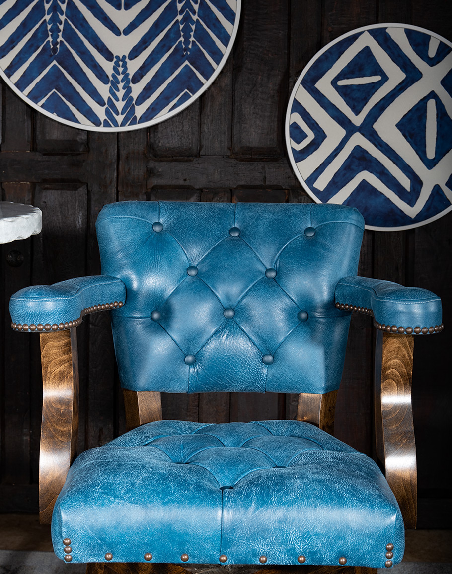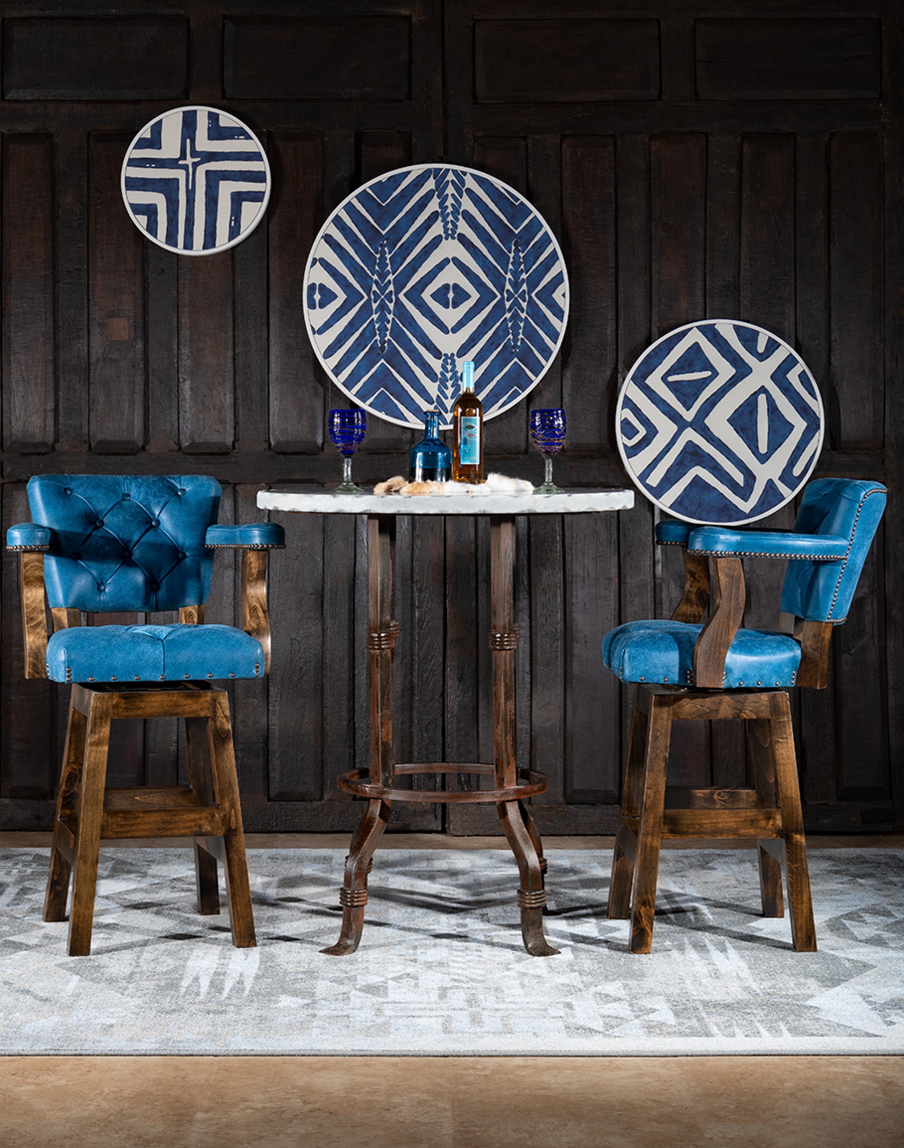 Tags: Barstools, Counter, Swivel, Arms, Leather, Tufted, Denim, Blue, Bar