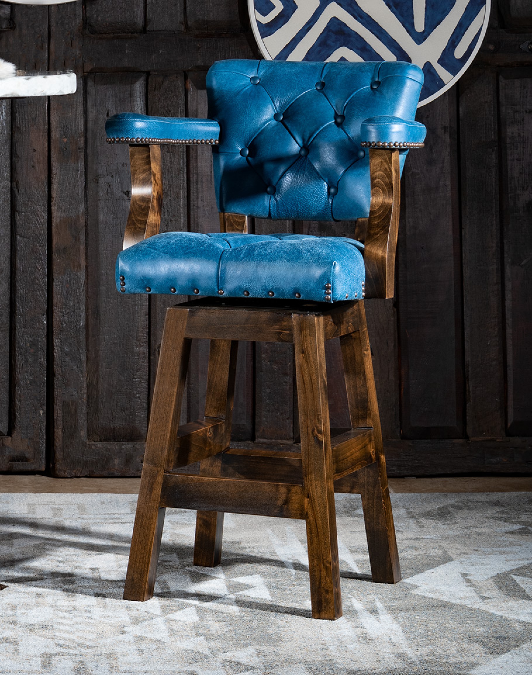 But that's not all - the Chisum Levi Barstool also features a full 360 degree swivel mechanism, allowing for easy movement and comfortable seating. Plus, with the option to choose either bar or counter height, this barstool is customizable to fit your needs. Experience the beauty, charm, and stand-alone character of our Chisum Levi Barstool and bring color and life to your home today. These handcrafted, 100% American made barstools are a must-have for any dynamic set.