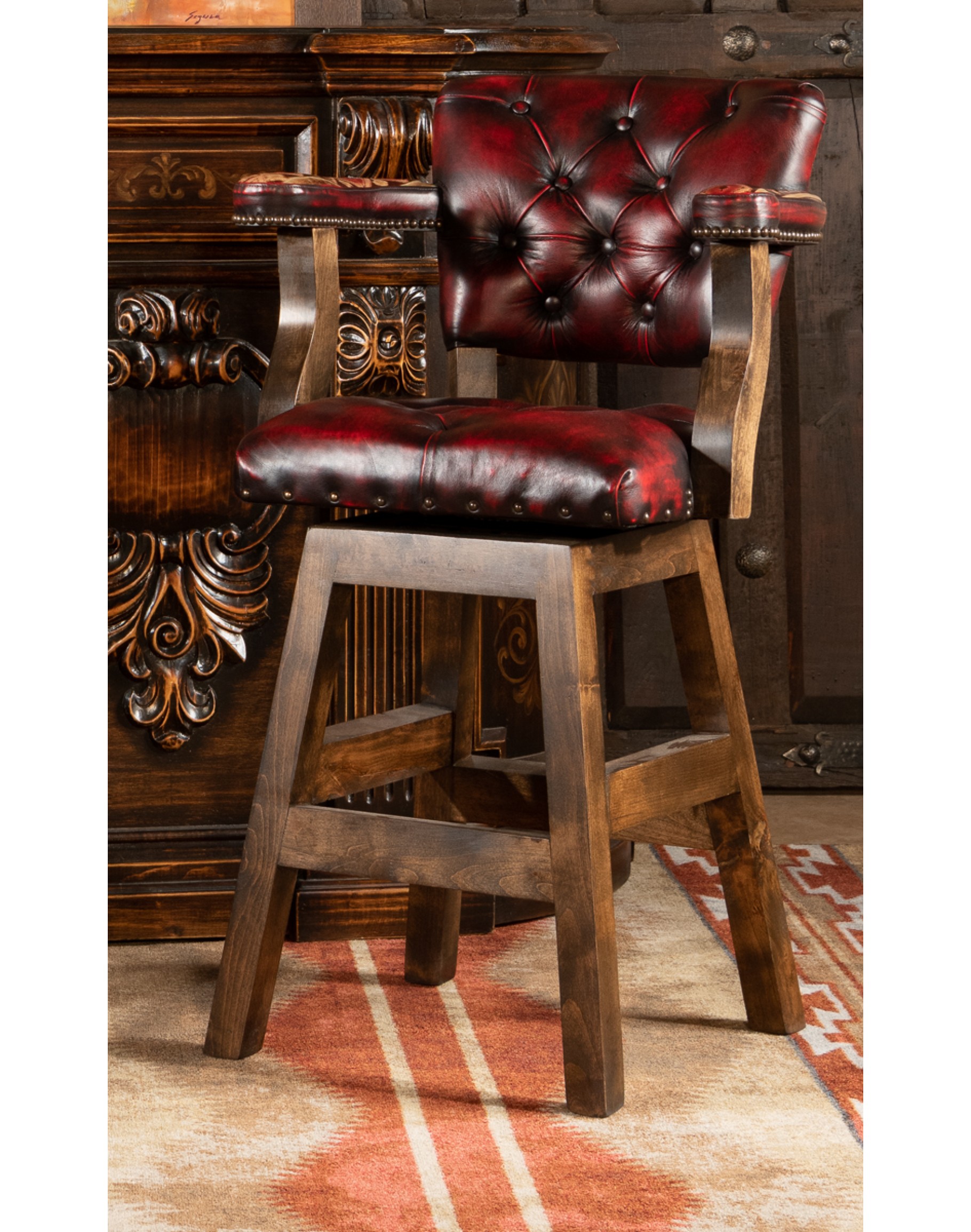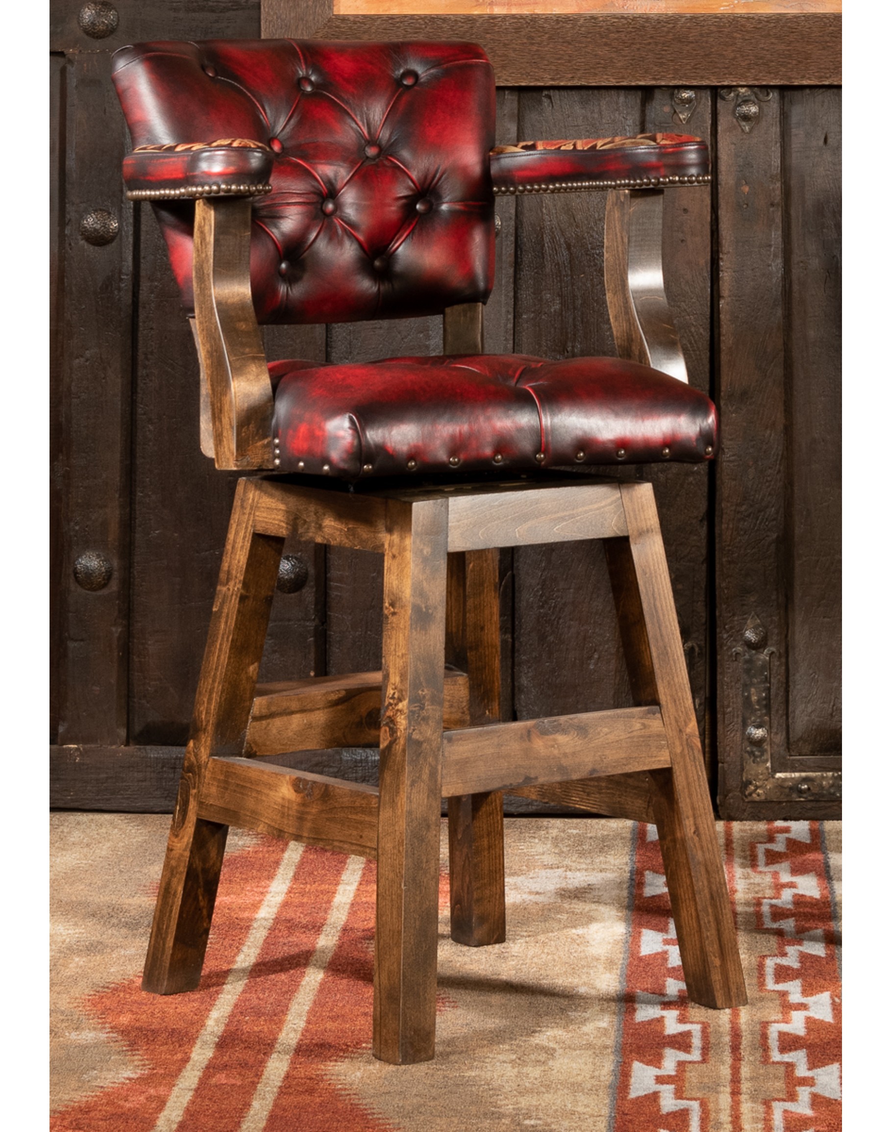 Tags: Barstools, Counter, Swivel, Arms, Leather, Tufted, Hand Burnished, Red, Navajo