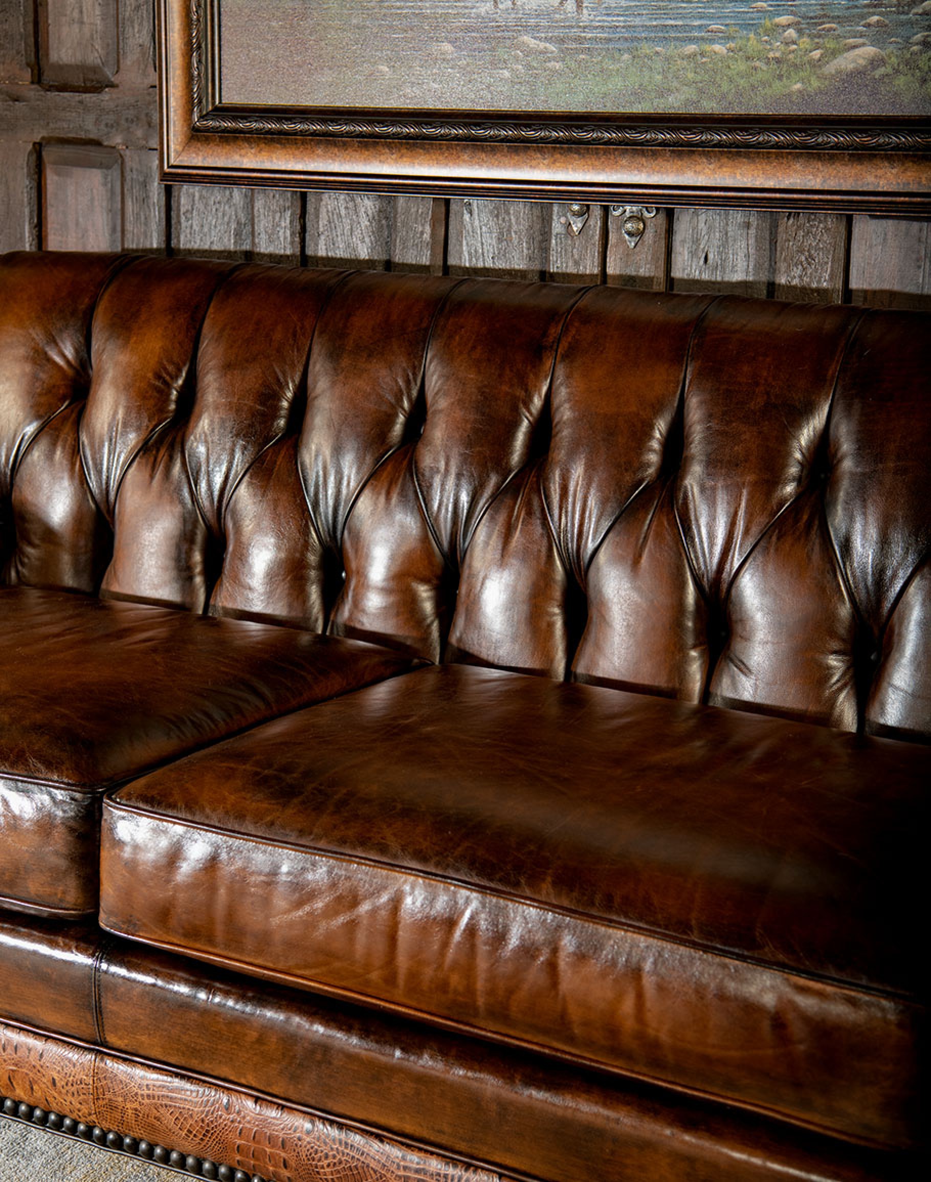 Every individual piece upholstered with Artisan Leather finishing methods is first beautifully built to the highest standards of quality. The leather is then hand-colored and aged to bespeak the loving touch of time, providing a quality antique appearance to a beautiful new piece of quality leather furniture. Every chair, sofa, or bench has its very own unique identity only these hand-crafted methods can provide, reflecting the presence of a time honored past.