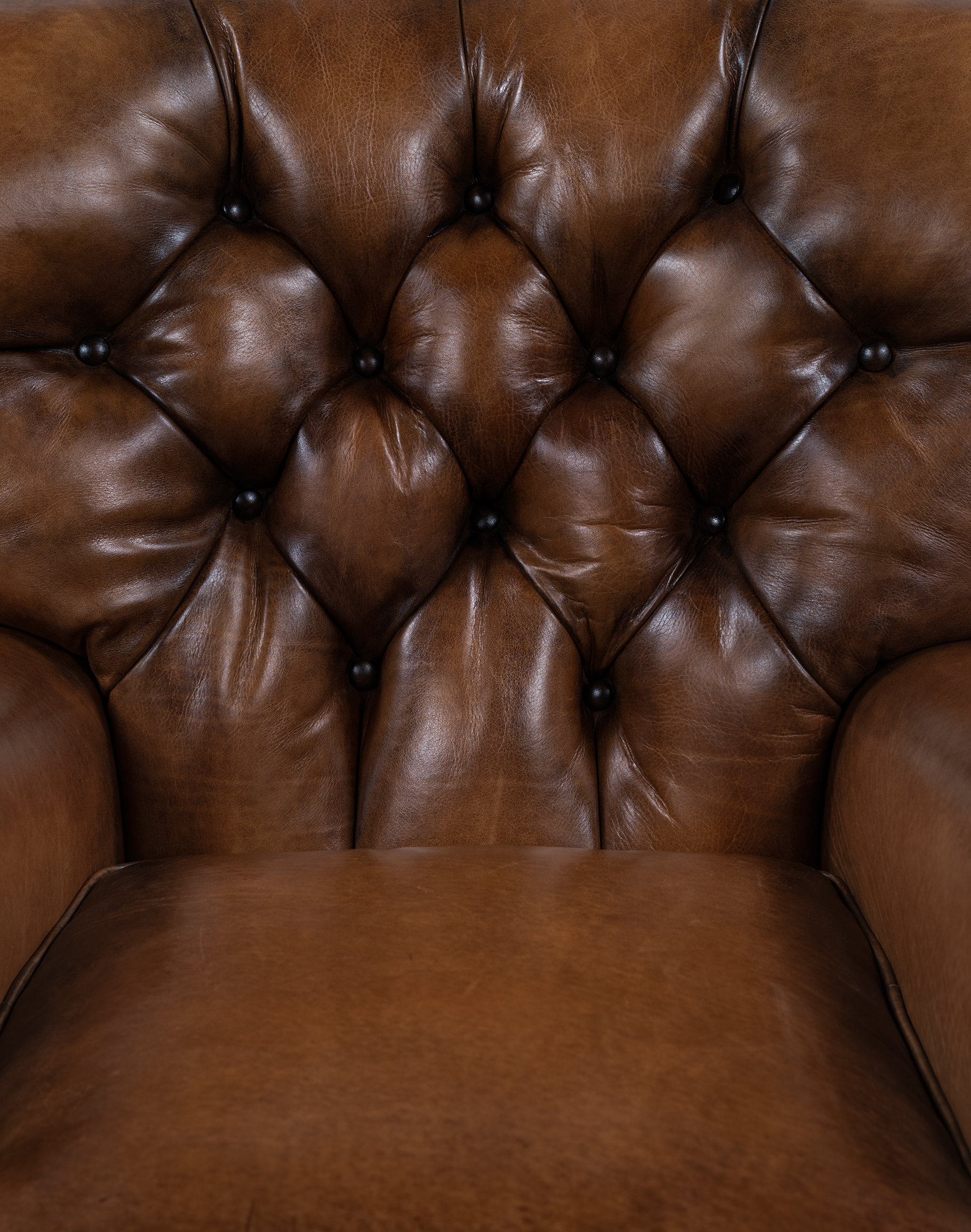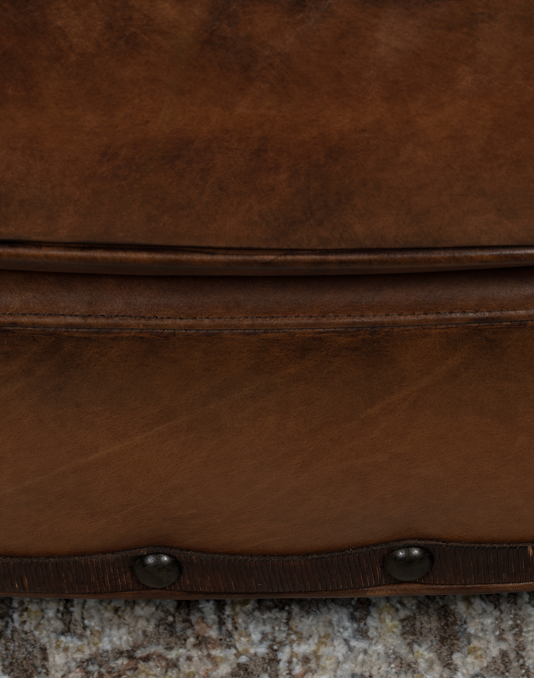 • Full-grain saddle leather upholstery with hand-burnished tonal variation
