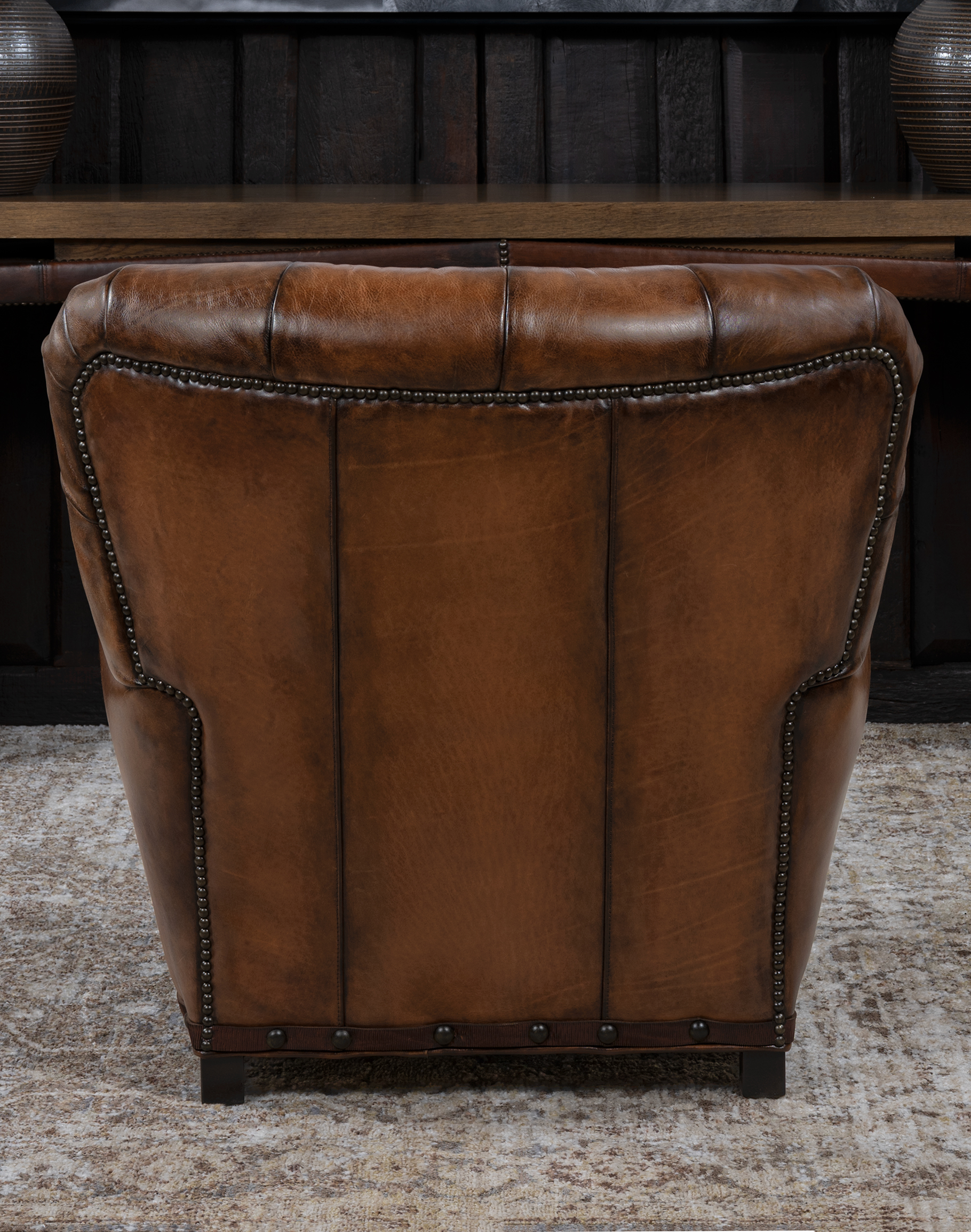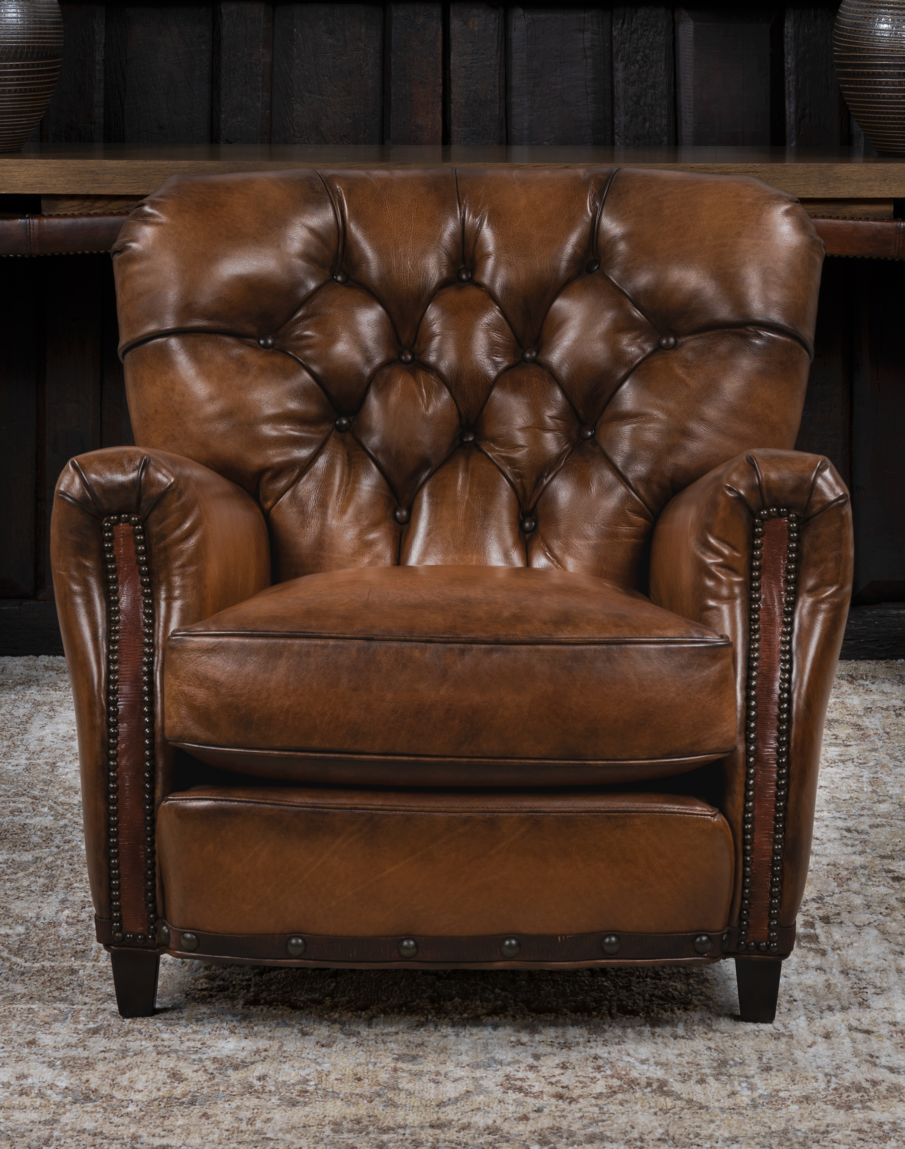 The McQueen Saddle Leather Chair is a commanding centerpiece crafted for those who appreciate rugged elegance and enduring quality. 100% American made..
