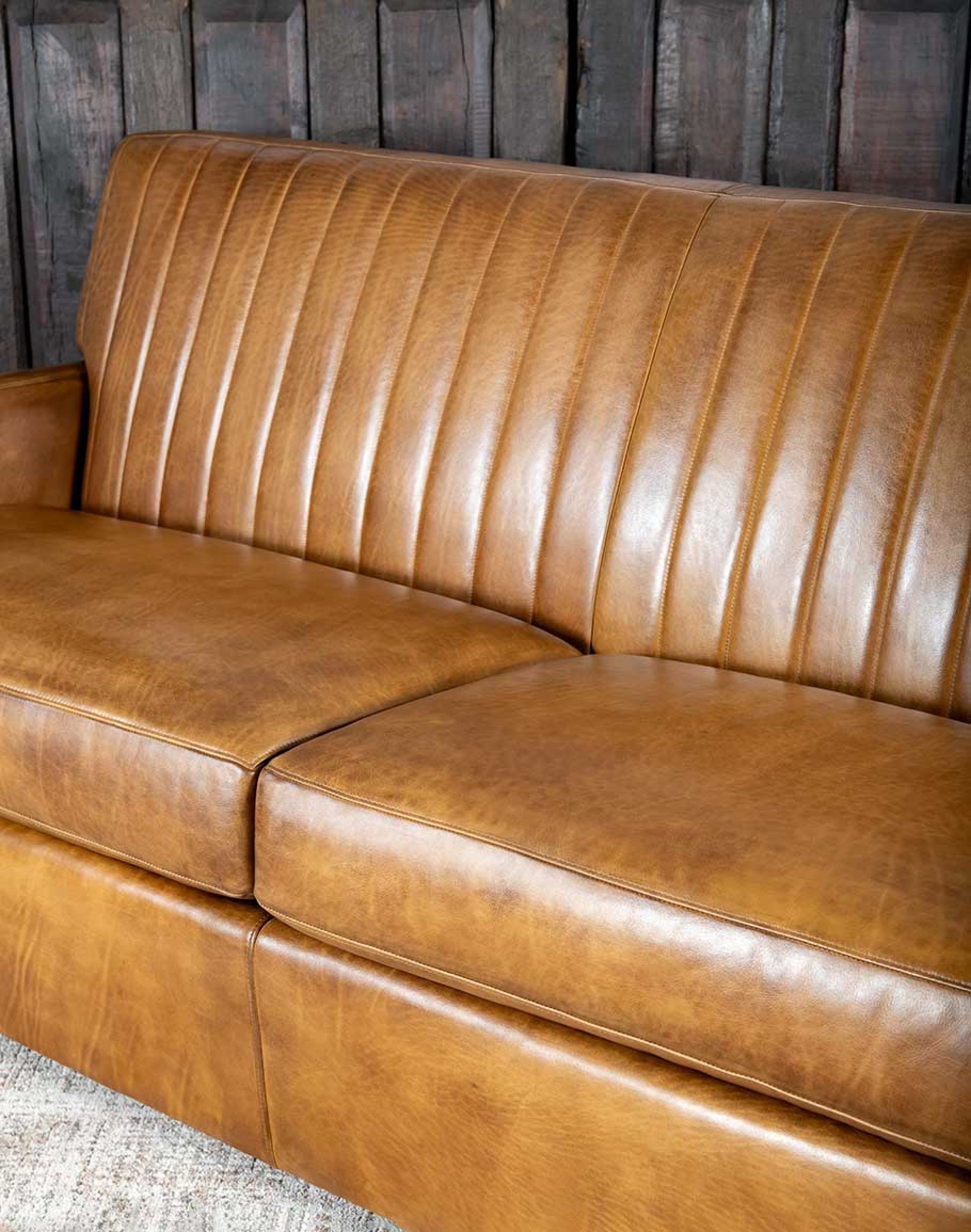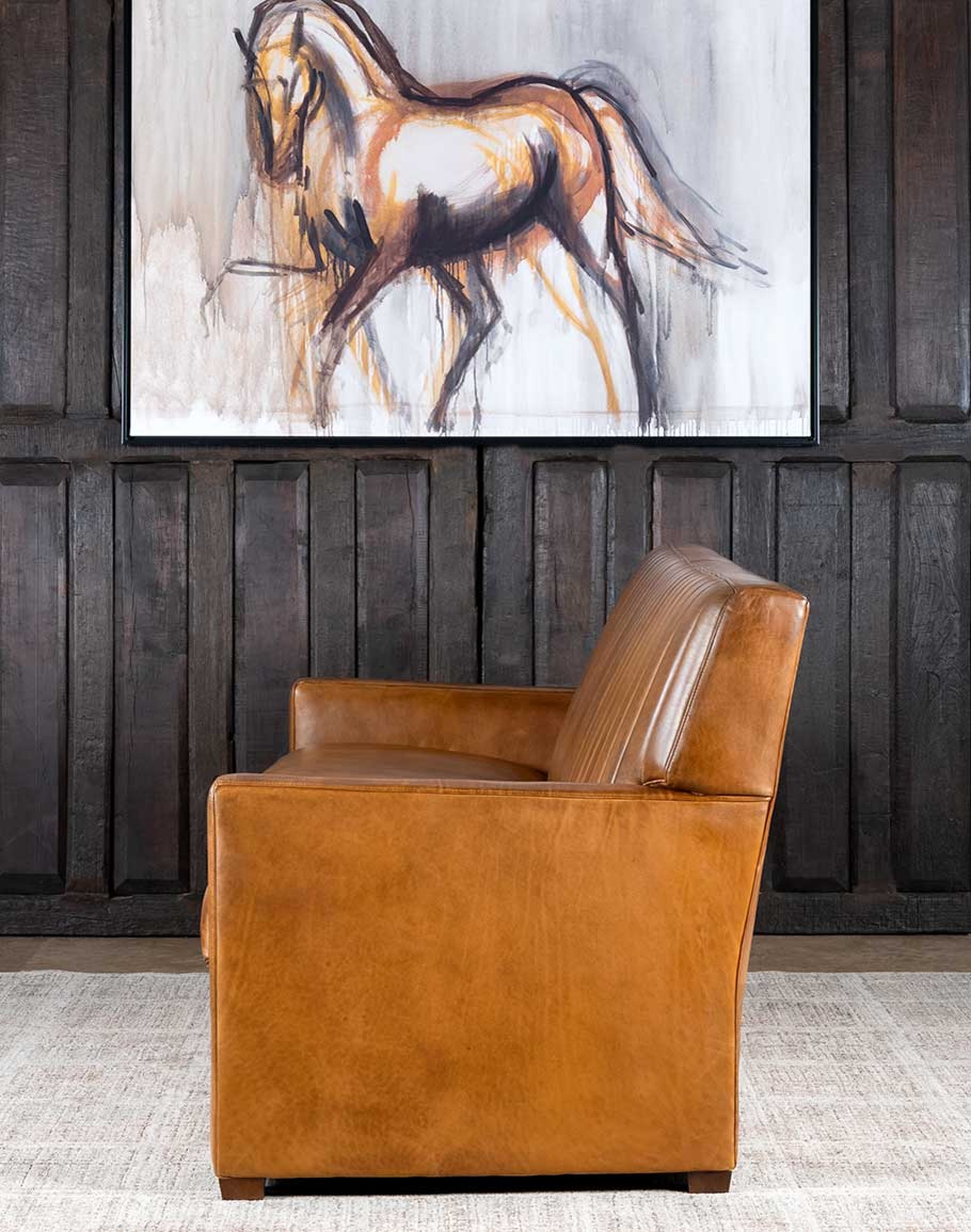 Introducing the Coyote Saddle Leather Sofa—an exquisite blend of superior craftsmanship and versatile design, perfect for any ranch-inspired interior. Proudly 100% American-made, this sofa embodies the highest standards of quality and artistry. Crafted from luxurious full-grain leather, it features meticulous hand-burnished details that enhance its rich saddle tan hue.
