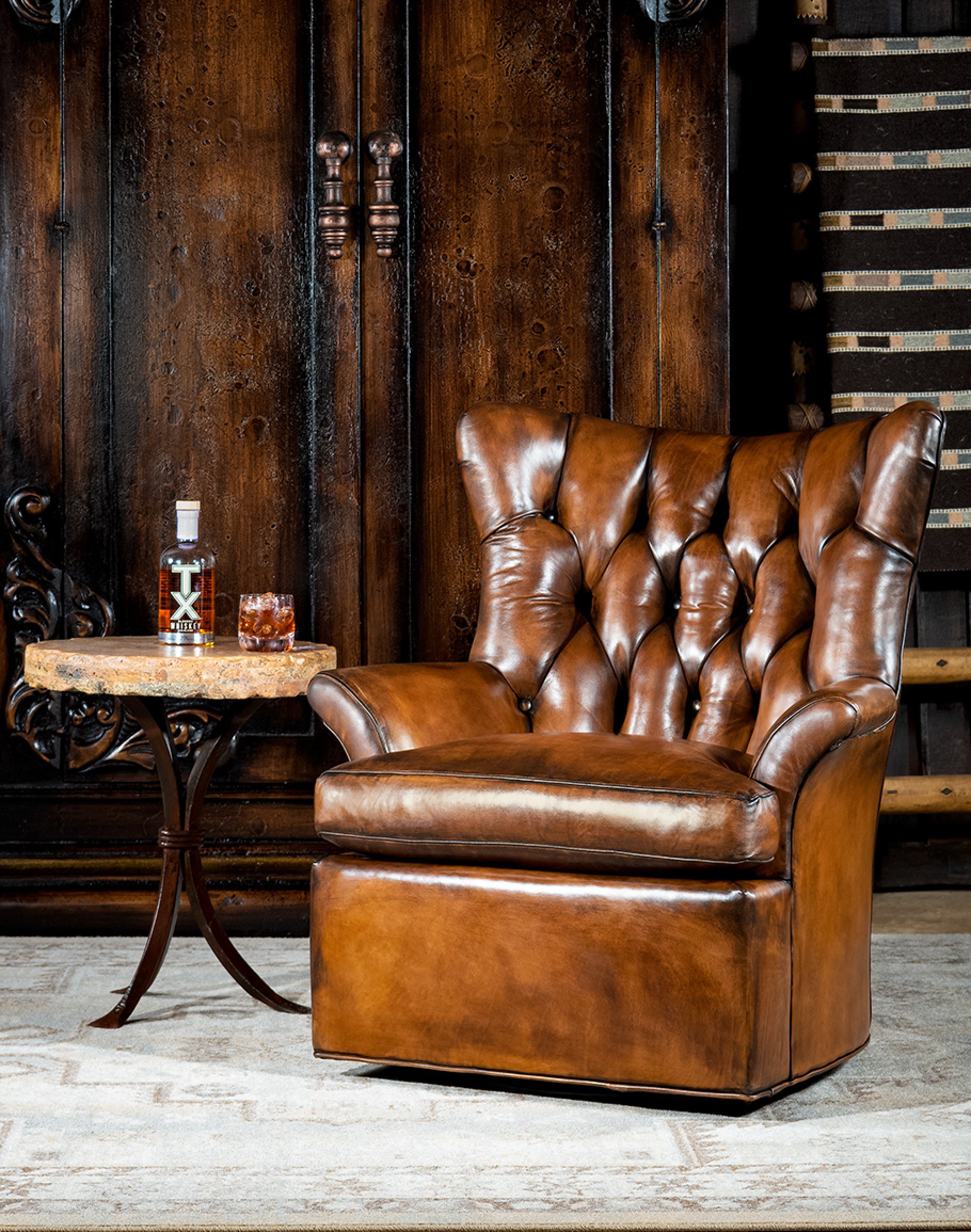 Our Carlsbad Swivel Chair is one of the most stunning examples of a rustic, elegant, southwestern swivel chair design and a star in the Desert Ranch c..