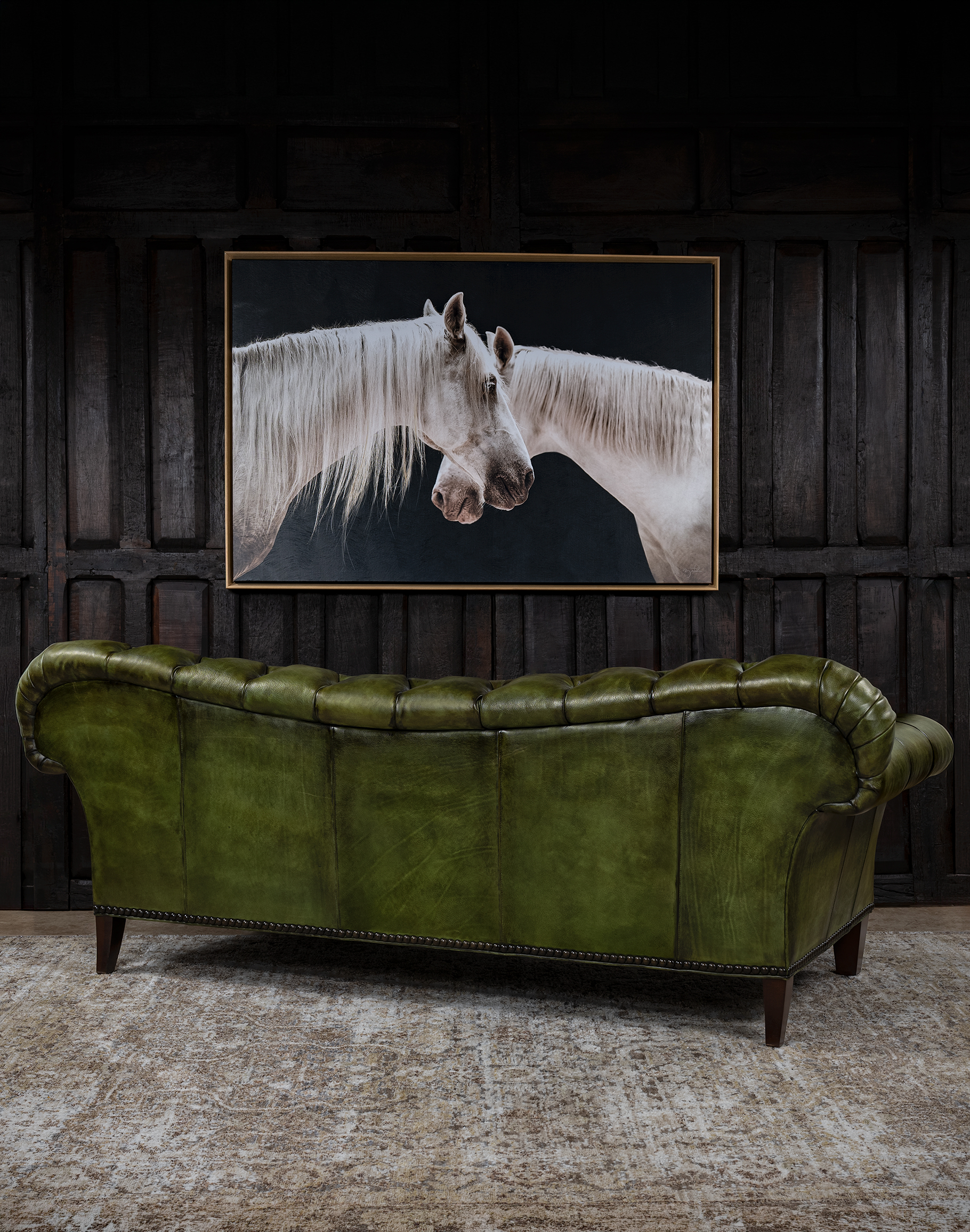 The Audrey Olive Tufted Leather Settee is a refined statement of timeless craftsmanship and Western-inspired luxury. Handcrafted in the USA to the hig..