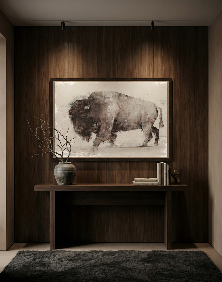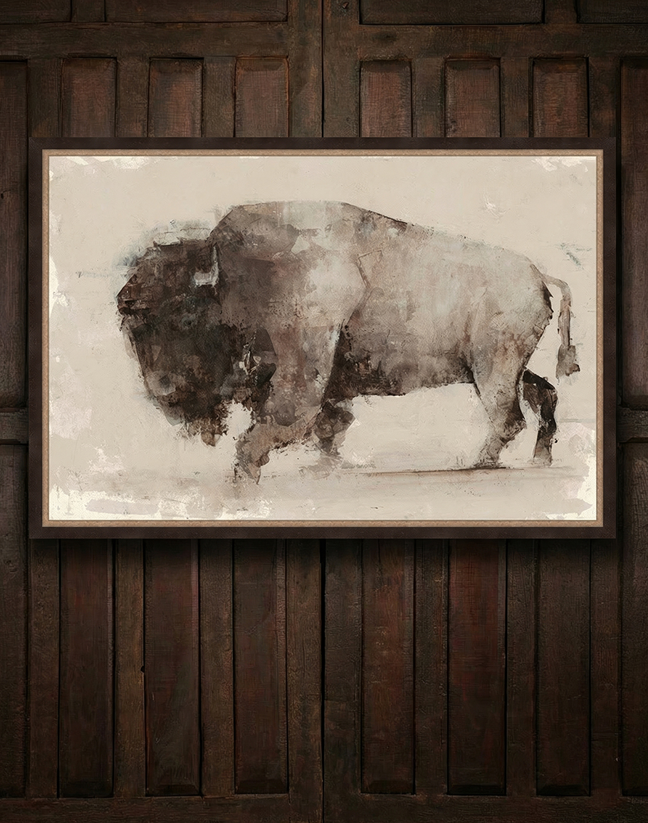 Bring the quiet power of the American West into your home with this framed Western bison wall art. Rendered in an expressive, painterly style, the bison’s weathered silhouette feels both timeless and modern—an instant focal point that adds depth, story, and soul to any room.