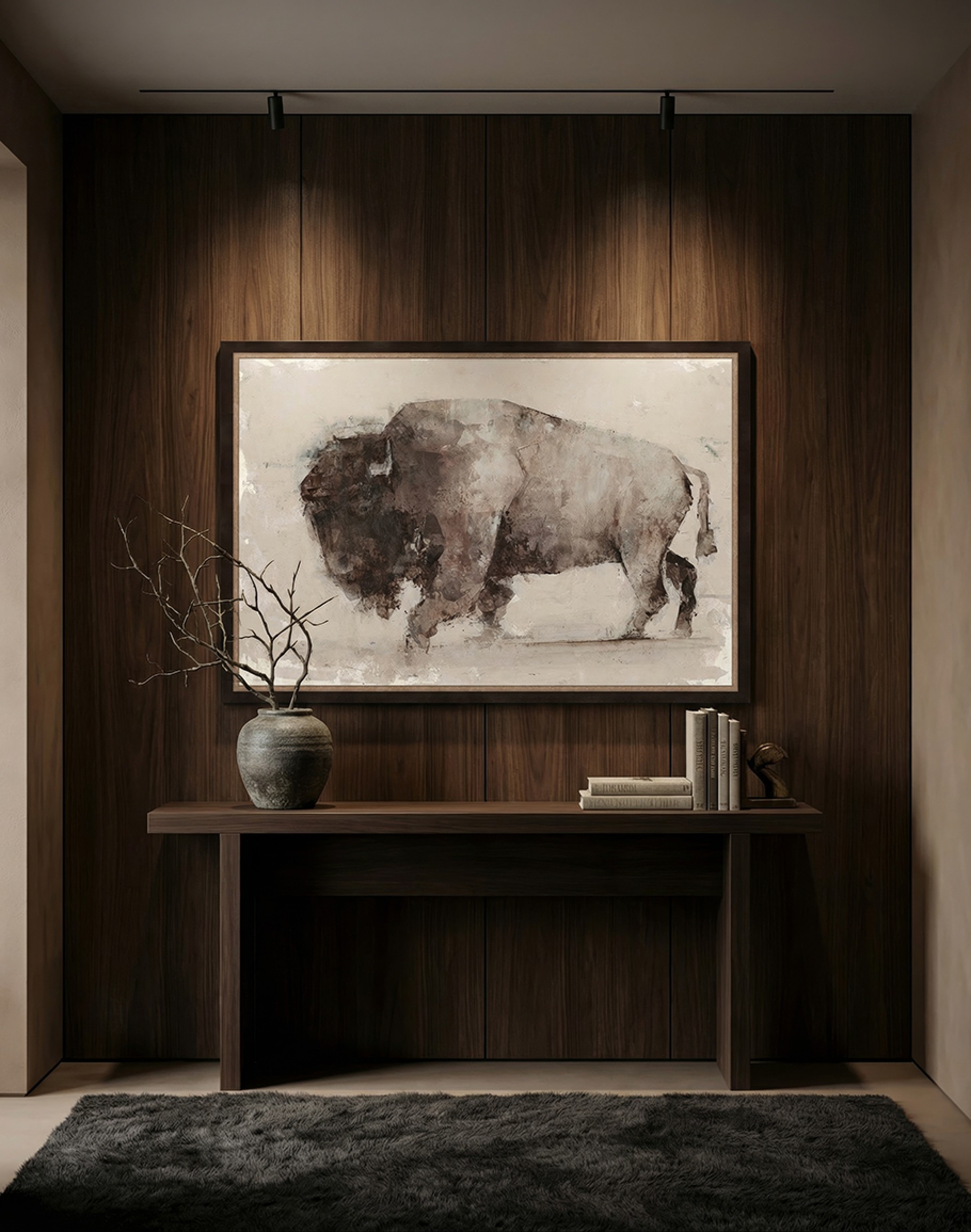Hang it above a fireplace, sofa, or console to anchor your space with understated drama and authentic western character.