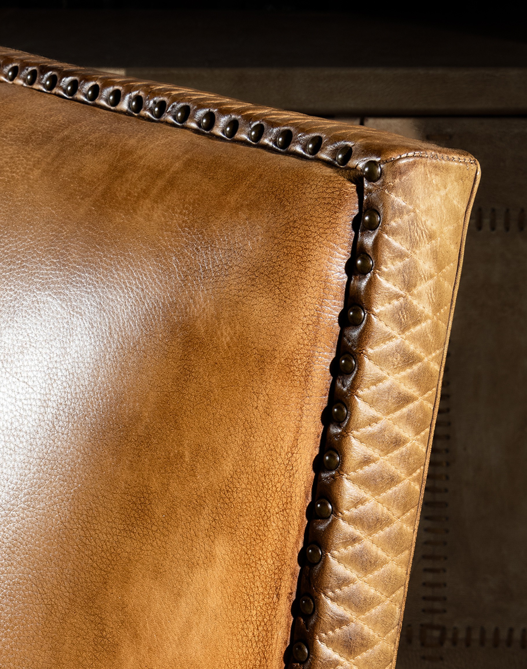 Experience luxury with our Desert Dune Leather Recliner, a standout piece from Adobe Interiors' Desert Ranch Collection. This exceptional recliner proudly made in America, is a testament to our commitment to quality and craftsmanship. Its full-grain leather upholstery, hand-burnished to perfection, reveals intricate details that are a feast for the eyes. The inviting saddle tan color adds a warm touch to any living space, making it a must-have for those seeking luxurious furniture.