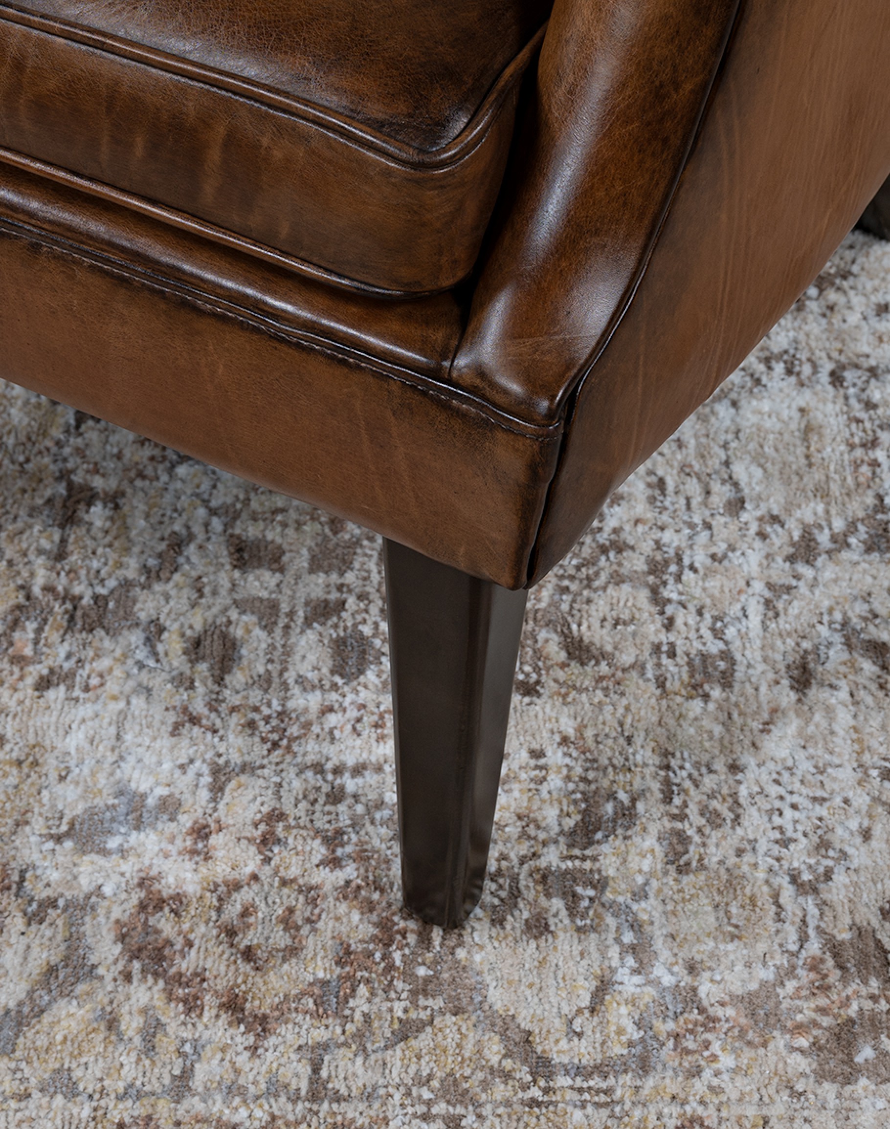 Leather Description: This is a full grain aniline leather tanned in a historic leather producing region of Italy using English hides. The century old tannery prepares this leather article by applying a hot wax, then turning the hides in old wooden tanning drums overnight to soften the natural fibers and impart it with a remarkable suppleness. The leather is then upholstered in its "crust form" on the furniture in North Carolina, After the furniture is made our leather artisans apply a multi step hand rubbed Patina using the same waxes and pigments used in Italy. Performing this process on the actual finished piece allows our artisans to develop a unique Patina, composition, and overall essence that creates a piece of furniture that has uniqueness, character and style that matches the individual who's selecting it. This leather imparts the feeling of a softer, well broken in leather one might find on a decades old chair discovered in a French country estate or the Parisian flea market. The leather is brand new from our Artisans hands... without the aging issues that sometimes come from the hands of time. Truly a unique, hand-made article in an era when only companies committed to the highest standards lavish this sort of attention and time to unique American made furniture.