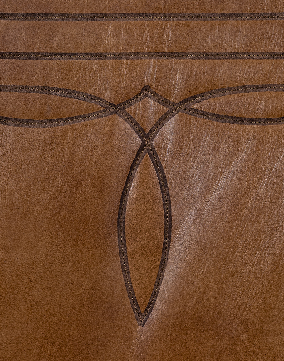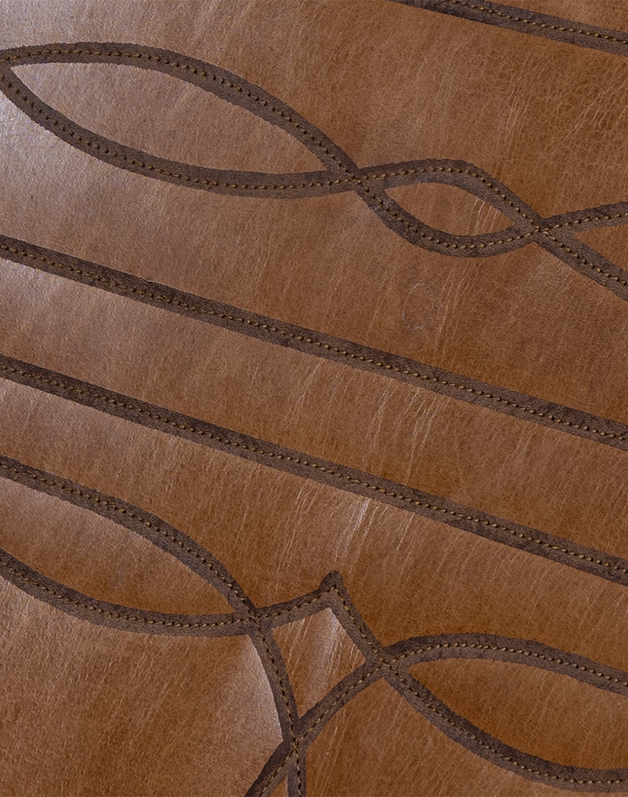 Introducing the Downtown Cowboy Chair—the perfect addition to your home decor! Crafted with expert precision and attention to detail, this 100% American-made leather chair boasts an 8-way hand-tied construction for unparalleled durability and comfort. The Downtown Cowboy Chair is a small-scale accent chair with a retro-style frame that exudes classic elegance. It features a warm brown, hand-burnished leather that will complement any interior design scheme. Adding a touch of Western charm and staring in our Classic Ranch collection, the inside seat back is adorned with a cowboy boot stitch emblem that will catch the eye of all who enter your space.
