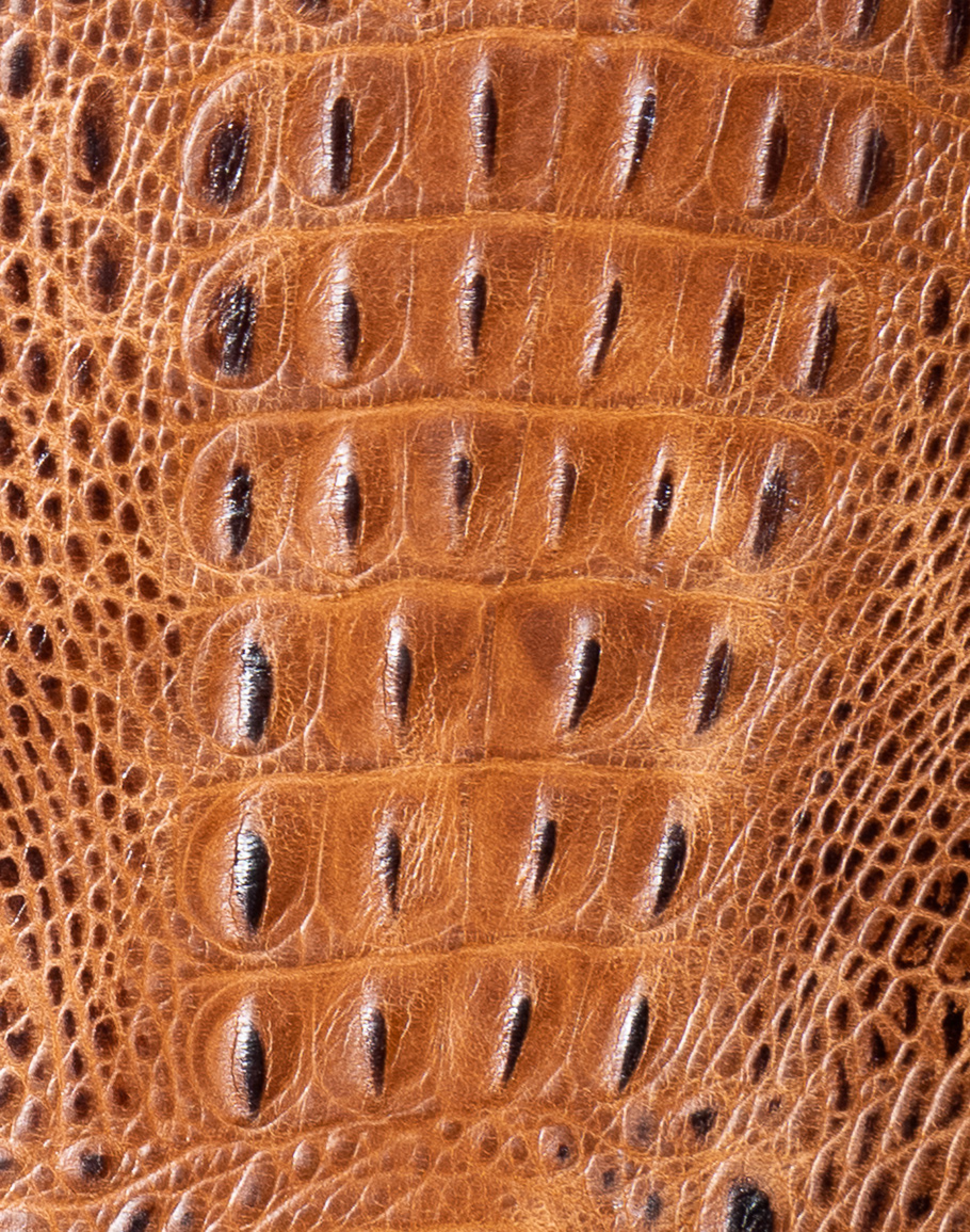 Embossed Leather Description: A leather used to accent many of today's home interiors. The leather hide is first embossed with a large crocodile grain and then colored by applying two base color coats of micro pigments. The leather is then wiped-off to give it a contrast of colors utilizing the base color combination. This color contrast is further accented by two additional top coat colors that are wiped-on by hand to give the leather a beautiful antique look.