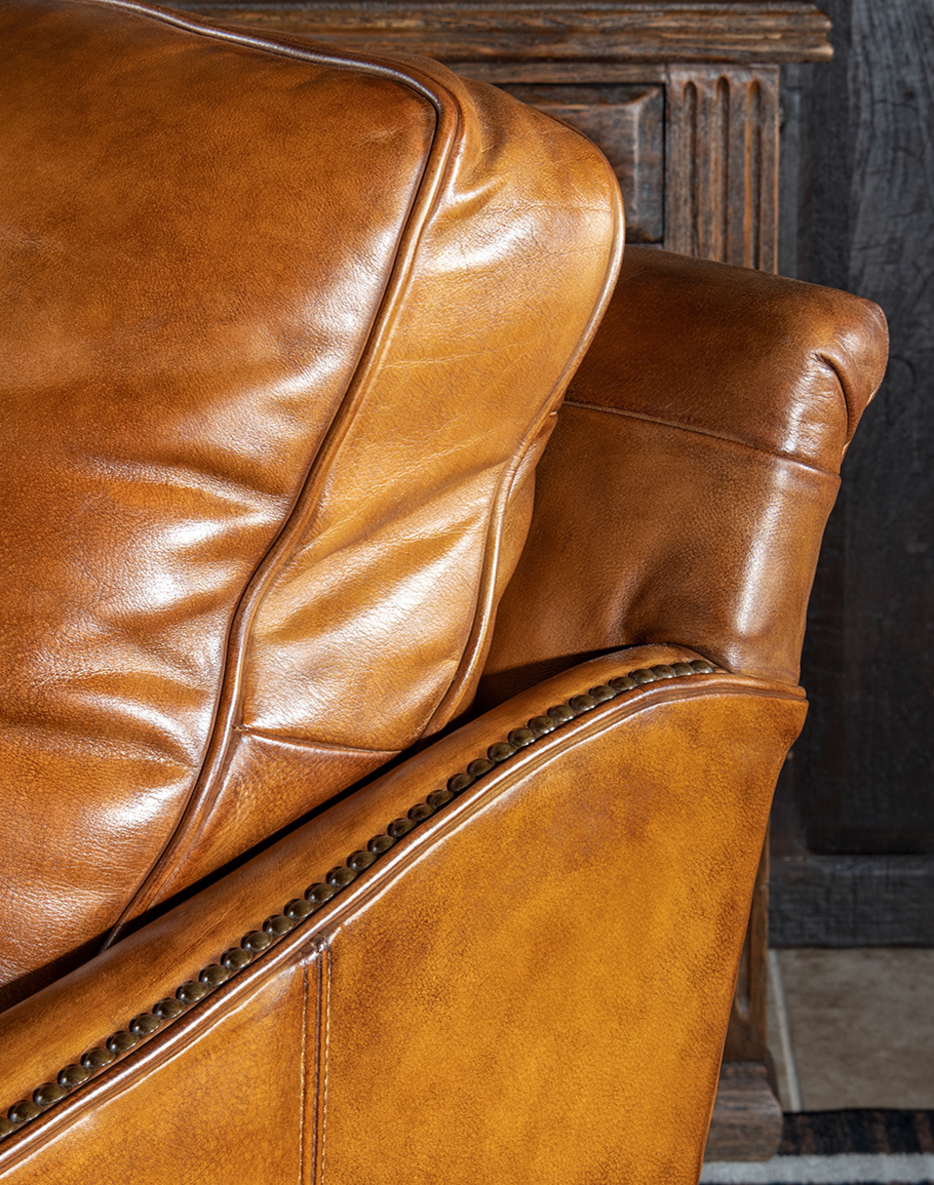 Every individual piece upholstered with Artisan Leather finishing methods is first beautifully built to the highest standards of quality. The leather is then hand-colored and aged to bespeak the loving touch of time, providing a quality antique appearance to a beautiful new piece of quality leather furniture. Every chair, sofa, or bench has its very own unique identity only these hand-crafted methods can provide, reflecting the presence of a time honored past.