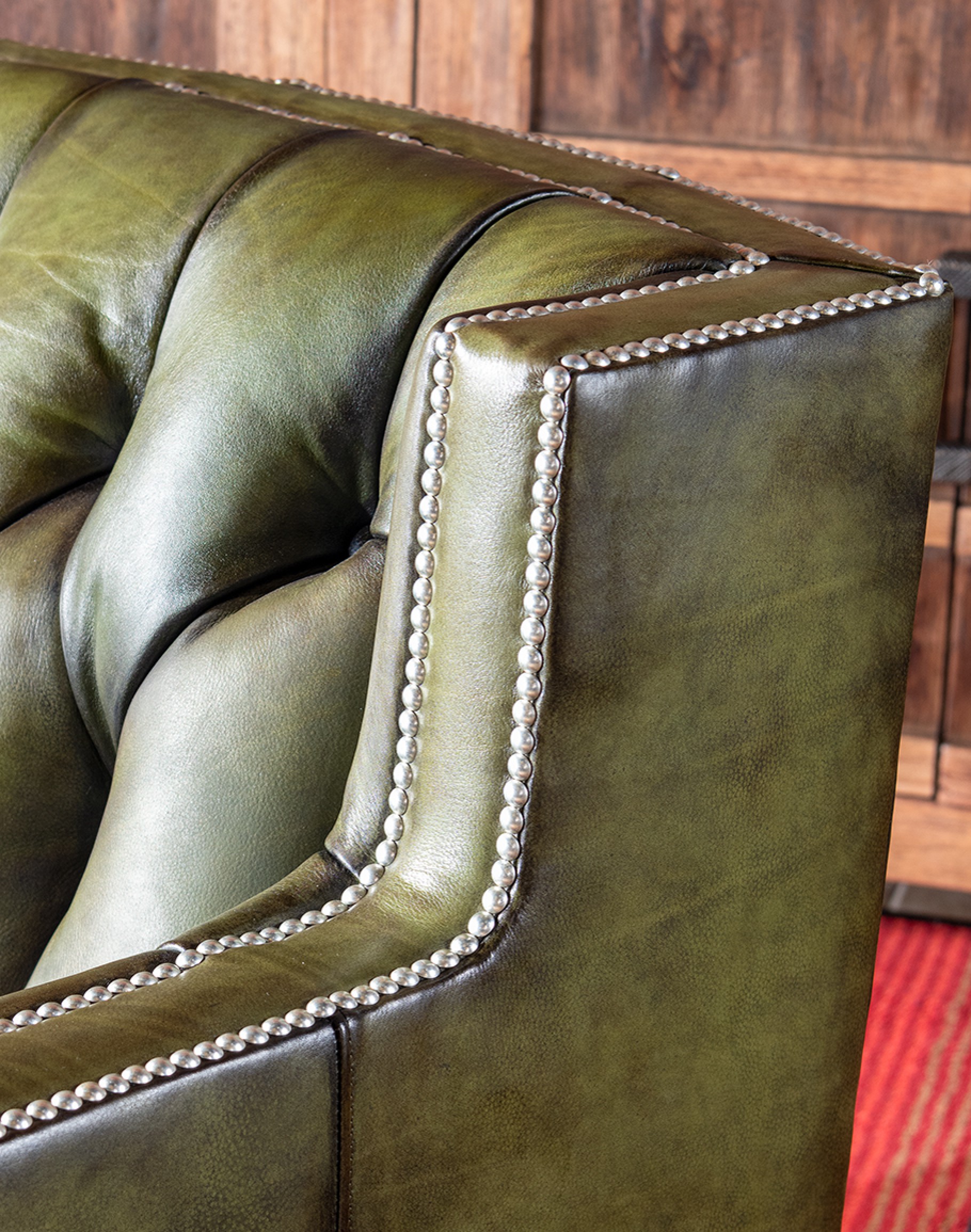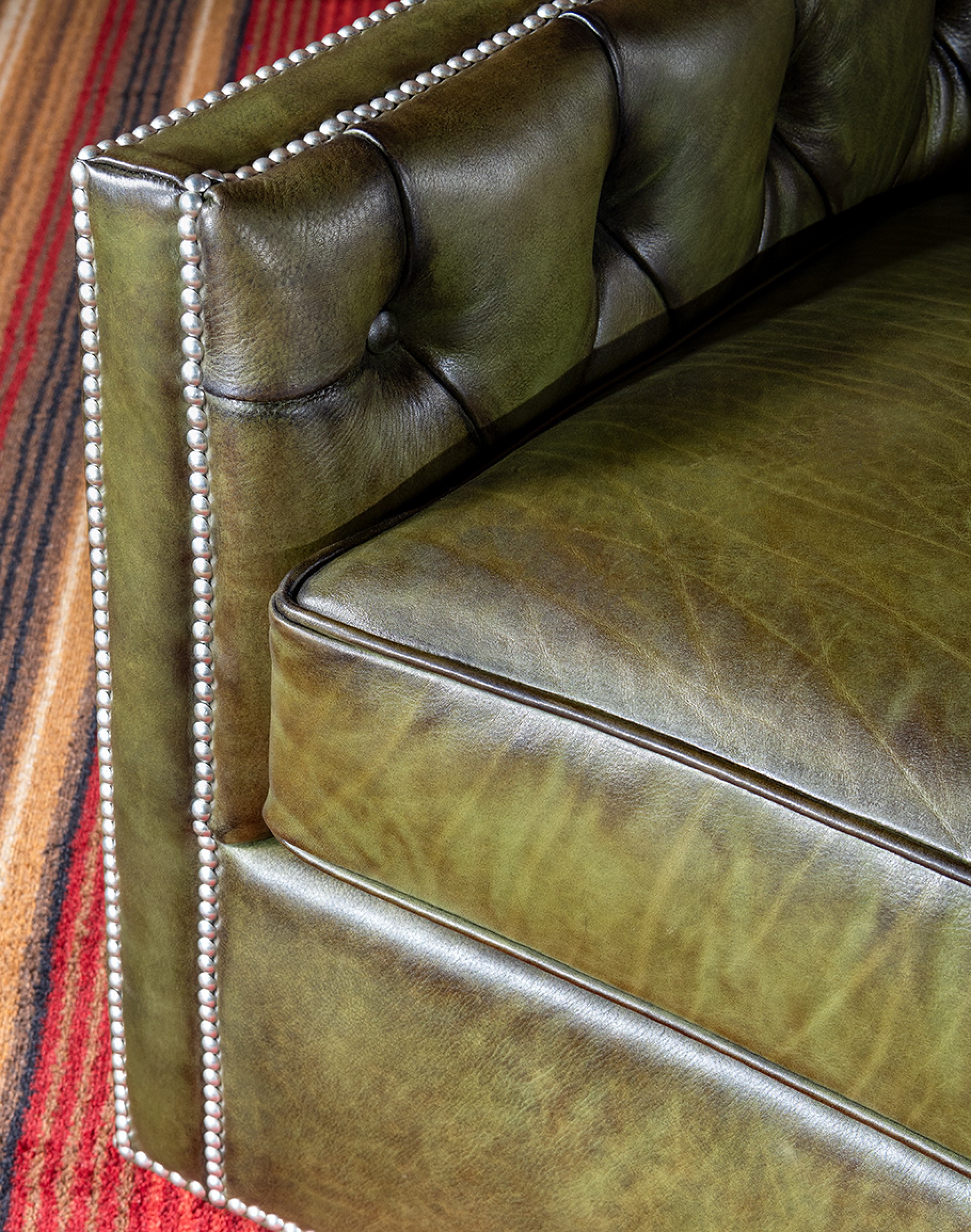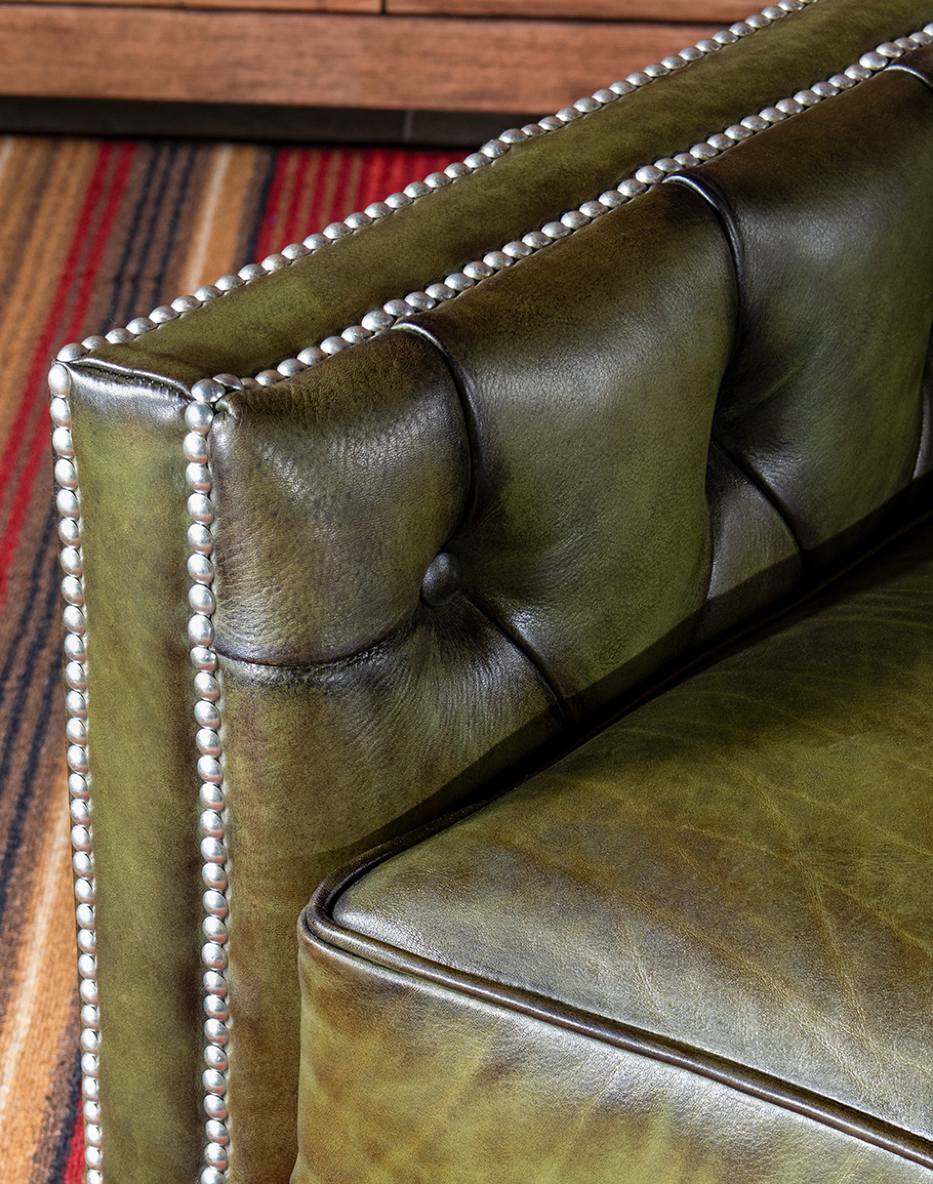 The Audrey Olive Tufted Leather Settee is a refined statement of timeless craftsmanship and Western-inspired luxury. Handcrafted in the USA to the hig..