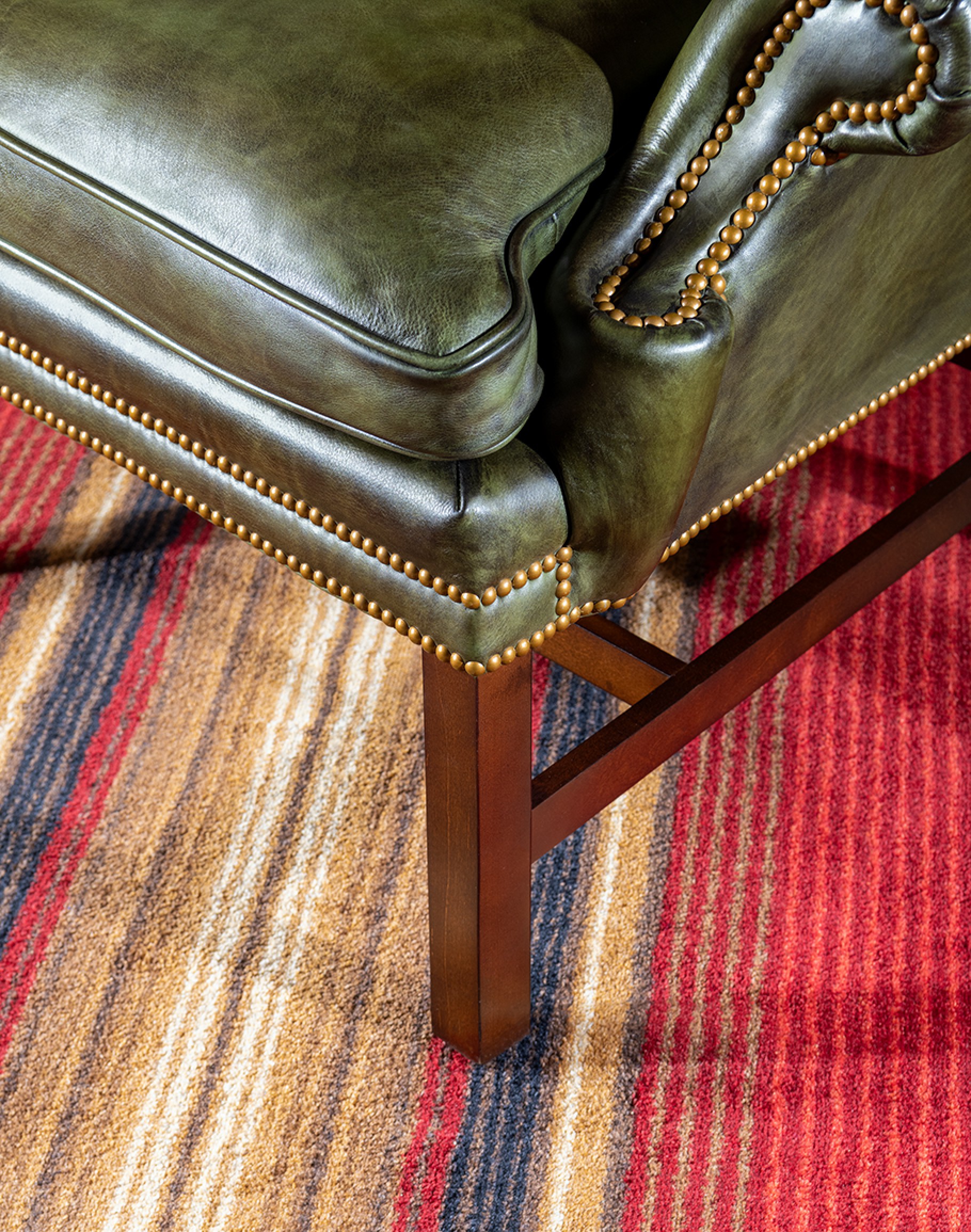 Leather Description: This is a full grain aniline leather tanned in a historic leather producing region of Italy using English hides. The century old tannery prepares this leather article by applying a hot wax, then turning the hides in old wooden tanning drums overnight to soften the natural fibers and impart it with a remarkable suppleness. The leather is then upholstered in its "crust form" on the furniture in North Carolina, After the furniture is made our leather artisans apply a multi step hand rubbed Patina using the same waxes and pigments used in Italy. Performing this process on the actual finished piece allows our artisans to develop a unique Patina, composition, and overall essence that creates a piece of furniture that has uniqueness, character and style that matches the individual who's selecting it. This leather imparts the feeling of a softer, well broken in leather one might find on a decades old chair discovered in a French country estate or the Parisian flea market. The leather is brand new from our Artisans hands... without the aging issues that sometimes come from the hands of time. Truly a unique, hand-made article in an era when only companies committed to the highest standards lavish this sort of attention and time to unique American made furniture.
