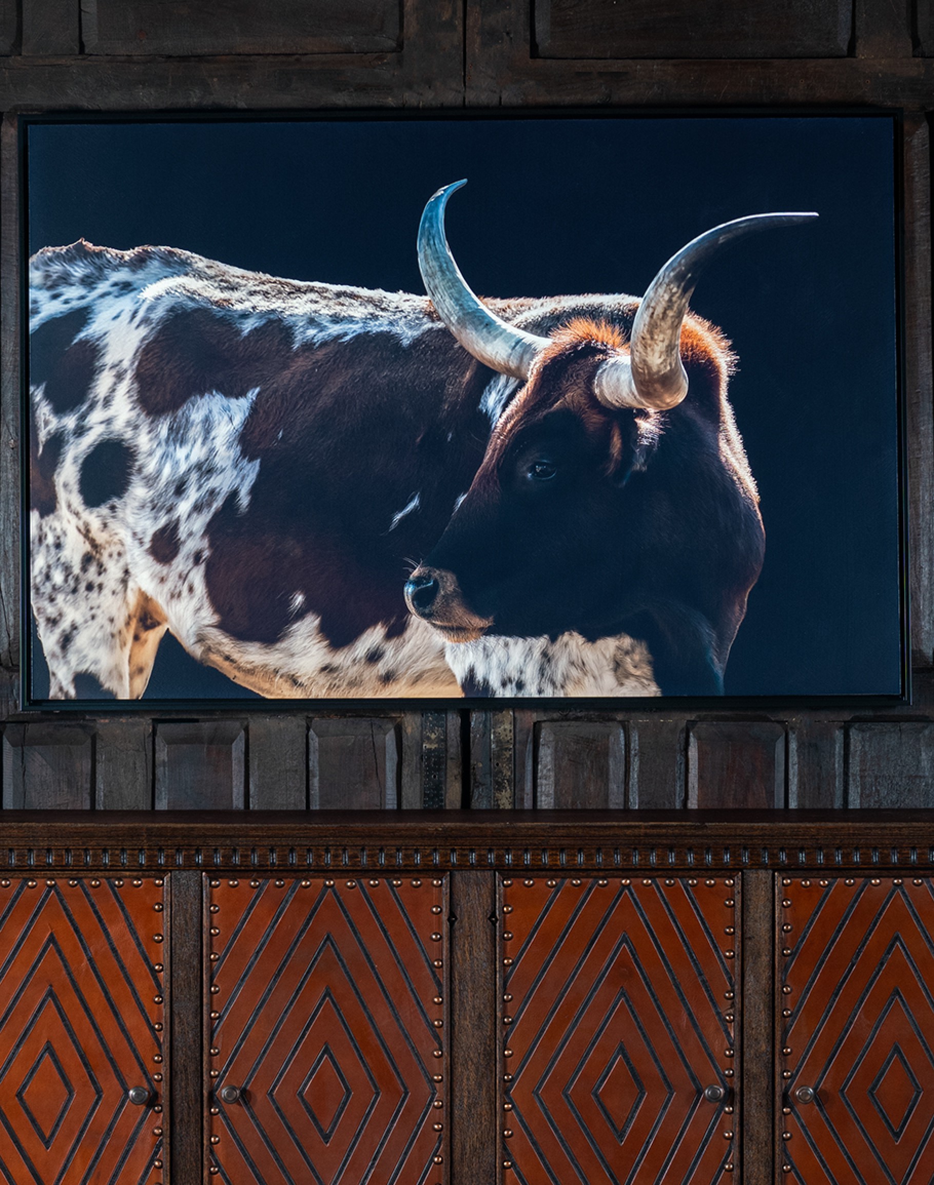 Every detail of the Gertie Longhorn Framed Art speaks of high quality and craftsmanship. The mat black wood frame provides a sleek, modern contrast to the rustic longhorn, ensuring it becomes a focal point in any room.