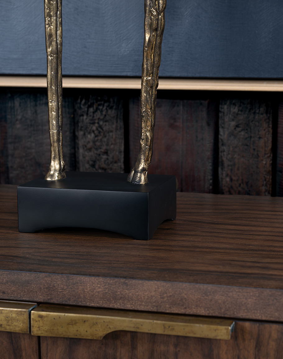 Bring sculptural, equestrian elegance to your space with the Golden Horse Table Lamp, crafted in a textured composite and finished in a luminous Antique Gold with antique brass plating that beautifully catches and reflects light. Standing on a sleek black painted base, this statement piece is topped with an off-white rectangular shade with a chic circular finial—perfect for animal lovers, Western-inspired interiors, or refined rustic rooms.