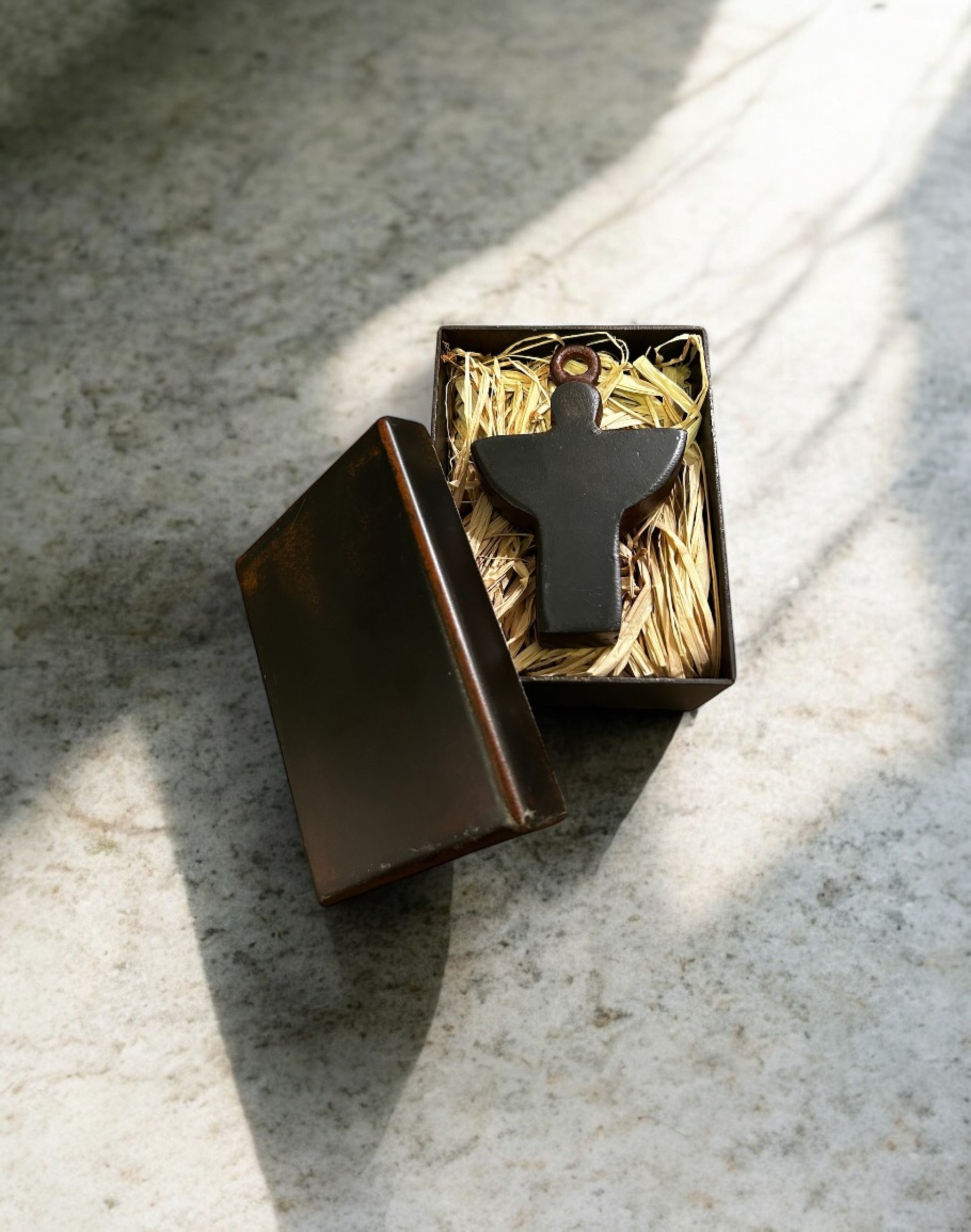 Classic boxed blessing with angel, iron box, nail, and card. A perfect housewarming or engagement gift to bless the home.
