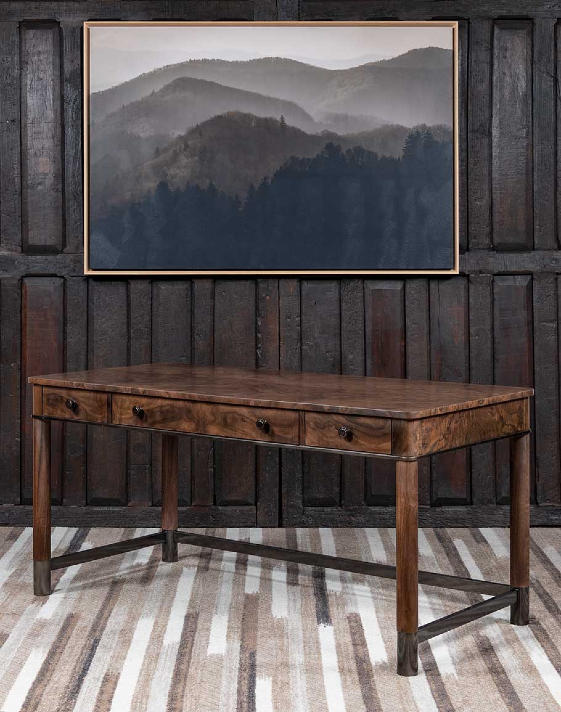 As part of the Refined Ranch Collection, this desk brings understated luxury and versatility to any home office or study. It seamlessly blends rustic charm with modern design, making it a perfect fit for those who value both style and functionality. From the intricate wood grain to the robust construction, every detail reflects the highest standards of American furniture craftsmanship.