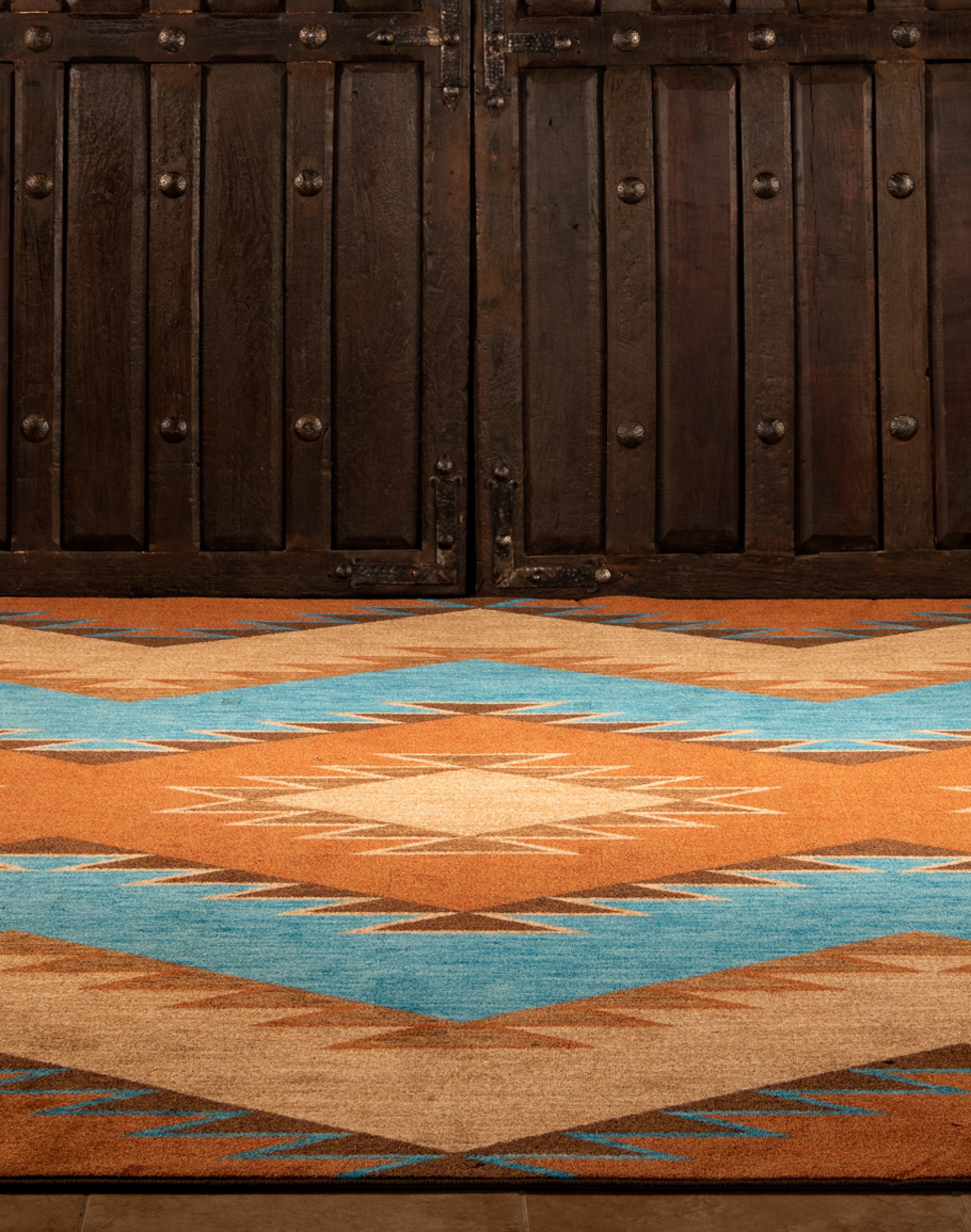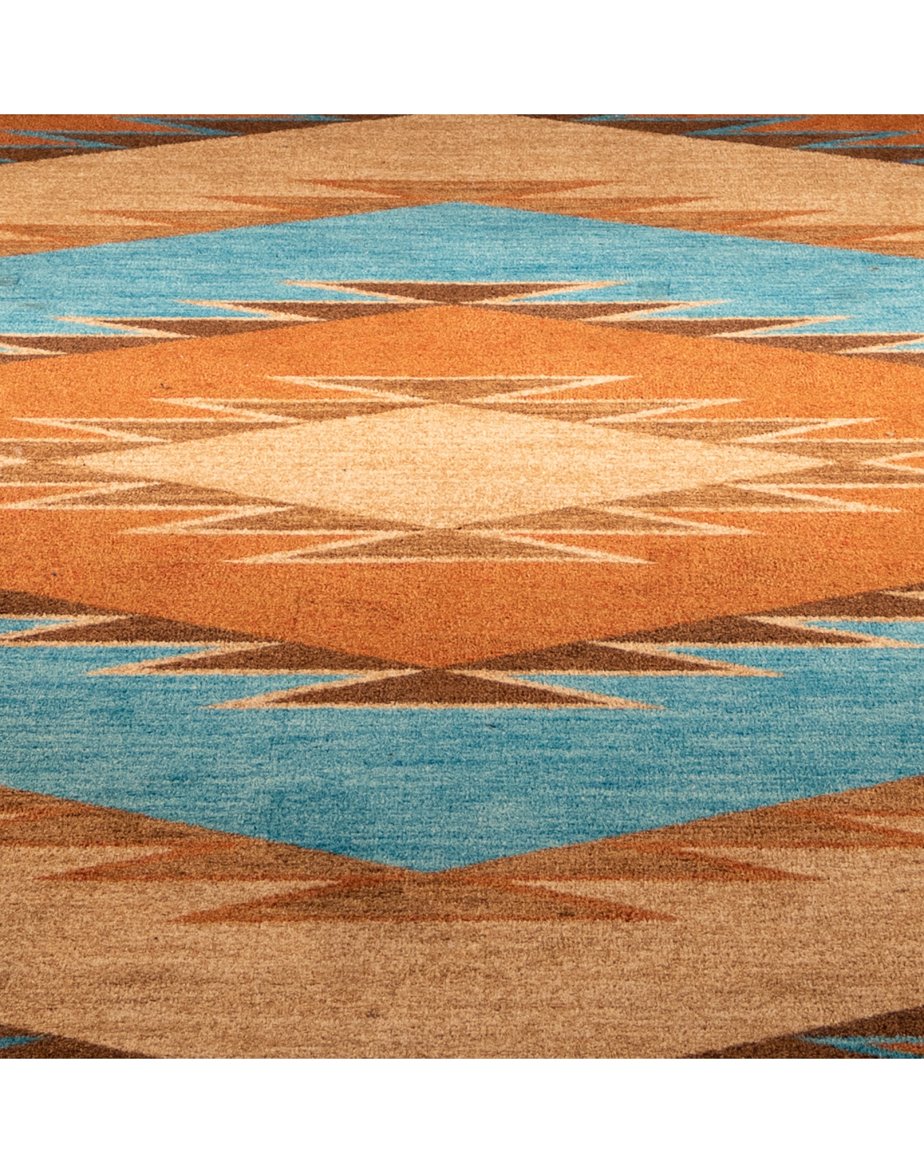 Introducing the Heritage Rust Rug, a stunning addition to any room. Available in multiple sizes and made to order, this rug is crafted in the U.S.A from premium EnduraStran Nylon for maximum durability and longevity. The rug's diamond-shaped pattern, in beautiful rust, light brown, and turquoise color tones, creates a unique and striking visual effect. Whether you're looking to complement existing decor or make a bold statement, the Heritage Rust Rug is the perfect choice. Order yours today to elevate your space with this gorgeous and customizable piece. Commercial grade rated and easy clean with water.