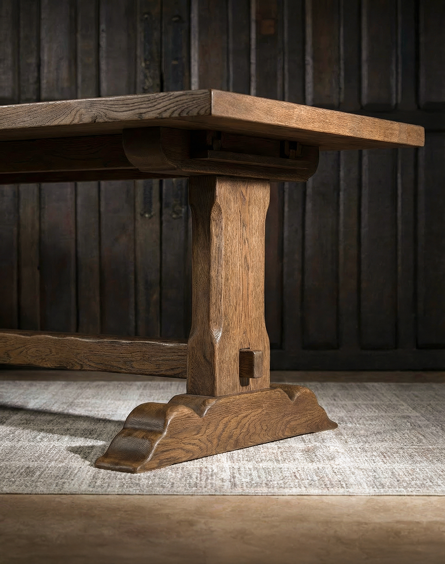 Crafted from oak solids and oak veneers and finished in a medium wood tone, Worn Saddle is deep and burnished—a nod to the supple leather of well-loved armchairs and hand-tooled heirlooms. The result is a table that feels timeless, grounded, and designed to grow richer with every gathering. We create the funriture and you create the memories!